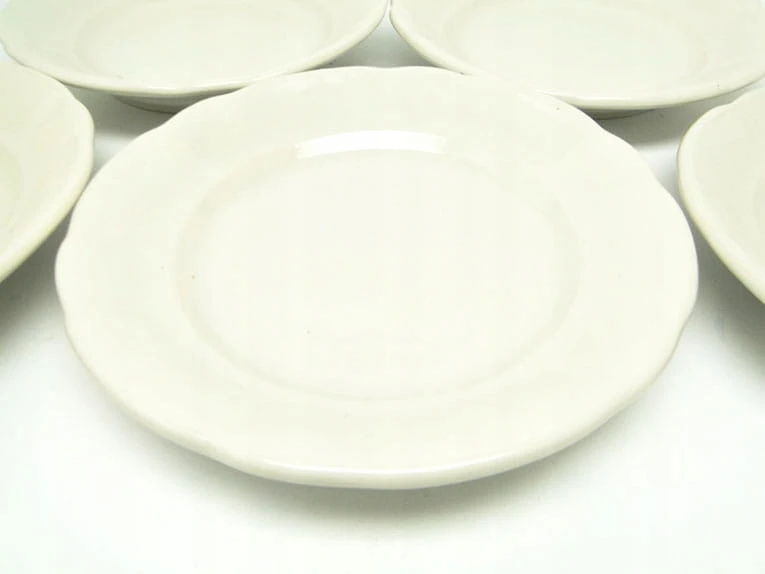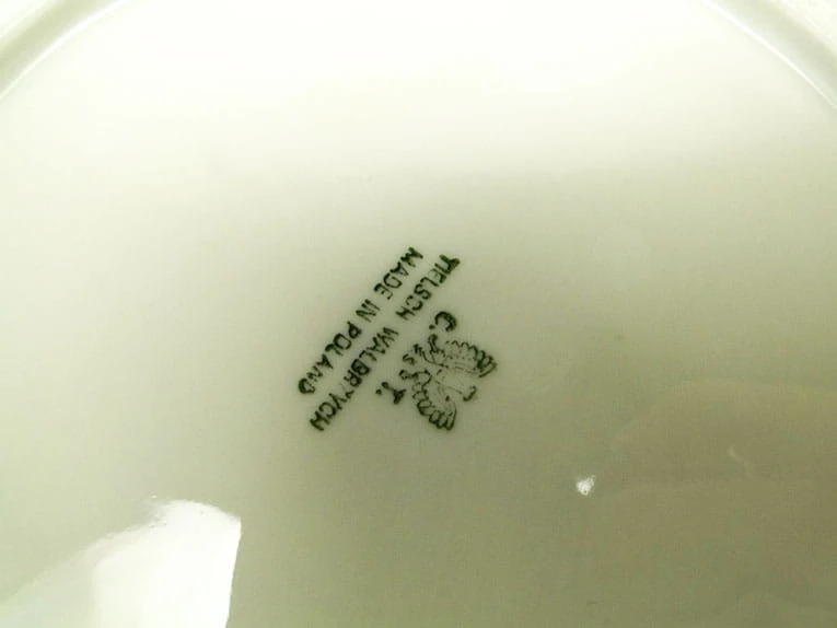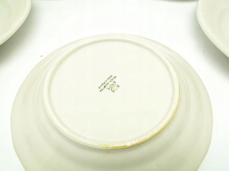 Zestaw pieciu talerzy został wykonany z porcelany w Polsce w Wałbrzychu. Pochodzi z lat 30. Sygnowany Tielsch - oznaczenie używane było do końca lat trzydziestych. Stan dobry - jeden odprysk na jednym talerzu.