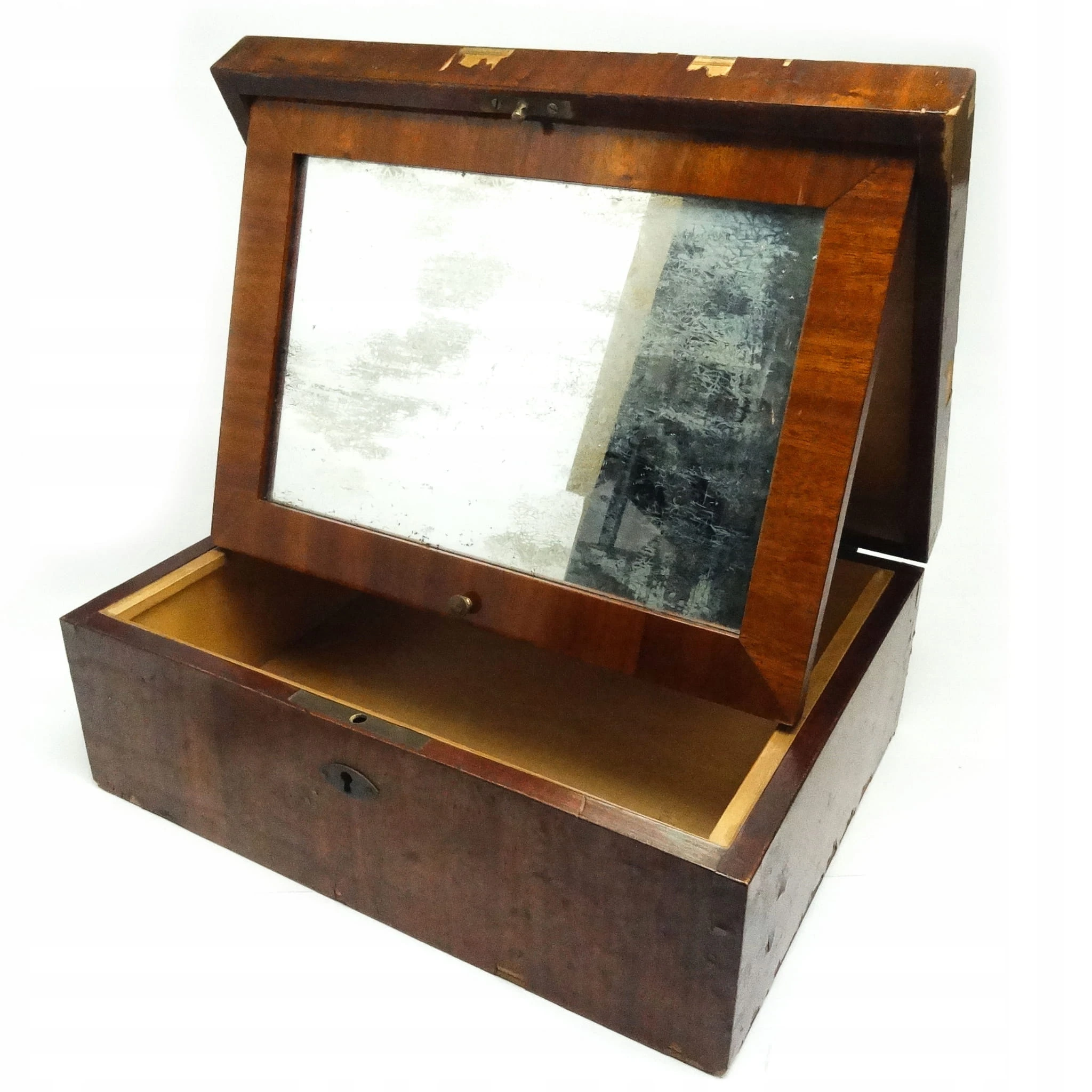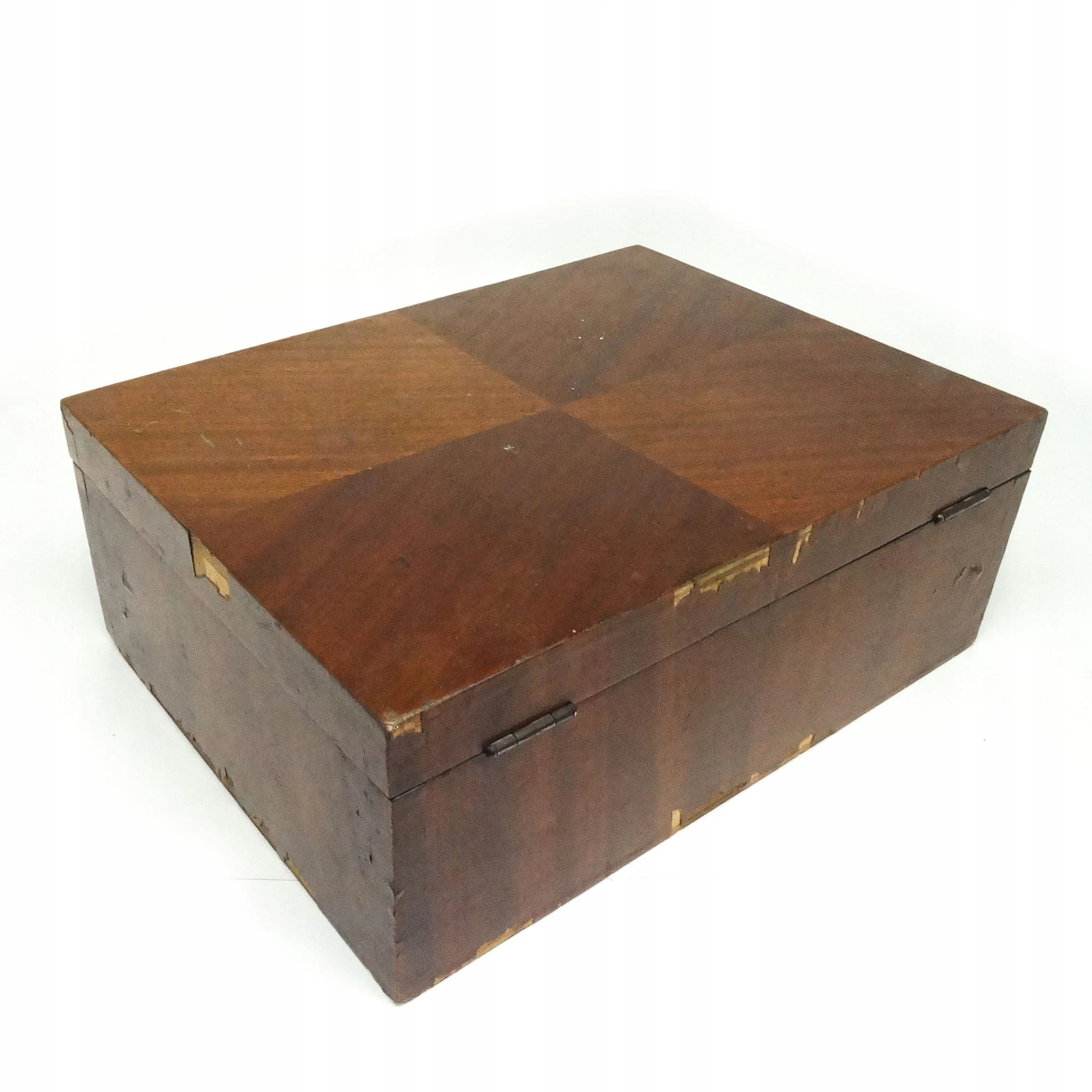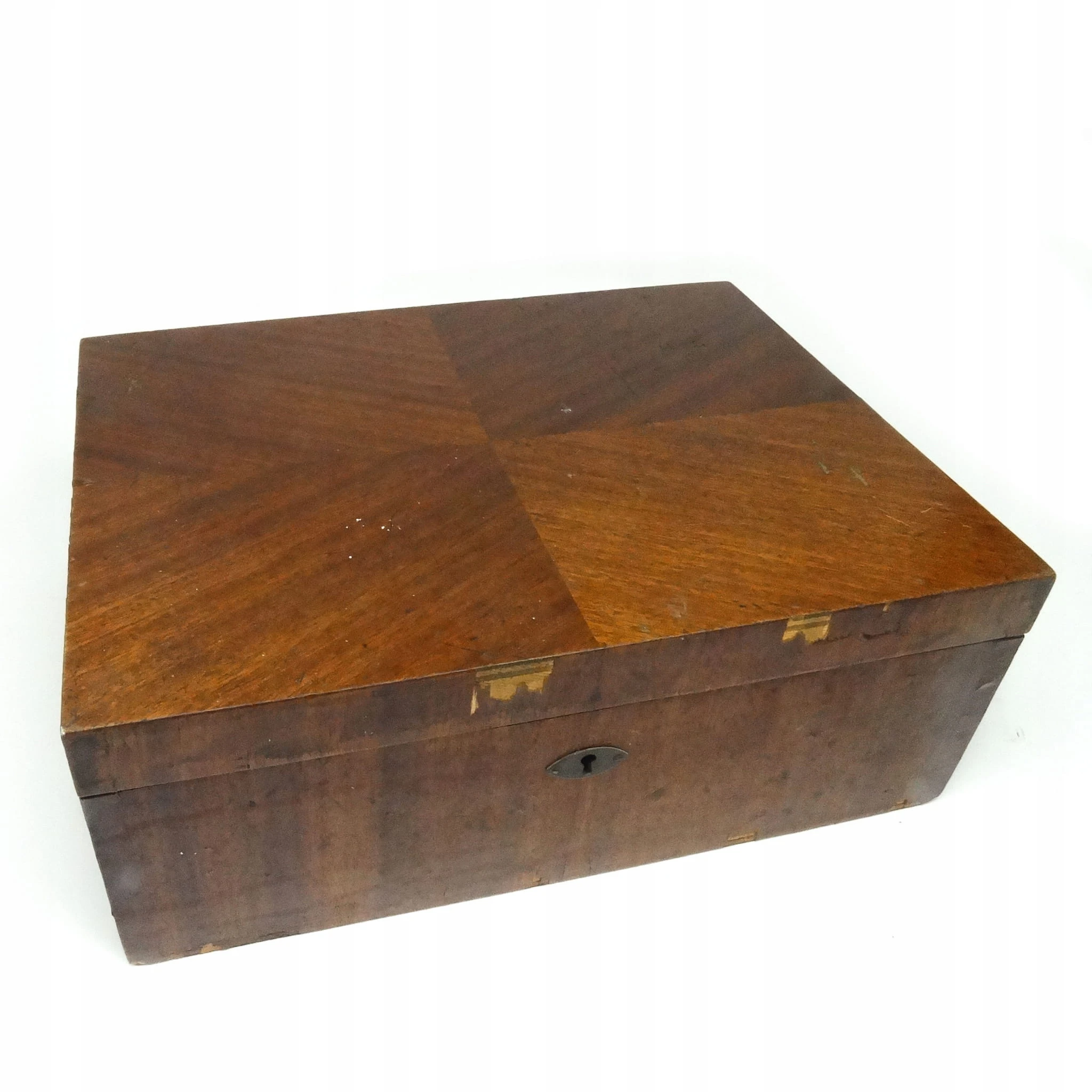 Kaseta na pierścionki i kolczyki wykonana z drewna, odpryski, wewnętrzne zapruszenia na tafli lustra