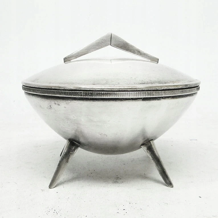 Cukiernica została wyprodukowana w Zakładzie WARMET w Polsce w latach 60. Wykonana z mosiądzu srebrzonego. Zachowana jest w dobrym stanie.