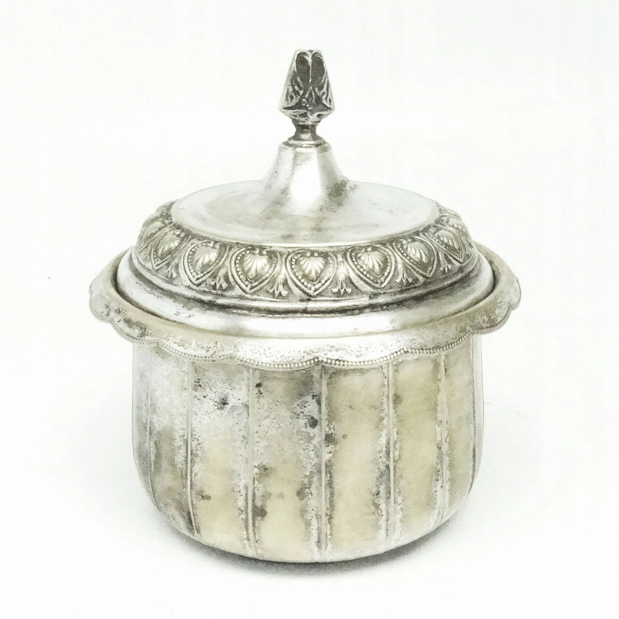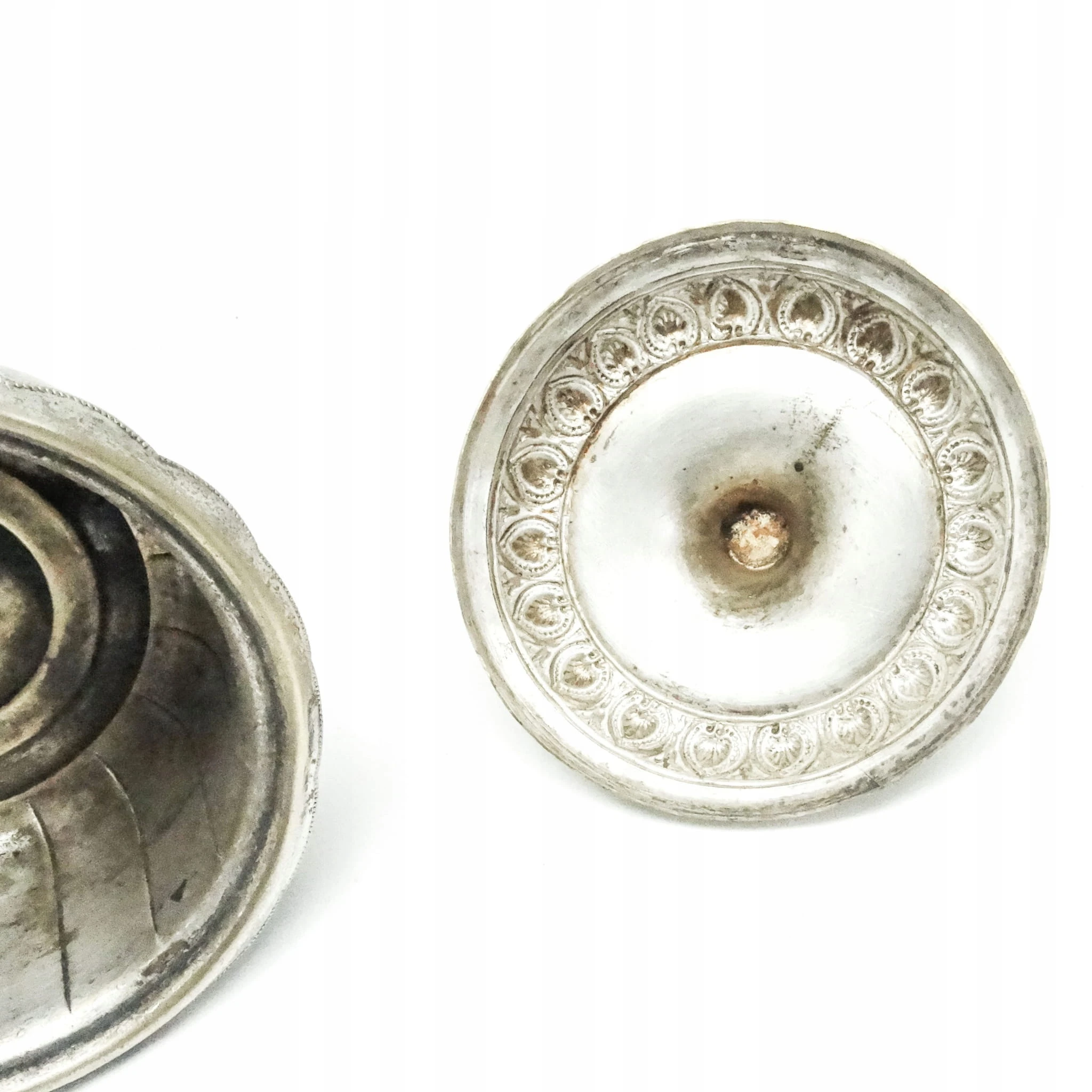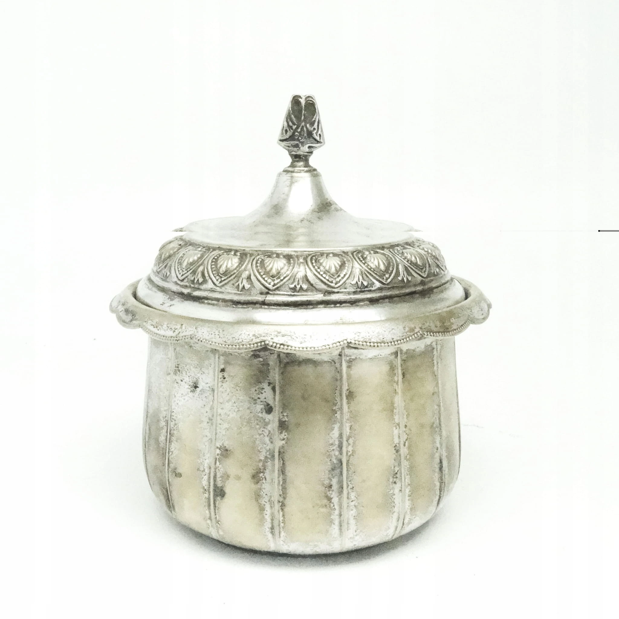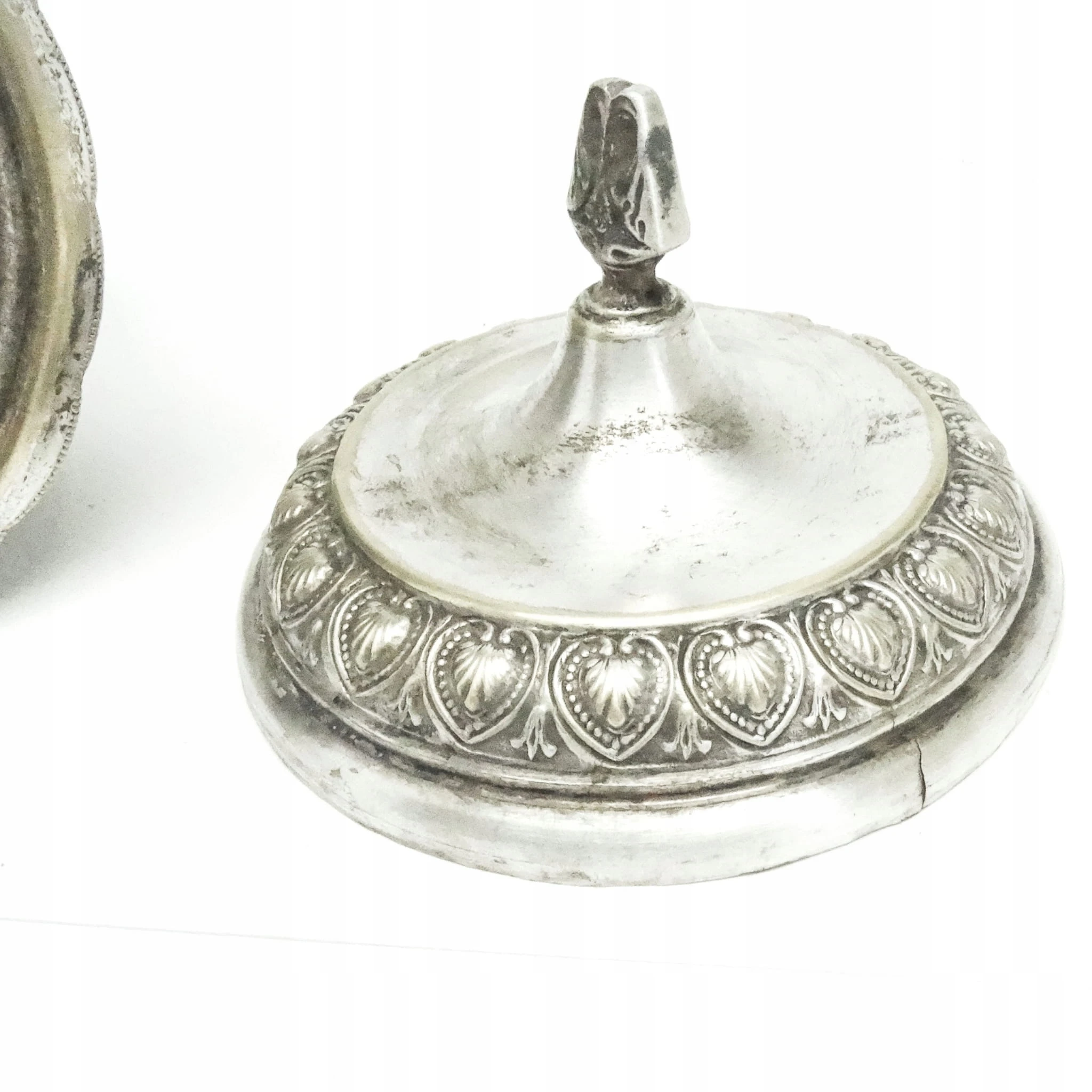 Cukiernica wyprodukowana prawdopodobnie między 1895-1910. Sygnowana - WMF. Nosi wyraźne ślady użytkowania pokazane na zdjęciach .