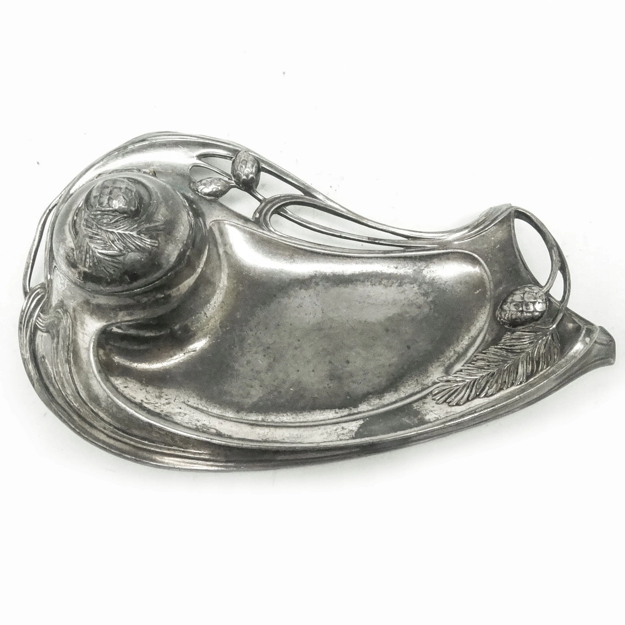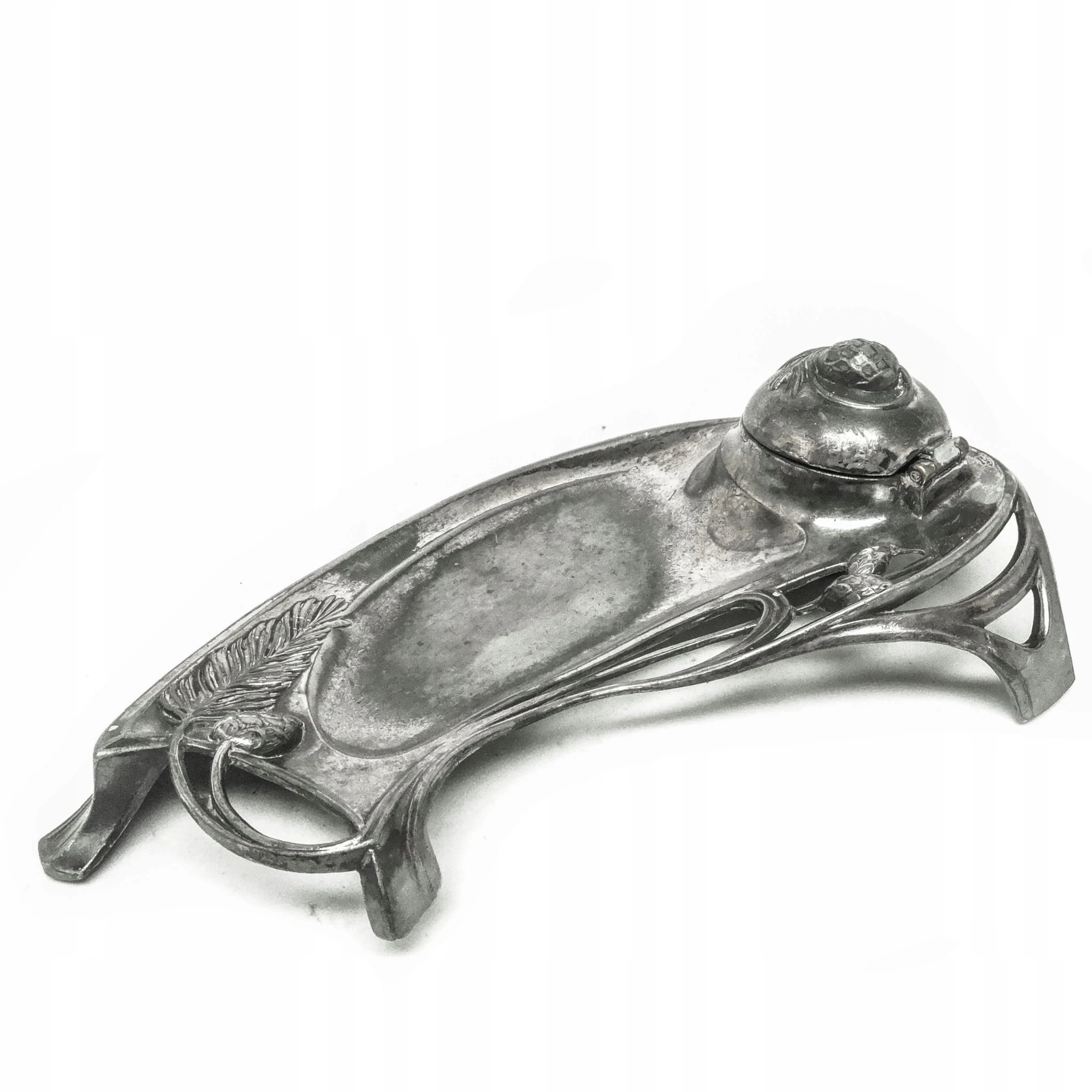 Kałamarz wyprodukowany został w Niemczech w latach 1900-1915. Wykonany jest z w stylu secesyjnym, powierzchnia jest wykonana z cyny. Stan dobry.