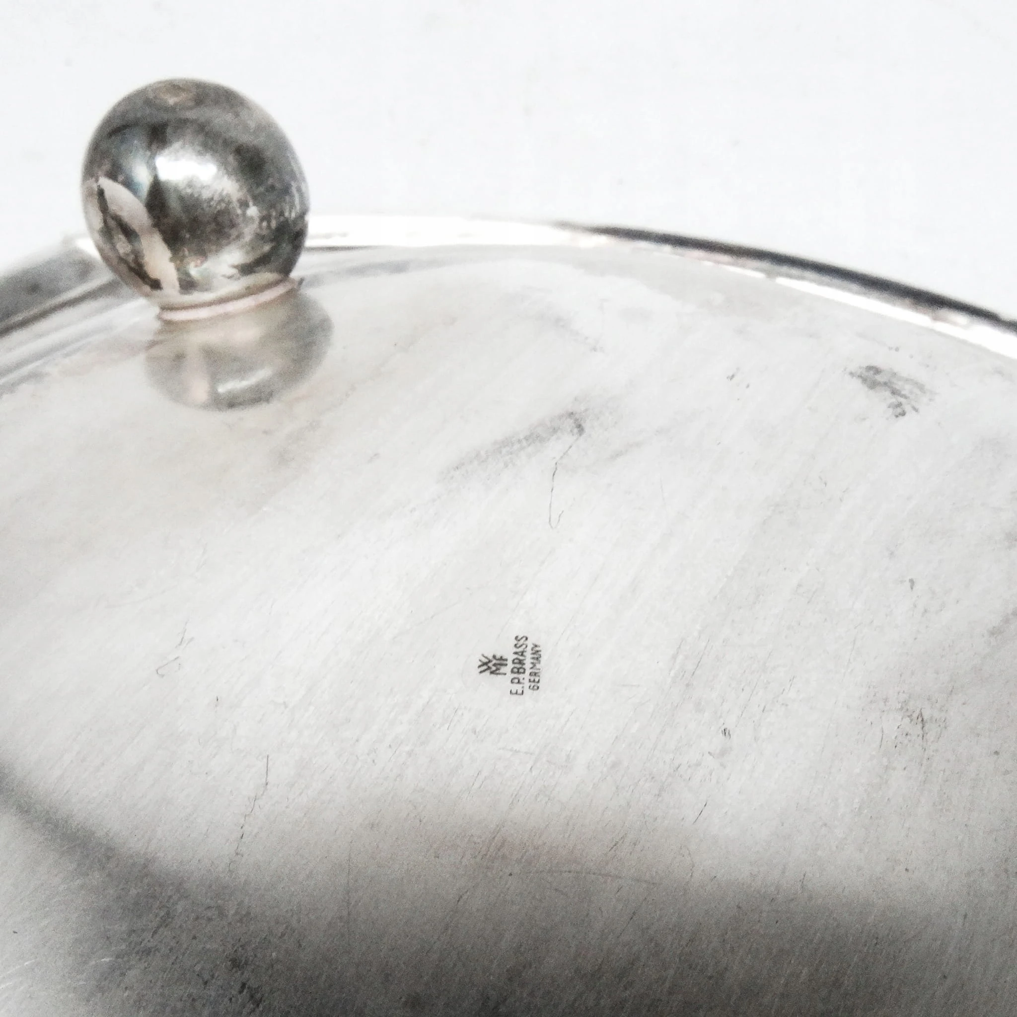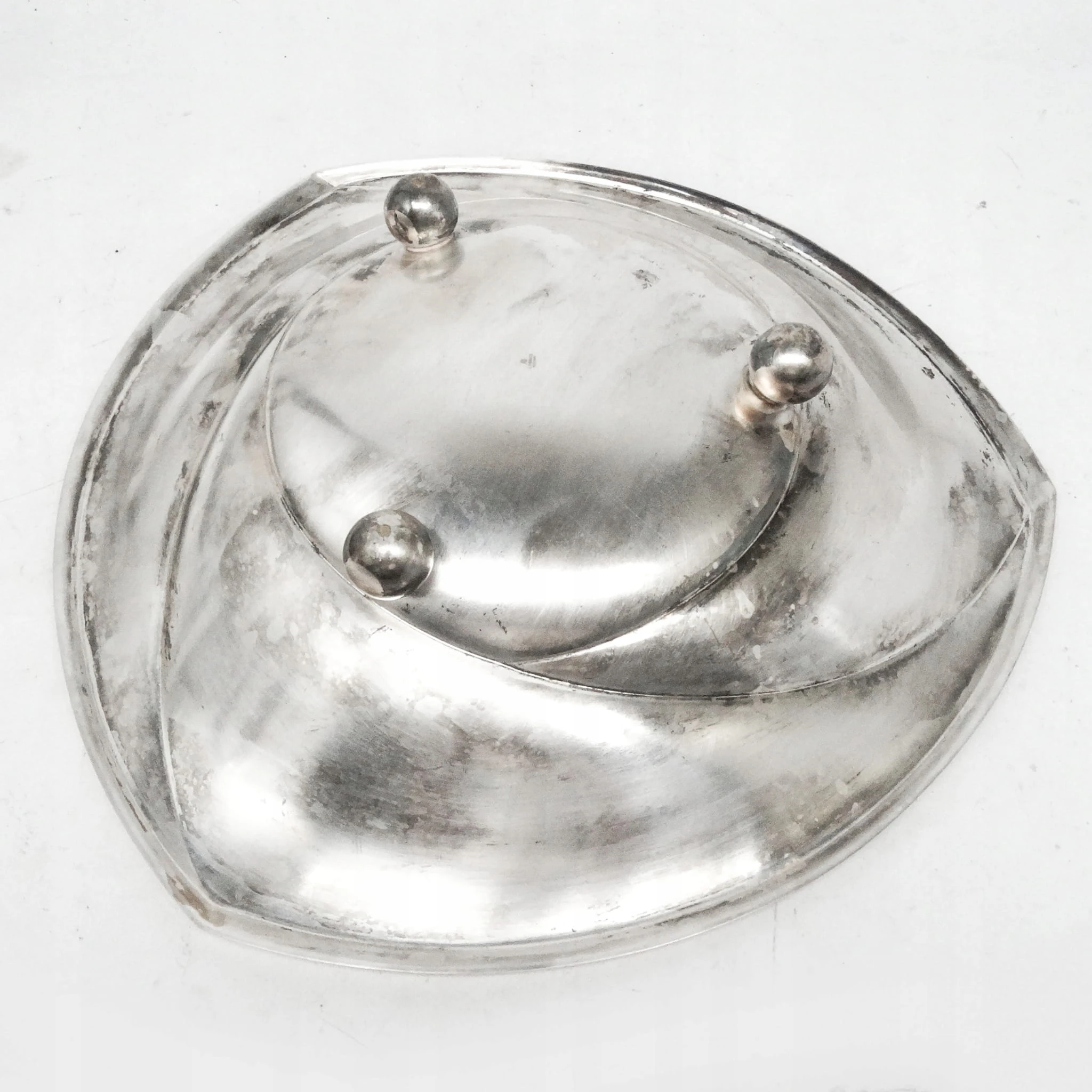 Patera wyprodukowana została w Niemczech przez wytwórnię WMF w latach 30. Wykonana jest z w stylu art deco. Sygnowana. Nosi ślady użytkowania.