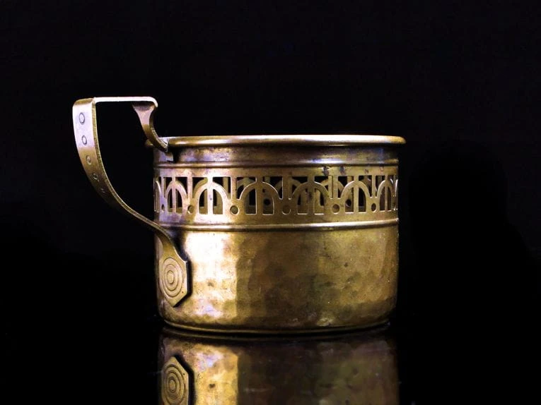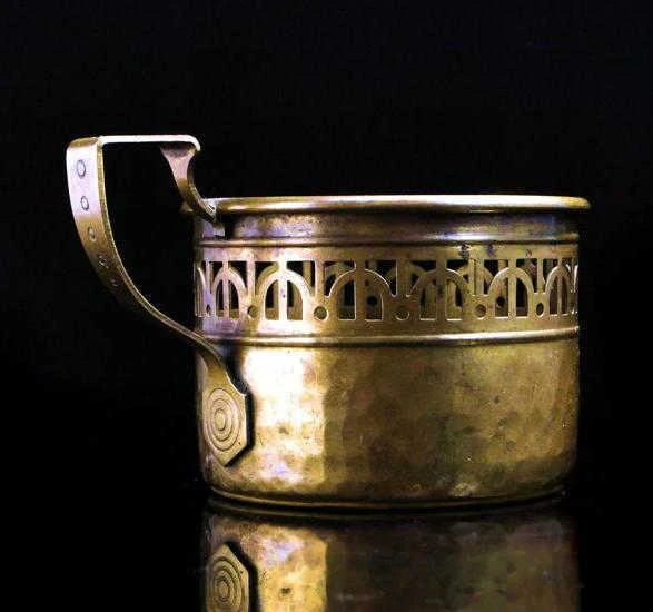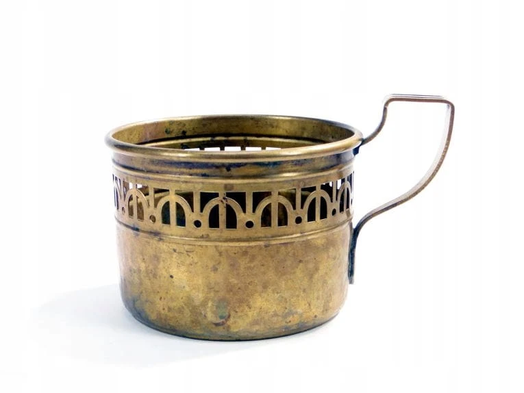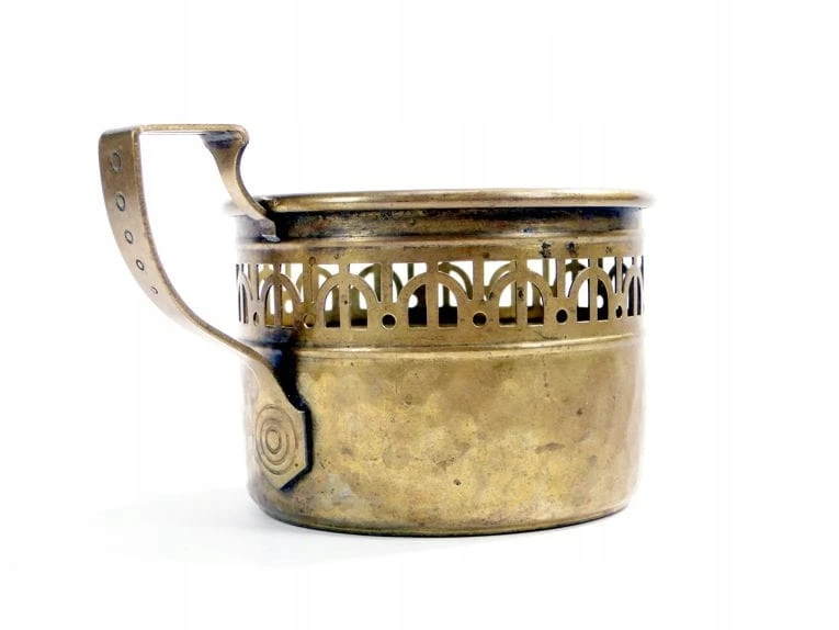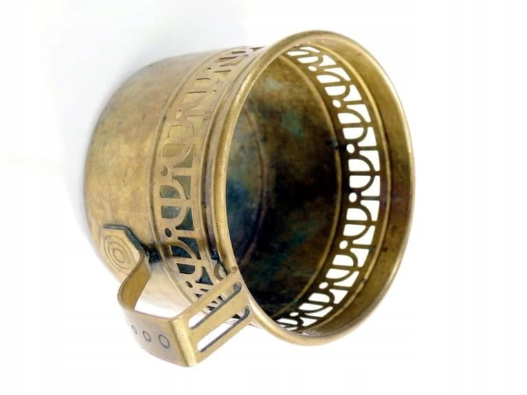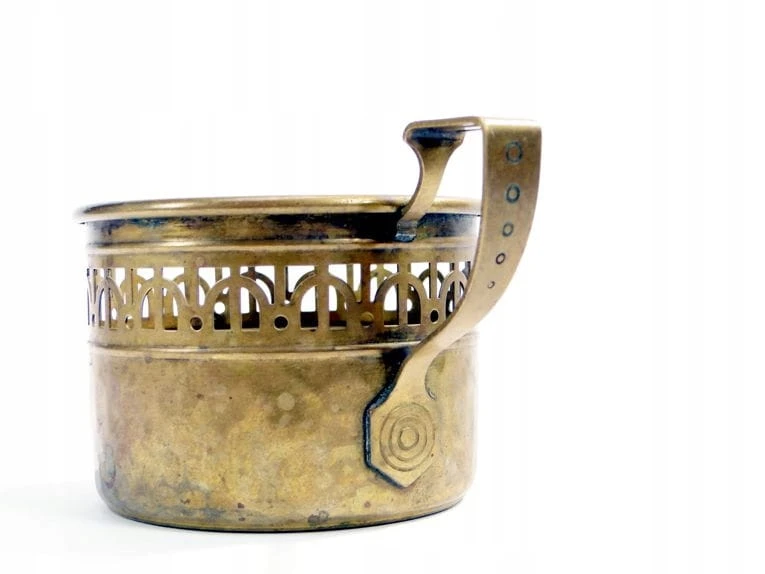 Mosiężny podstakannik niemieckiej wytwórni WMF (württembergische Metallwarenfabrik).