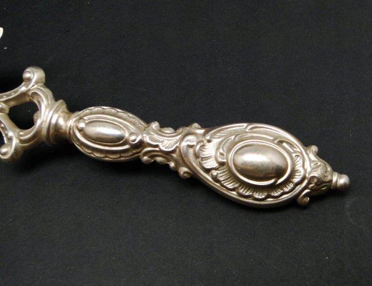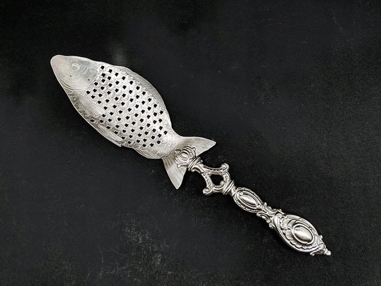 Wielka łyżka do serwowania ryb. Monumentalny i bardzo zdobny przedmiot.