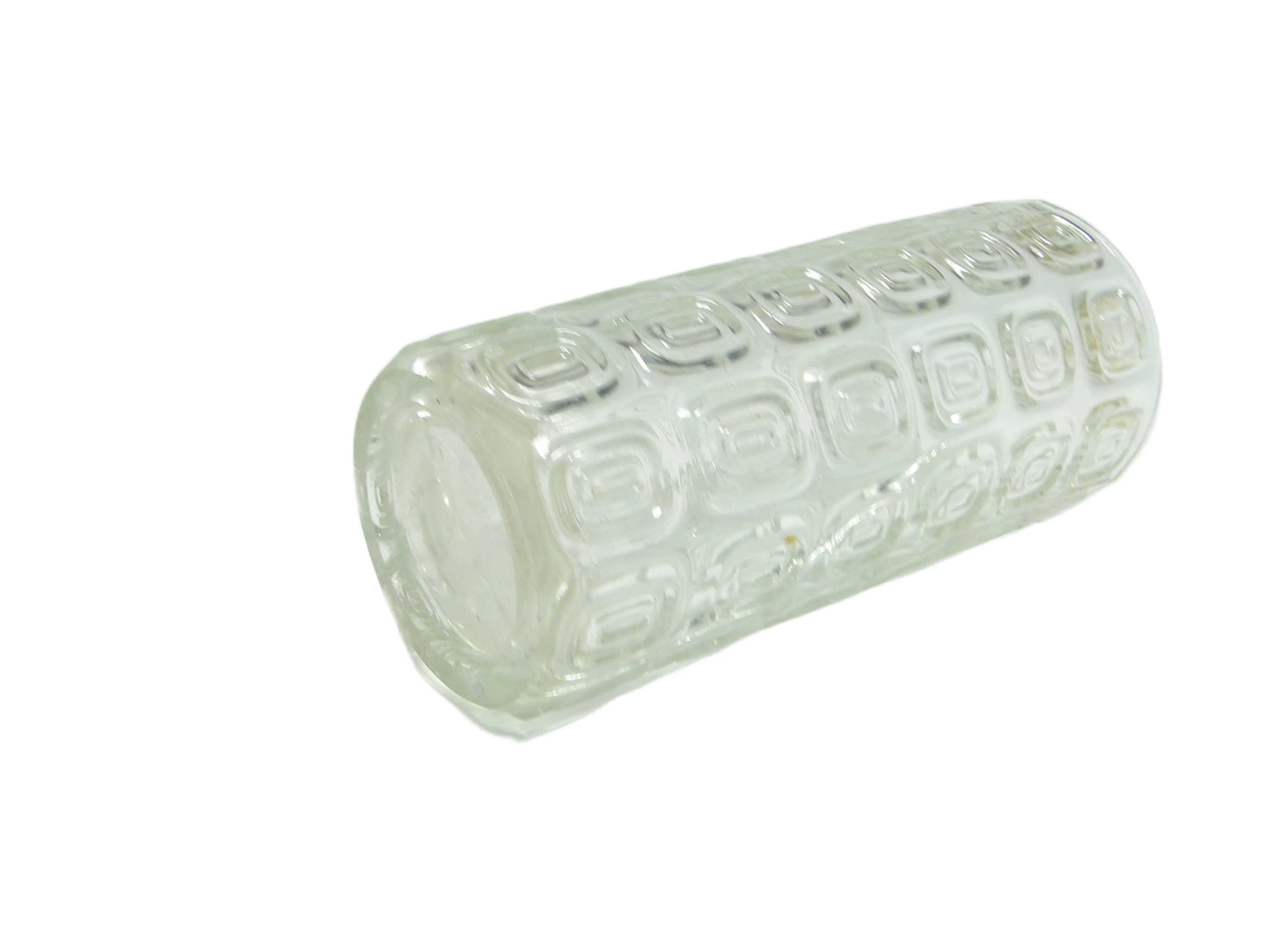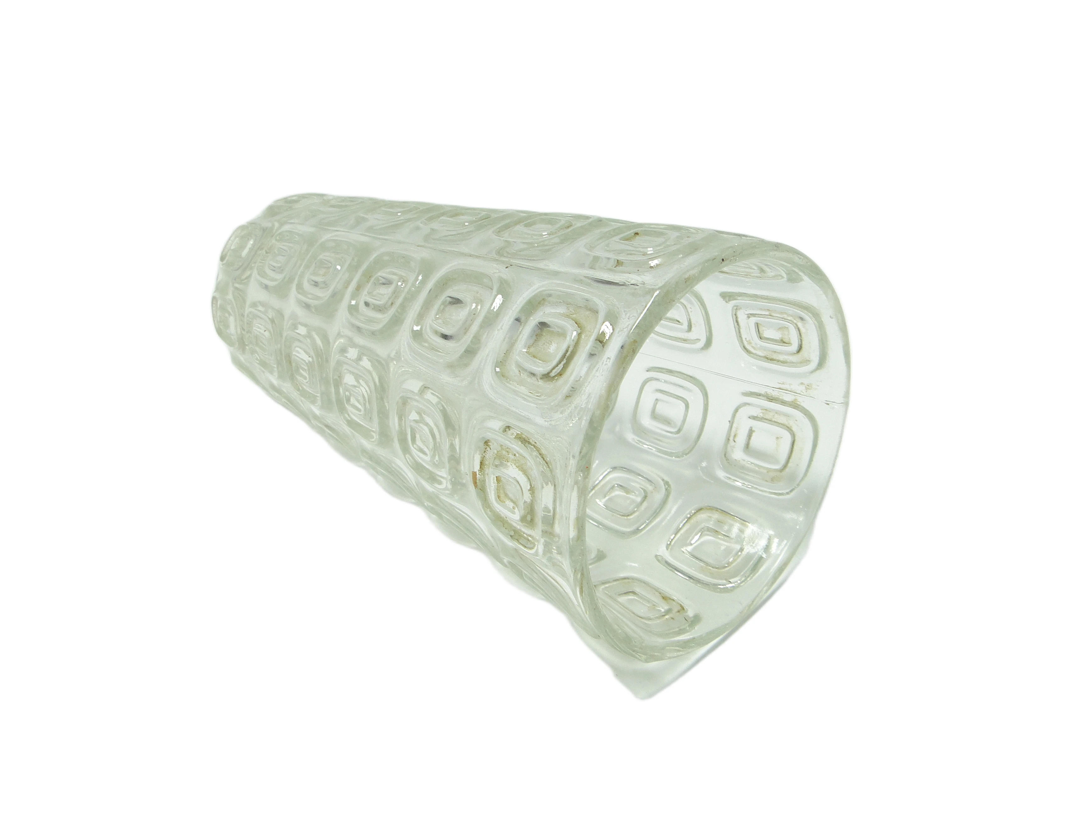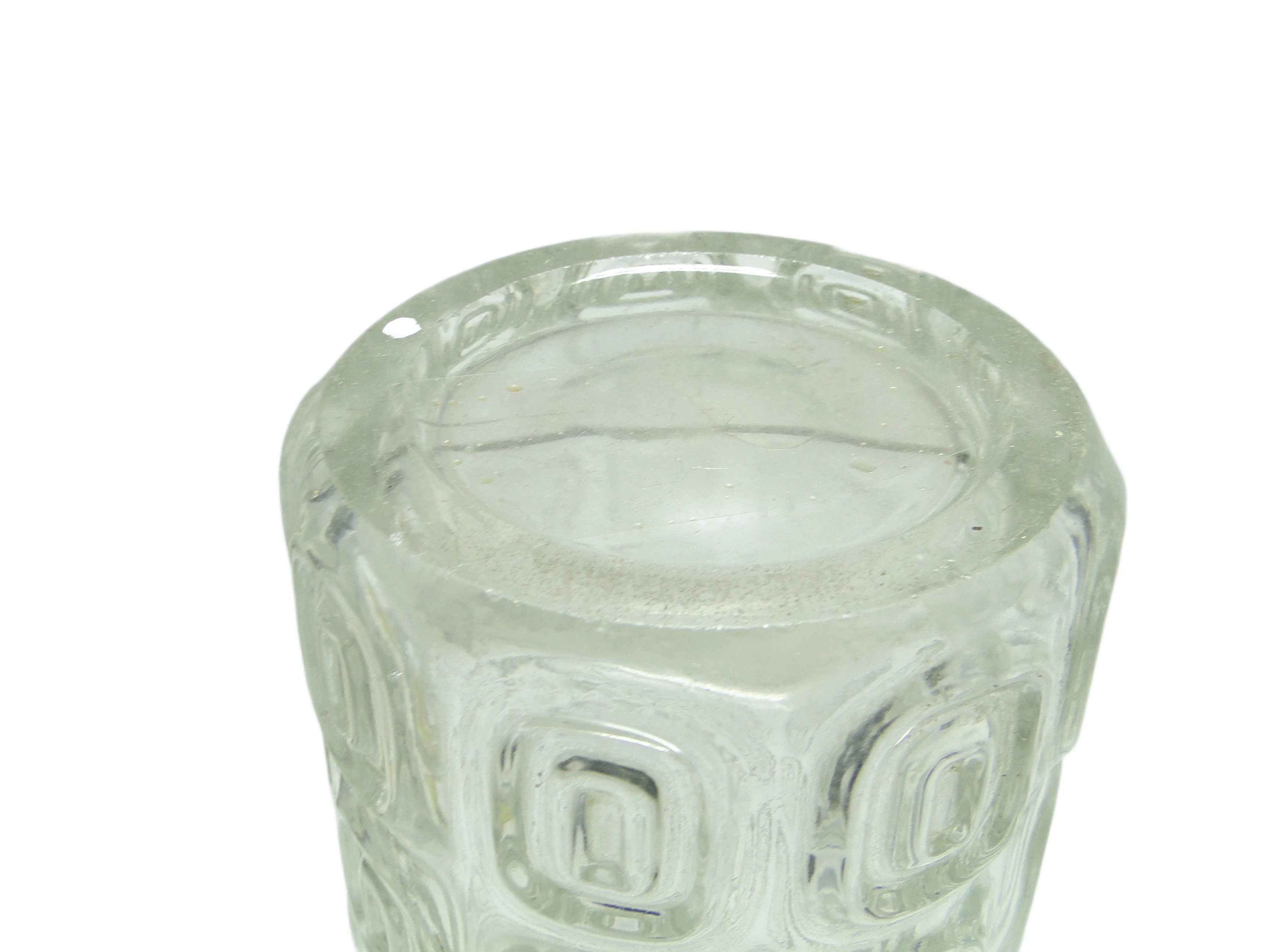 szkło sodowe, prasowane, barwione w masie, wys.: 12,6 cm, śr.: 23 cm