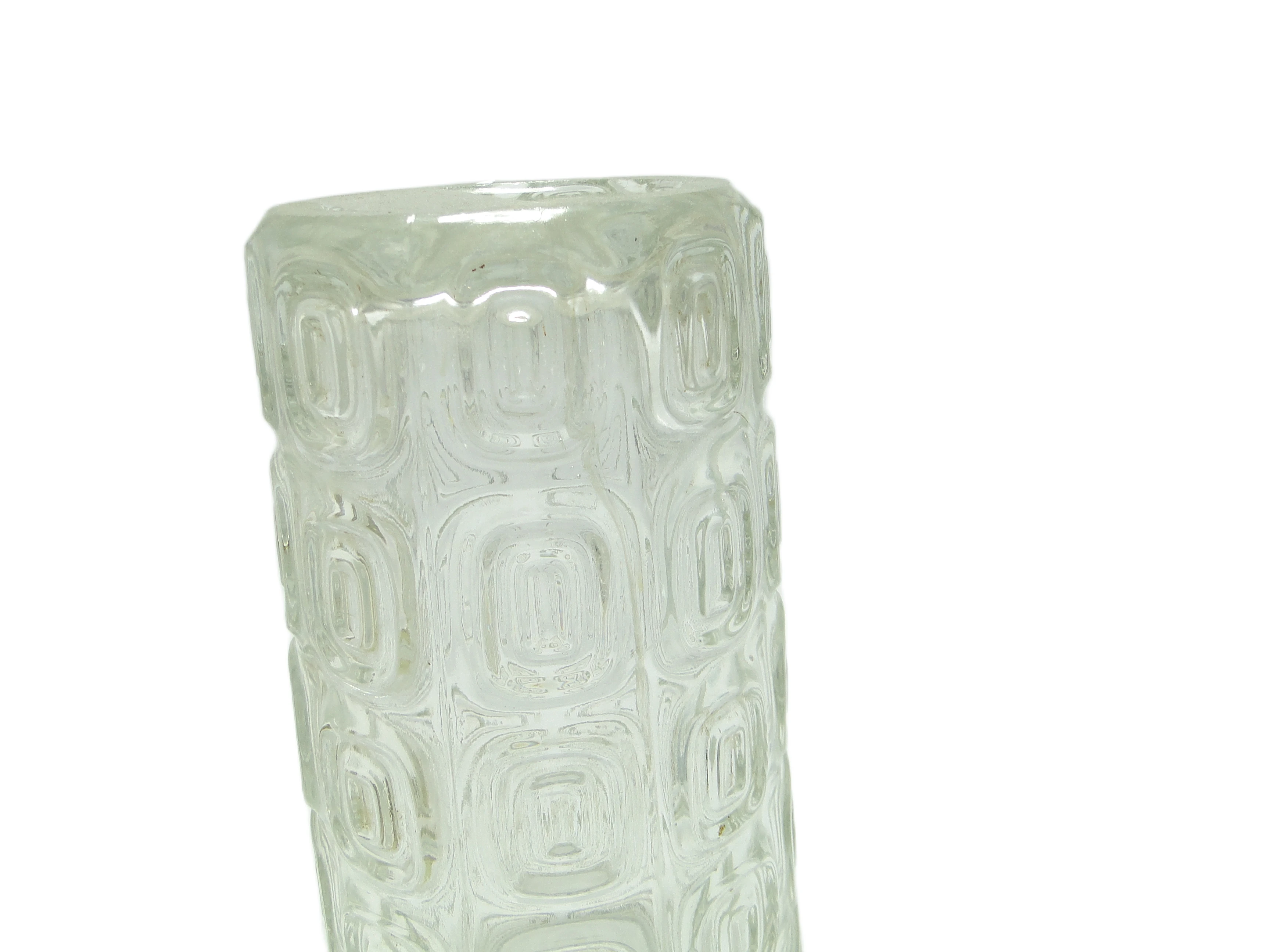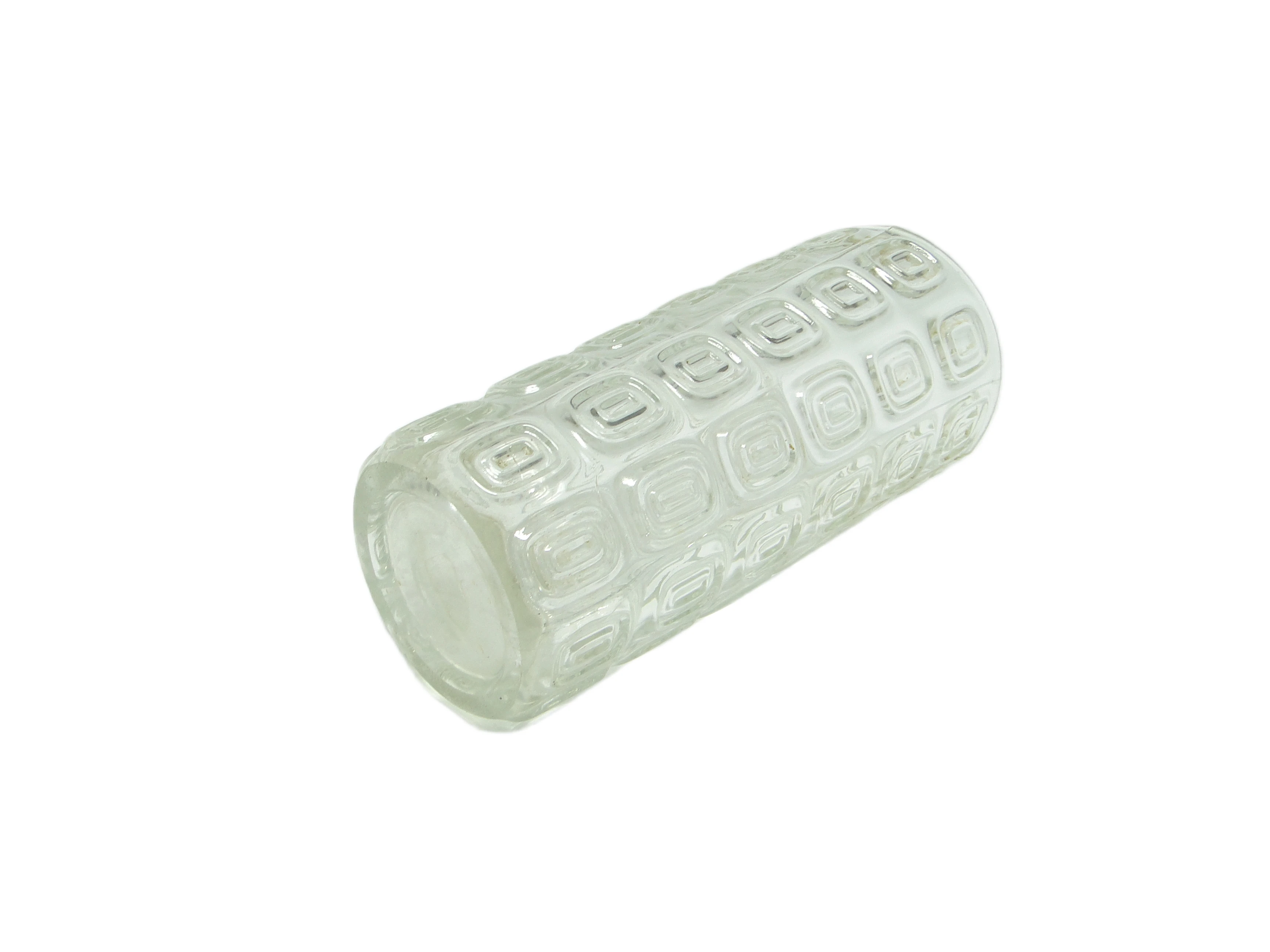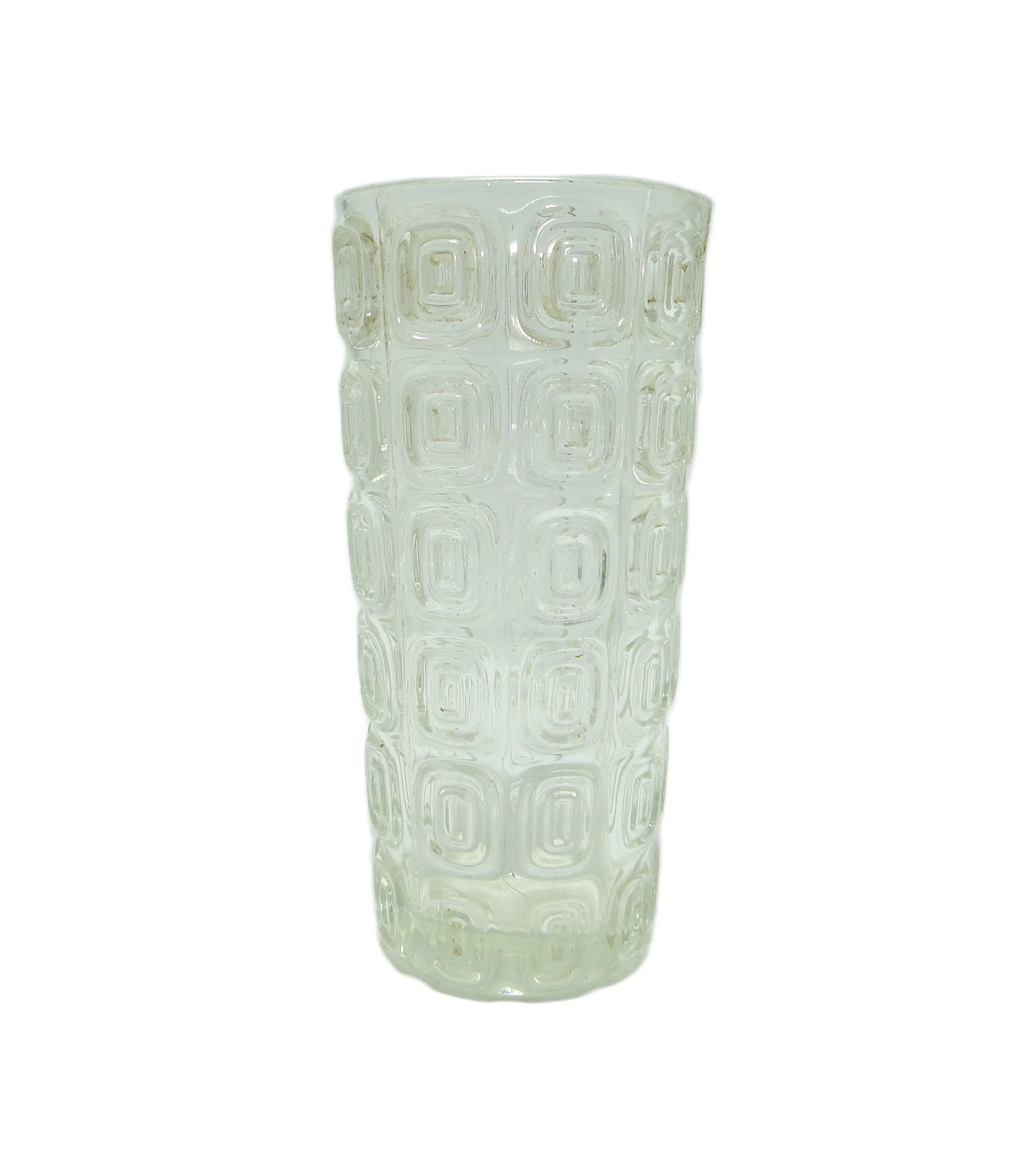 szkło sodowe, prasowane, barwione w masie, wys.: 12,6 cm, śr.: 23 cm