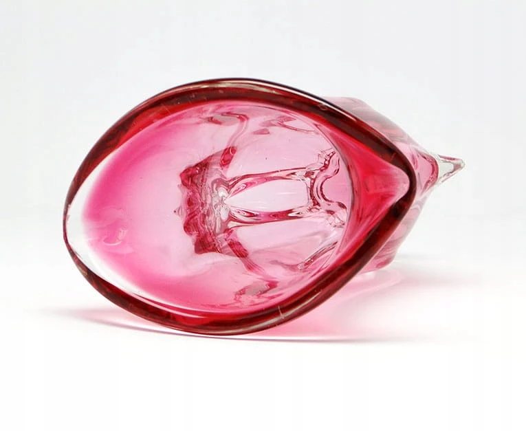 Czerwony wazon ze szkła wykonany w designerskim stylu.