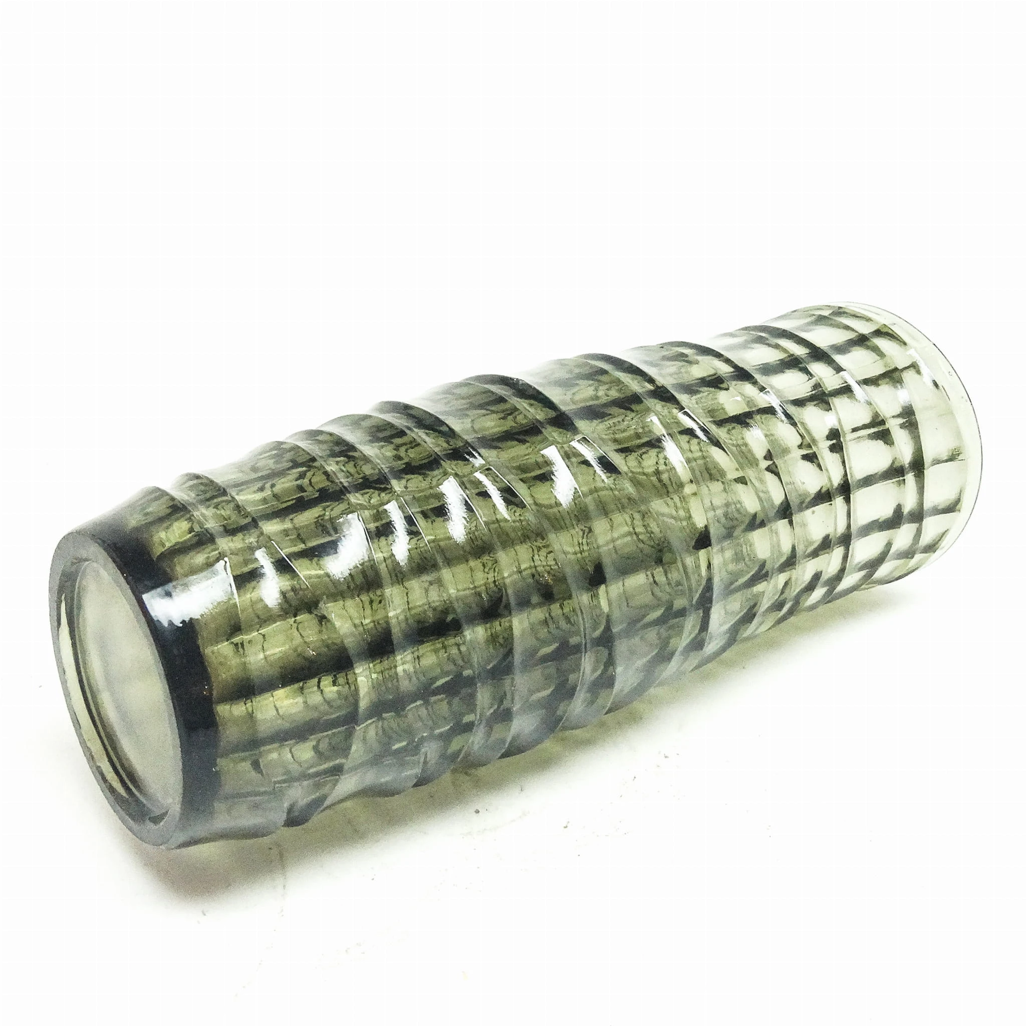 szkło sodowe, prasowane, barwione w masie, wys.: 22 cm, śr.: 10,5 cm