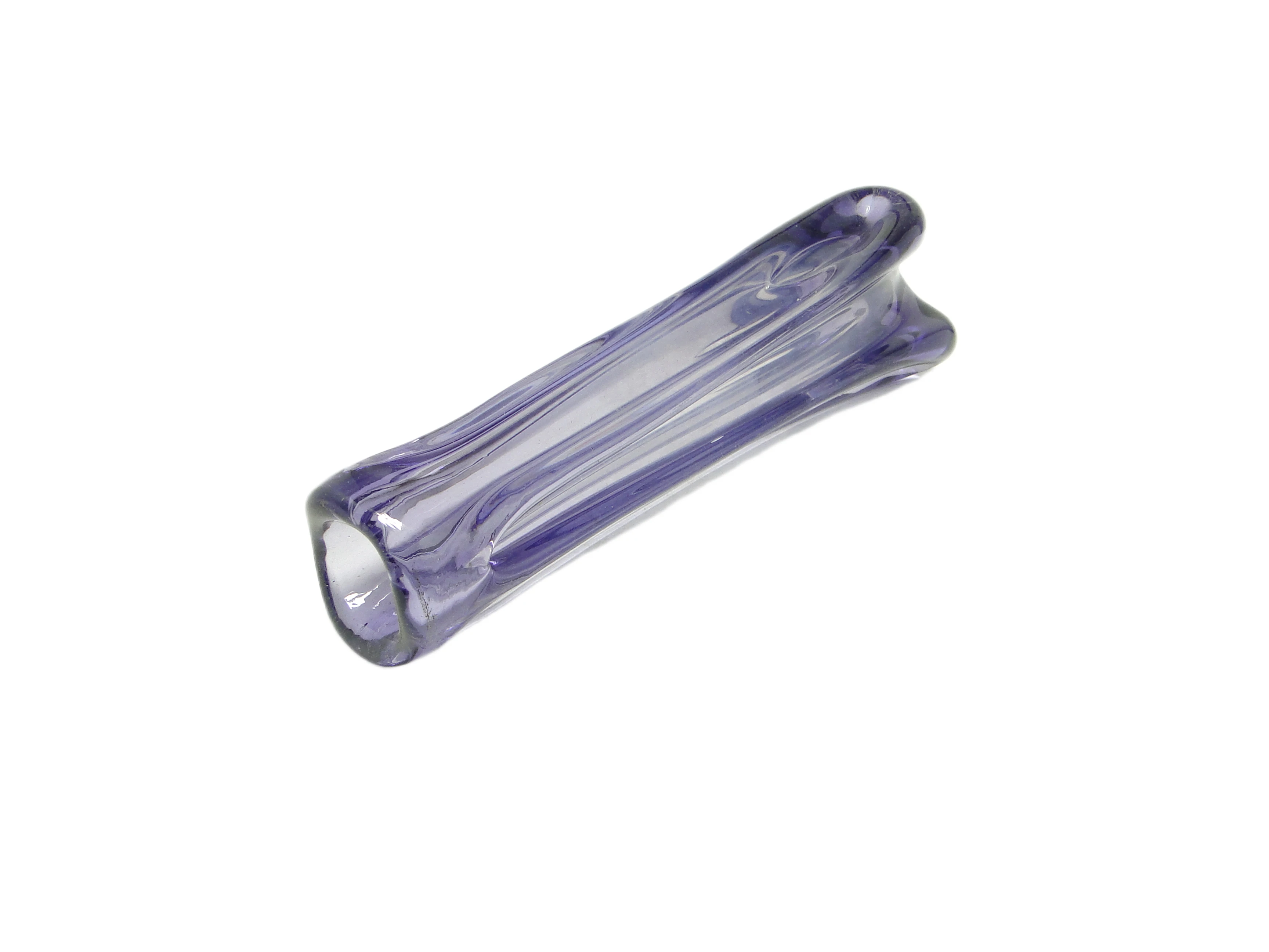 Wazon „Glut”, zaprojektowany przez Jana Sylwestra Drosta w HSG Ząbkowice w latach 70., stanowi przykład polskiego szkła użytkowego inspirowanego nurtem mid-century modern. Wysoka, smukła bryła z miękko falującym konturem odwołuje się do organicznych motywów – przypomina strąk fasoli lub zastygłą kroplę szkła. Przezroczysty, chłodny fiolet o lawendowym odcieniu tworzy subtelny gradient, pogłębiający się ku podstawie. Powierzchnia wazonu, błyszcząca i gładka, odbija światło, a wydłużone, pionowe żłobienia prowadzą wzrok górą bryły, akcentując jej rzeźbiarski charakter. Wykonany ręcznie techniką dmuchania szkła, każdy egzemplarz zdradza delikatną asymetrię i unikalny układ żłobień. Podstawa jest lekko rozszerzona i zaokrąglona, zapewniając stabilność. Wazon zachowany jest w bardzo dobrym stanie, bez widocznych śladów uszkodzeń czy renowacji – z oryginalnym połyskiem i detalami.Forma „Gluta” niesie ze sobą ducha polskiego modernizmu lat 70. – to czas, gdy projektanci tacy jak Drost wydobywali ze szkła nowe możliwości wyrazu, szukając harmonii między prostotą a inspiracją naturą. Wazon zdaje się zatrzymywać ruch – jakby szklana masa zastygła w momencie płynięcia, a pionowe żłobienia przywodziły na myśl pulsującą energię roślinnych form. Lawendowy fiolet, zmienny w zależności od światła, odwołuje się do eksperymentów z barwieniem szkła charakterystycznych dla Ząbkowic. W tej bryle odnajduje się powściągliwość epoki, gdzie dekoracyjność ustępuje miejsca czystości materiału i rzeźbiarskiej linii.Wazon „Glut” można ustawić solo na tle jasnej ściany, gdzie stanie się wyrazistym akcentem – lawendowy fiolet i organiczna forma zyskują wtedy pełnię wyrazu. Z powodzeniem odnajdzie się zarówno w aranżacjach mid-century modern, jak i w minimalistycznych, współczesnych wnętrzach, tworząc subtelny kontrapunkt dla geometrycznych linii. Można zestawić go z drewnianą lub marmurową konsolą, a także z ceramiką o stonowanej palecie kolorystycznej, by podkreślić szlachetność szkła i indywidualny charakter projektu.