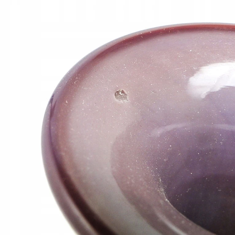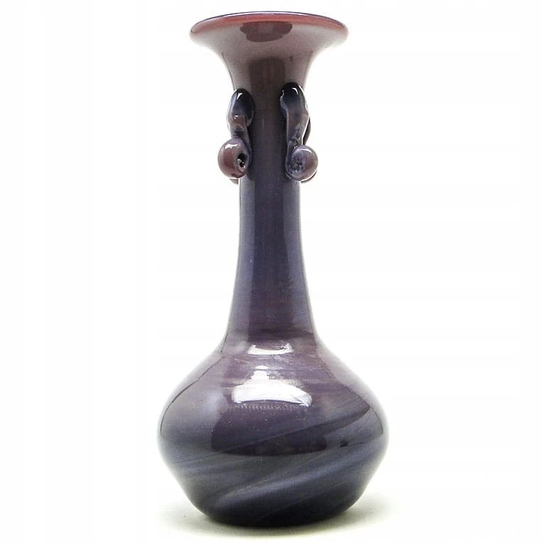 Wazon pochodzi z Krakowskiego Instytutu Szkła, z lat 70. Jest autorstwa Jerzego Słuczana-Orkusza. Nosi ślady w postaci klejenie jednej z ozdób, co zostało pokazane dokładnie w bardzo dużym zbliżeniu na zdjęciu. Jest to niewidoczne, gdy stoi na stole. Przedmiot jest wykonany w jednym z najrzadszych wybarwień.