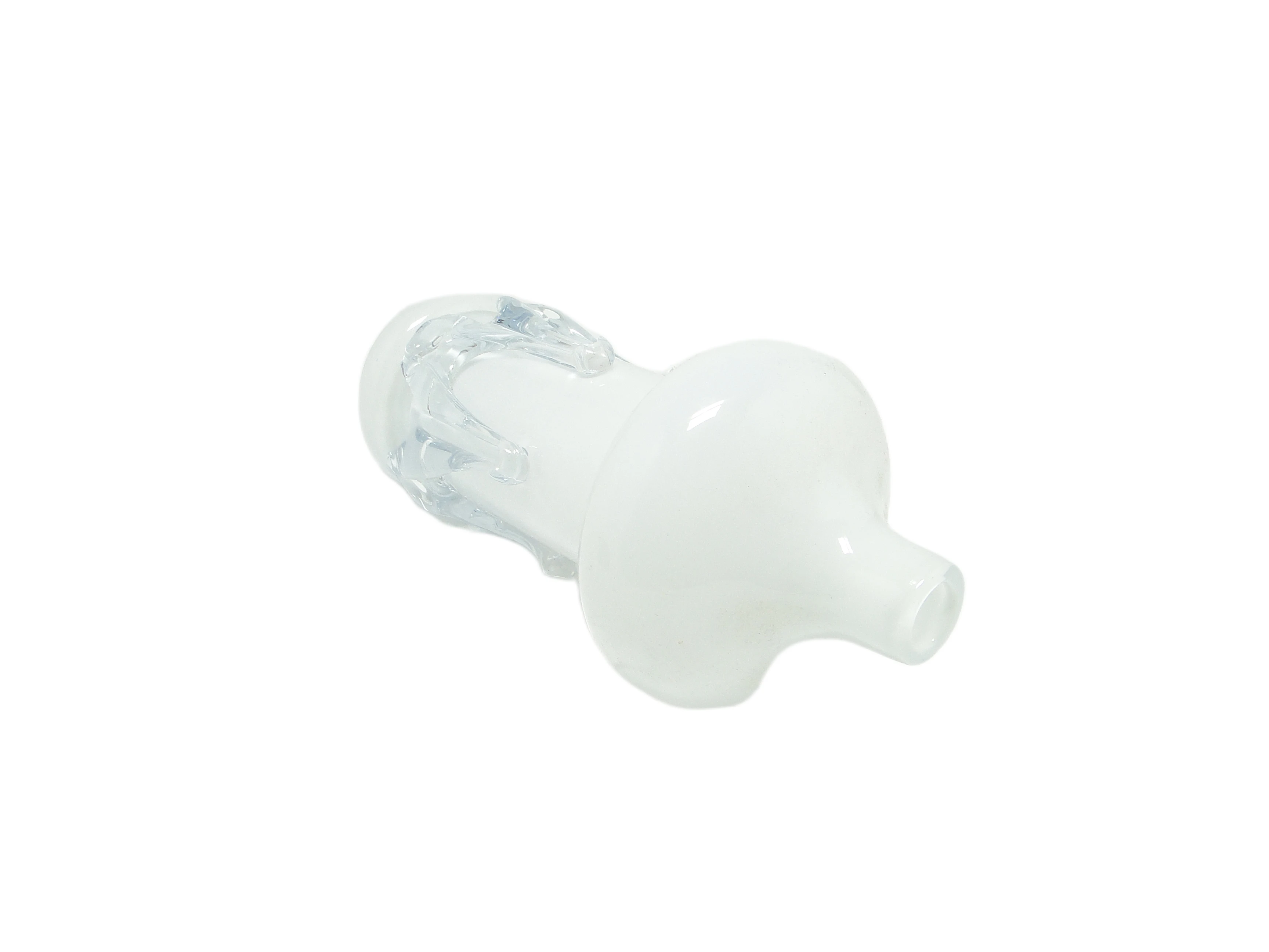 Wazon ze szkła gniecionego z HSG Tarnowiec, powstały w Polsce w latach 70., jest przykładem modernistycznego rzemiosła szklarskiego tego okresu. Górna, pękata część naczynia została wykonana z chłodnego, mlecznobiałego szkła o półprzezroczystym charakterze, płynnie przechodząc w przezroczystą, błyszczącą podstawę. Rzeźbiarska sylwetka wazonu wyróżnia się organicznymi, nieregularnymi wypustkami oraz wyraźnym pionowym akcentem – wąska szyjka rozszerza się w szerokie „ramię”, tworząc dynamiczną formę. Wykończenie jest gładkie, z wysokim połyskiem, a kontrast między matową bielą a transparentną bazą podkreśla minimalistyczną, a zarazem ekspresyjną estetykę. Nie stwierdzono żadnych widocznych śladów użytkowania, uszkodzeń czy ingerencji – przedmiot zachowany w bardzo dobrym, oryginalnym stanie.Forma tego wazonu opowiada o epoce, w której polskie hutnictwo szkła eksplorowało nowe środki wyrazu, eksperymentując z plastycznością materiału i grą światła. Gnieciona, niemal płynna linia szkła daje wrażenie zatrzymanego w ruchu fragmentu lodowej rzeźby – raz surowego, raz łagodnego, zawsze intrygującego. Mlecznobiała, półprzezroczysta góra przenika się z krystaliczną podstawą, jakby odtwarzała moment narodzin formy w ogniu huty, gdzie materia staje się zarówno podatna, jak i nieprzewidywalna. To przedmiot, który niesie w sobie opowieść o odwadze projektantów lat 70., gotowych łączyć prostotę koloru z wyrafinowaną, organiczną bryłą.Wazon można zestawić z innymi przykładami polskiego szkła vintage, tworząc kolekcję przedmiotów o zróżnicowanych fakturach i odcieniach, lub ustawić solo na komodzie z ciemnego drewna, gdzie jego półprzezroczysta forma zyska dodatkową głębię. Dobrze sprawdzi się także w otoczeniu minimalistycznych rzeźb, prostych metalowych dodatków lub na tle surowej betonowej ściany. Warto połączyć go z pojedynczą gałązką lub pozostawić pusty, by podkreślić rzeźbiarską sylwetkę i wyeksponować grę światła na powierzchni.