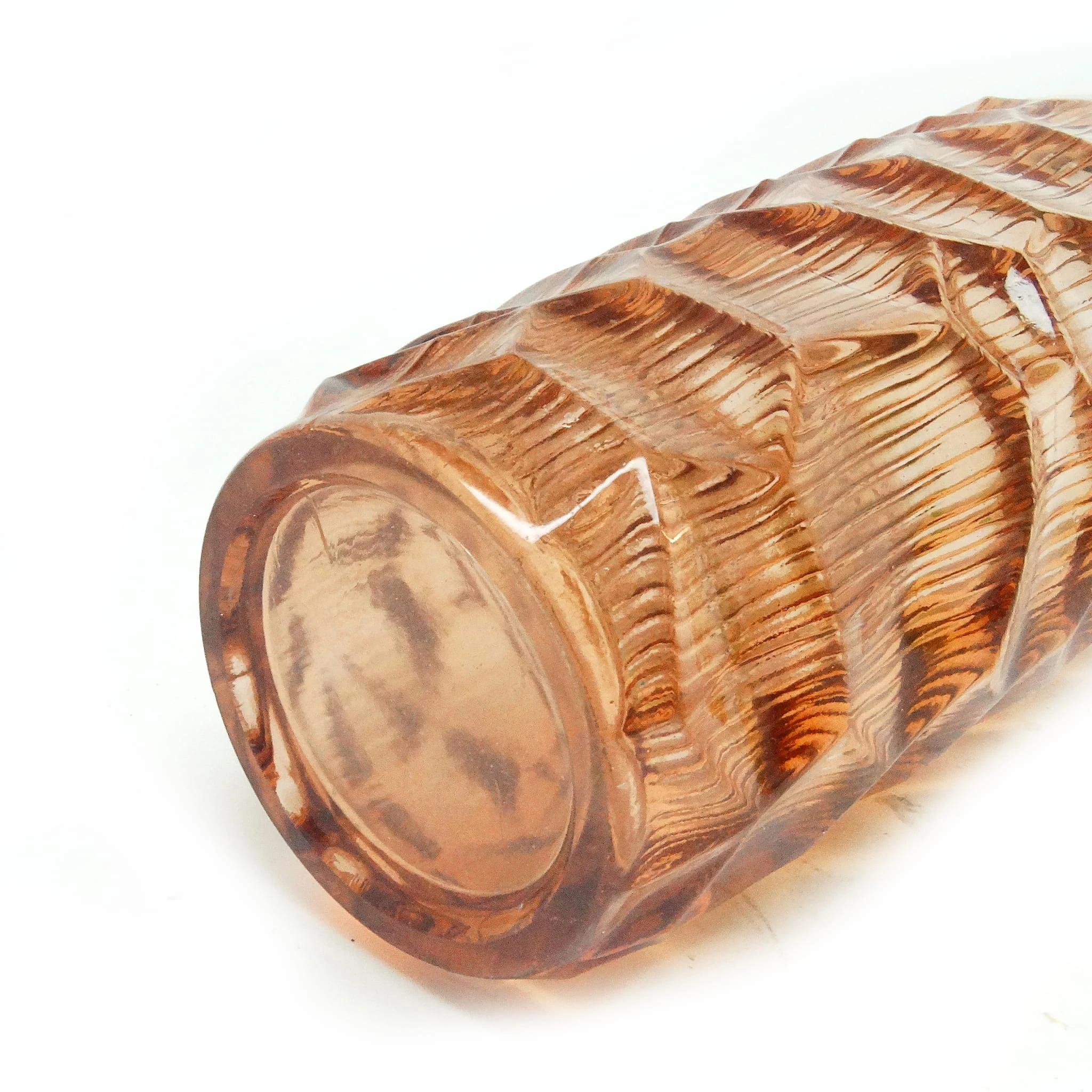 szkło sodowe, prasowane, barwione w masie, wys.: 22 cm, śr.: 10 cm