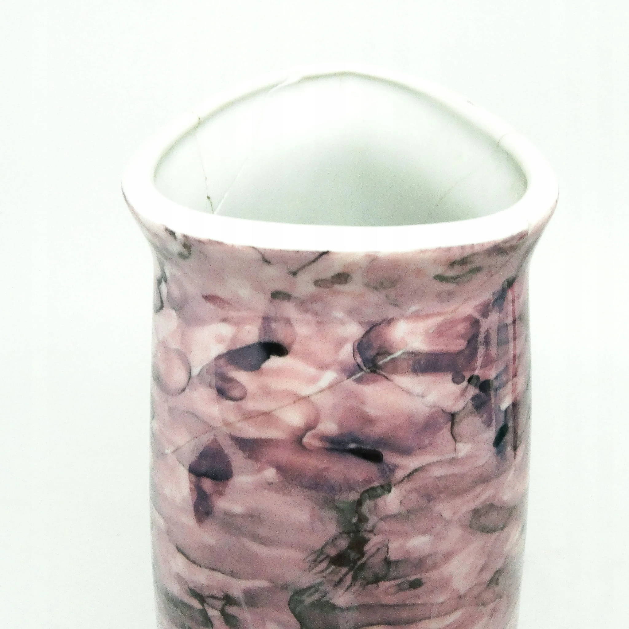 Porcelanowy wazon wyprodukowany przez wytwórnie porcelany Wałbrzych. Został ręcznie wykonany z najwyższej jakości porcelany, a następnie ręcznie zdobiony farbami ceramicznymi przez malarki. Stan DESTRUKT, klejone pęknięcie. Sygnowany. Bardzo ceniony przez kolekcjonerów.