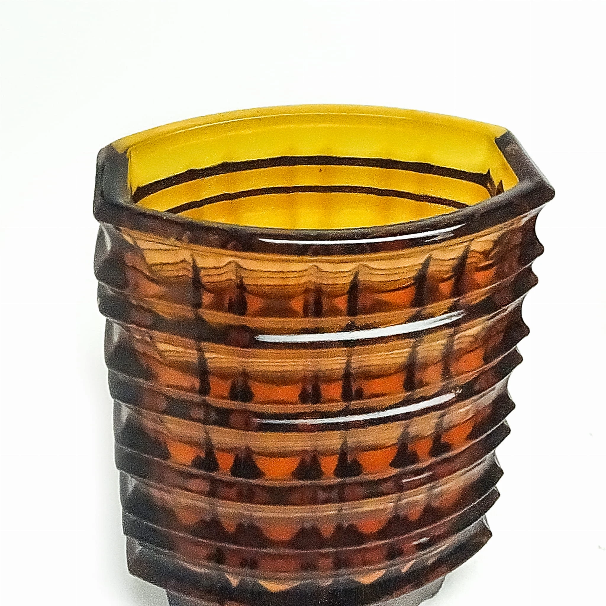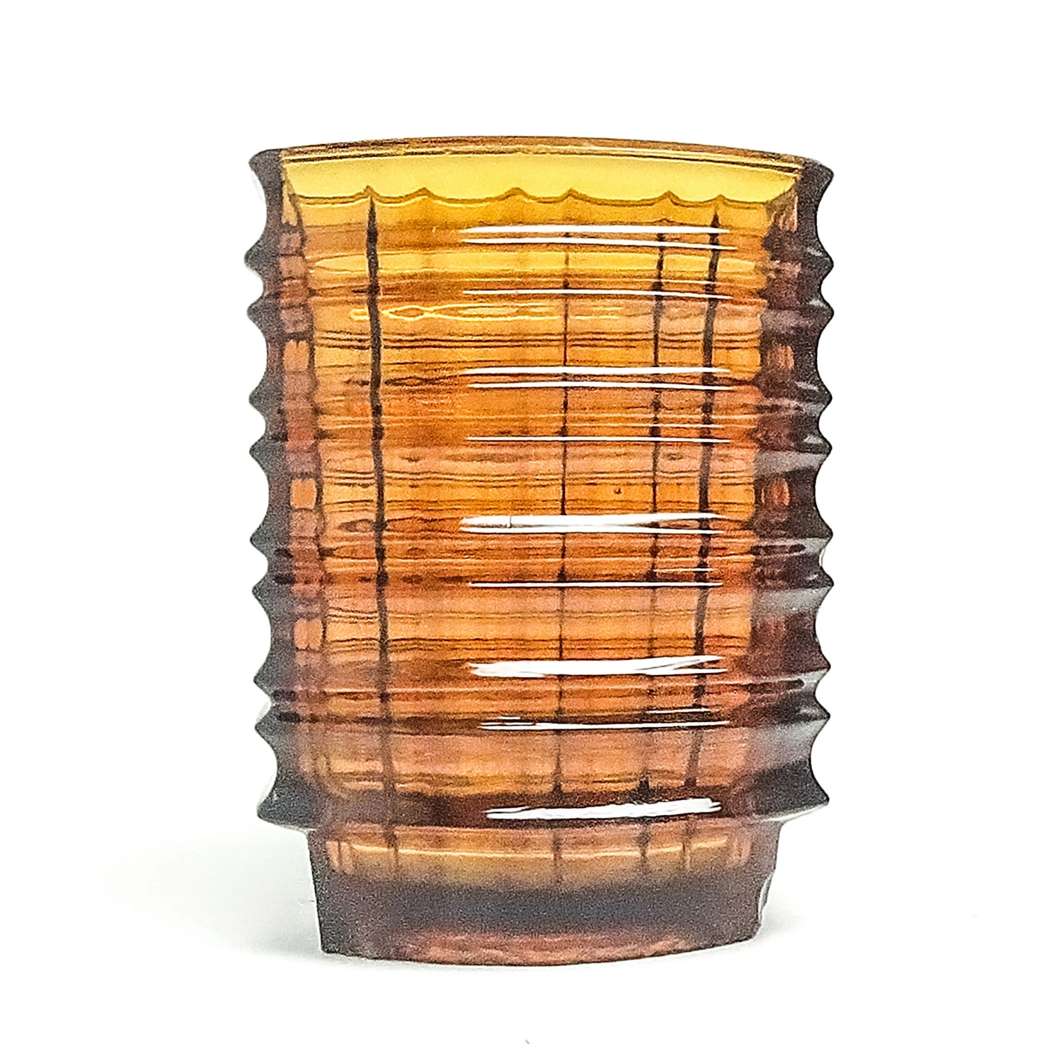 Wazon wykonany ze szkła sodowego, prasowanego, w kolorze miodowym