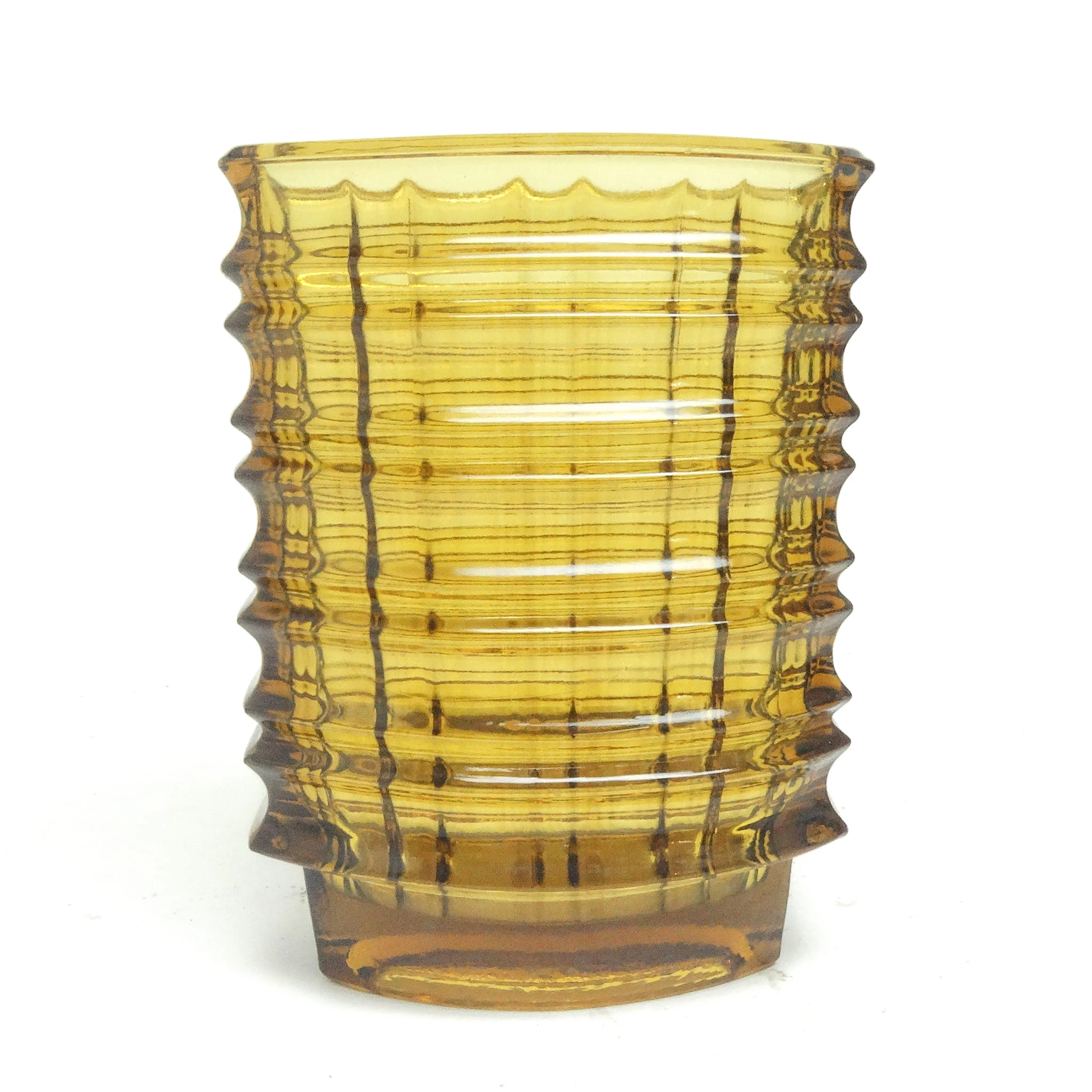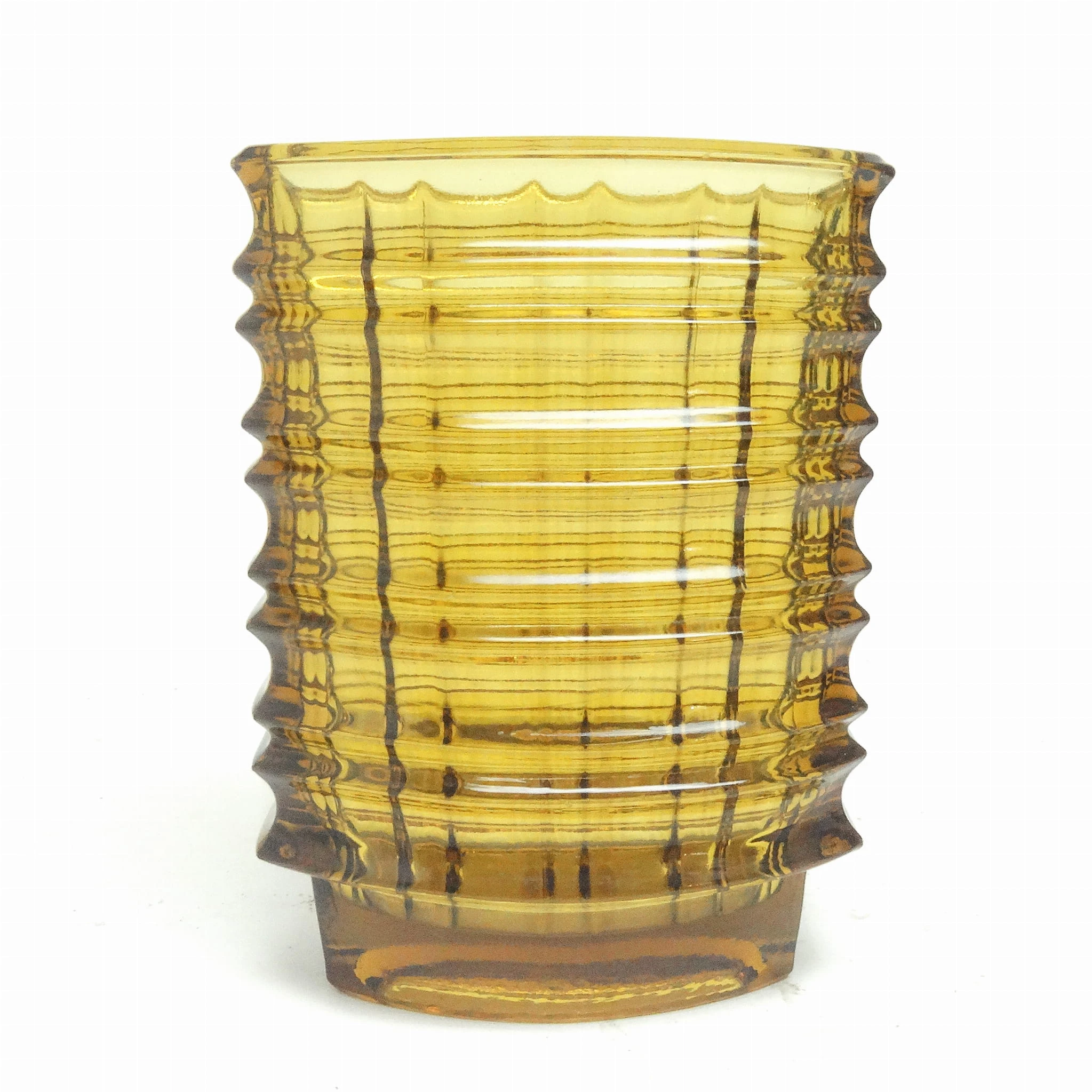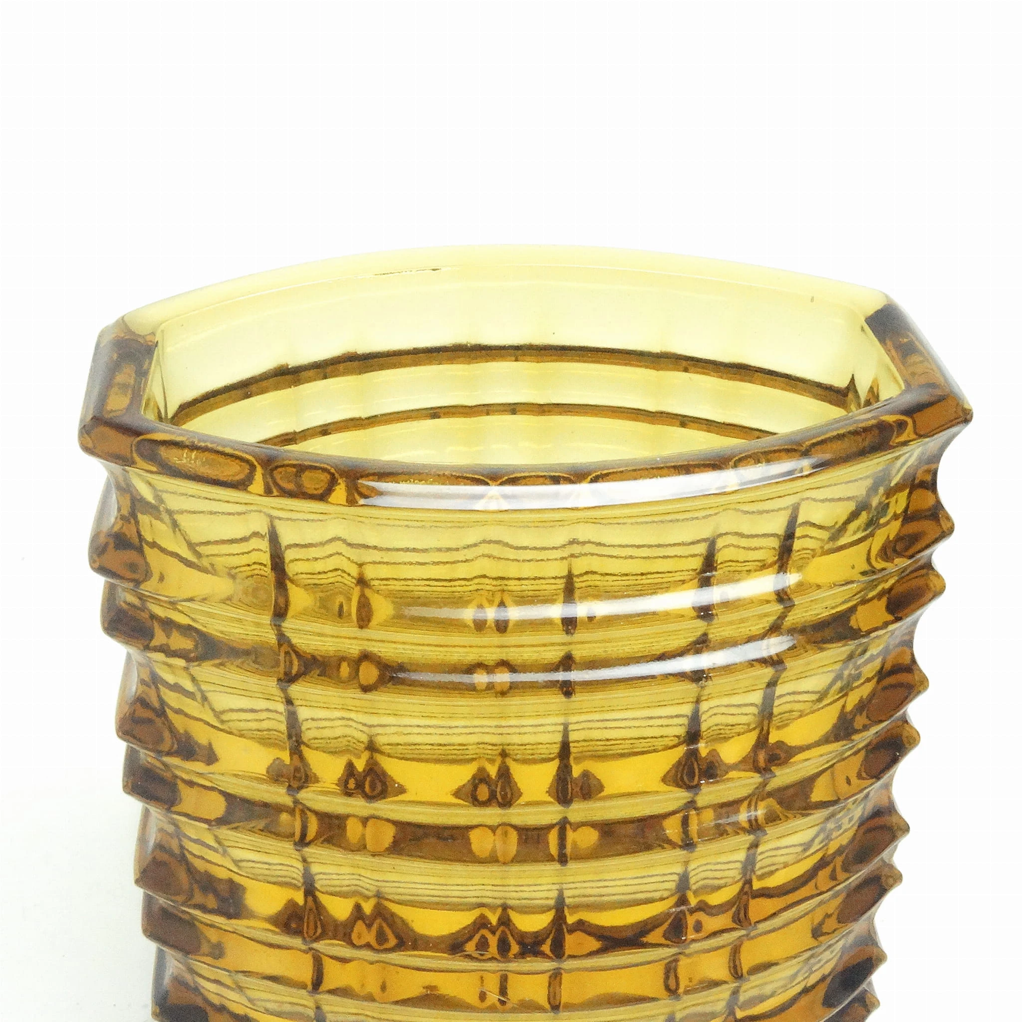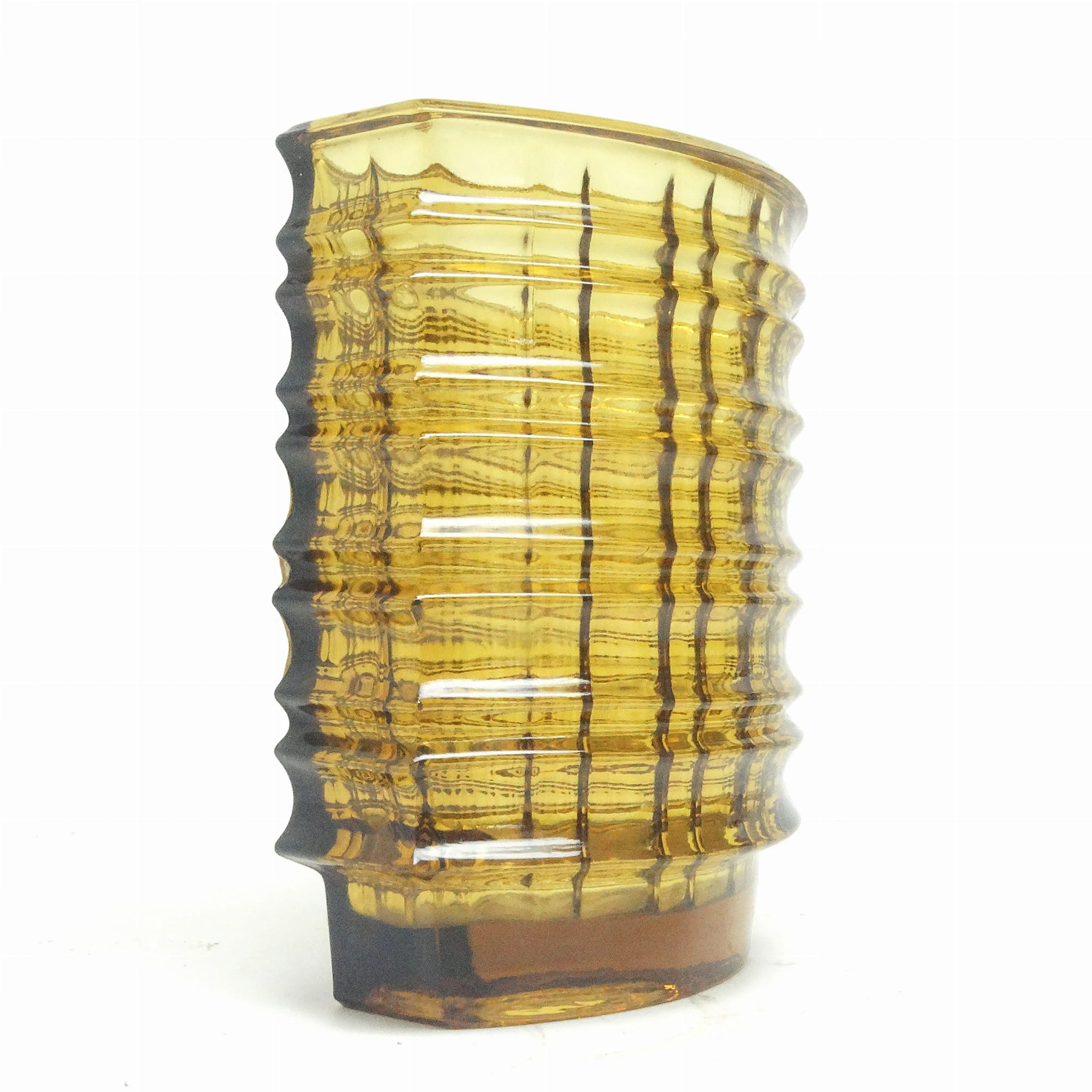 Wazon wykonany ze szkła sodowego, prasowanego, w kolorze miodowym