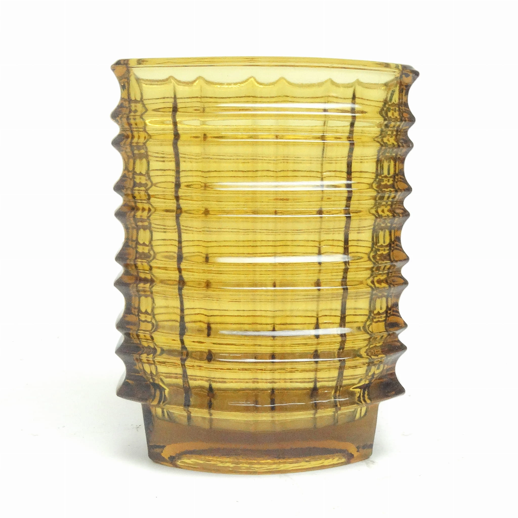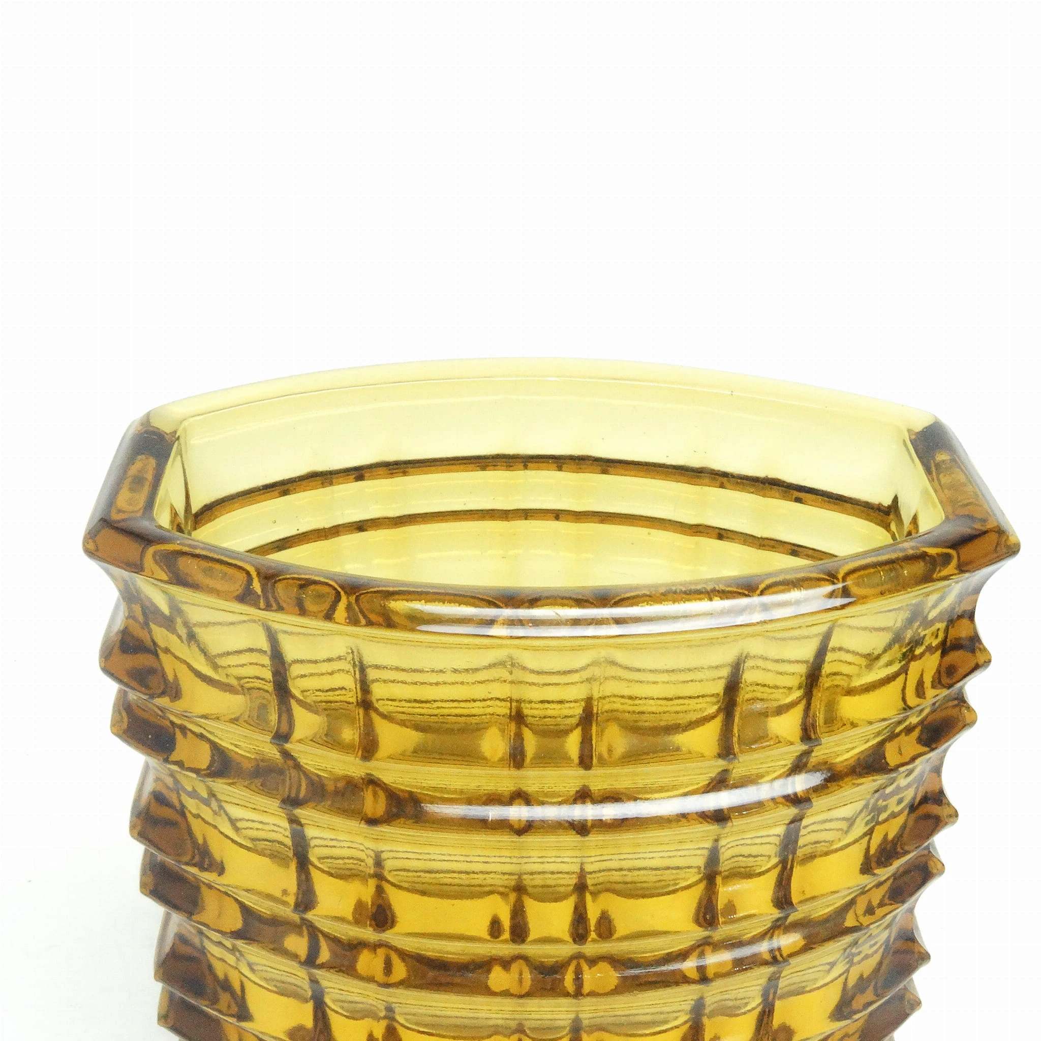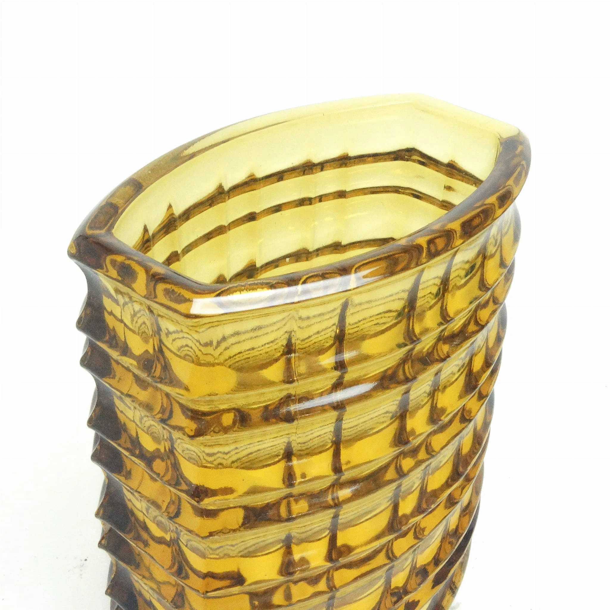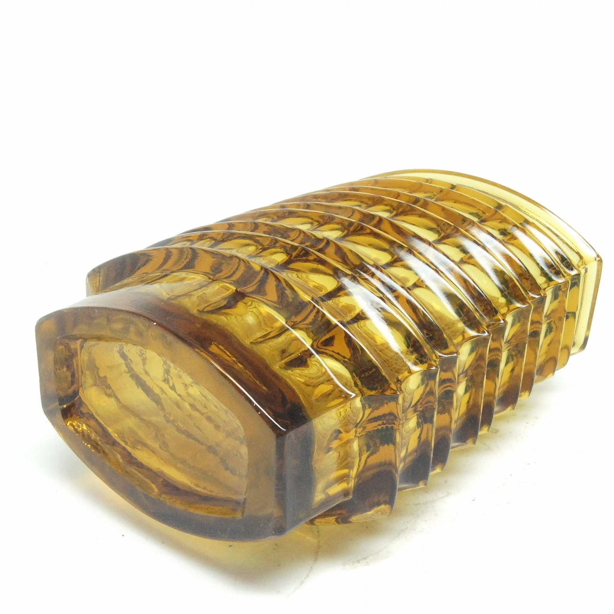 Wazon wykonany ze szkła sodowego, prasowanego, w kolorze miodowym