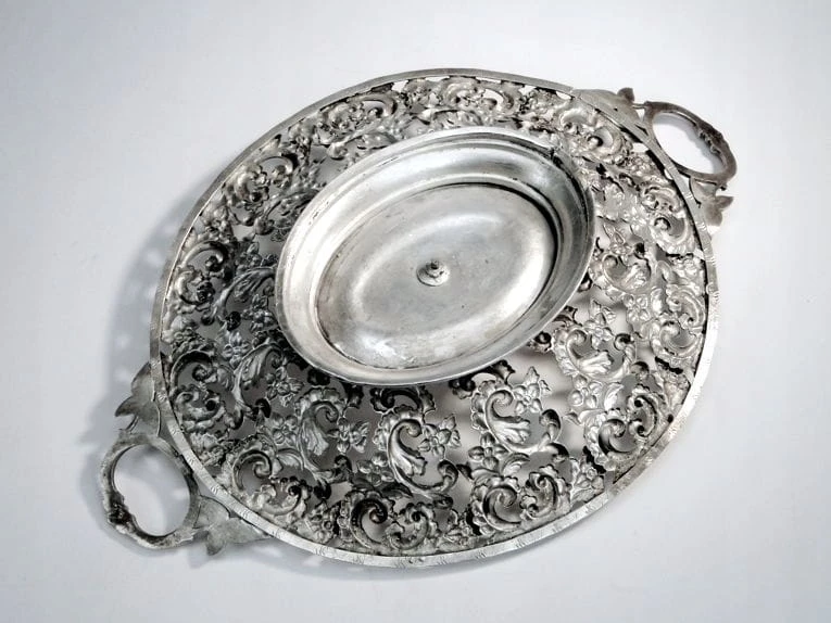 Charakteryzuje się obfitymi kwiatowymi i roślinnymi zdobieniami, które tworzą kosz.