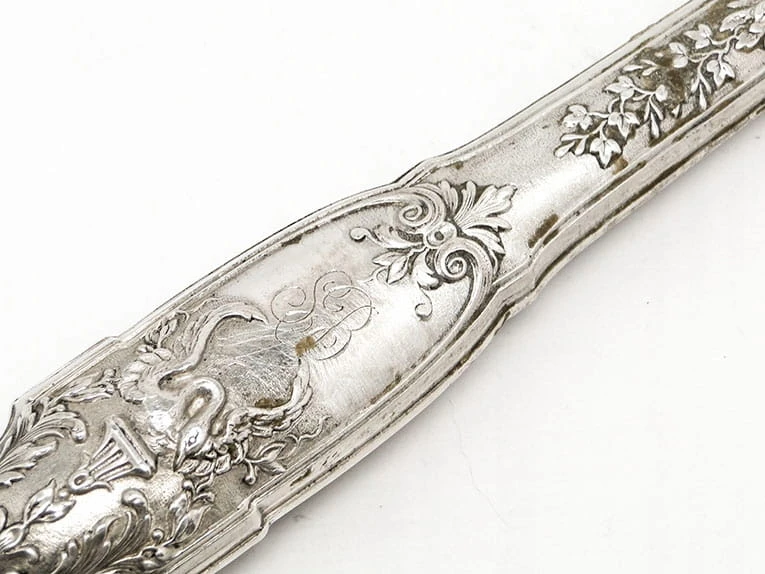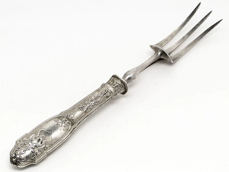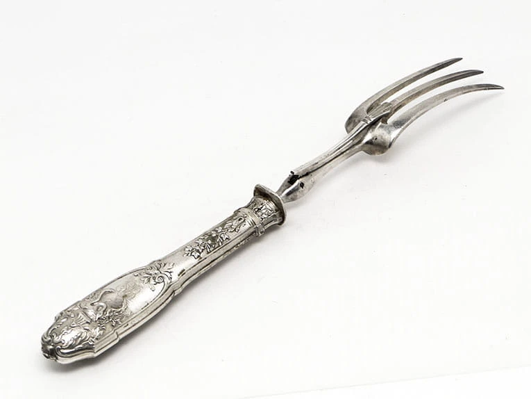 Srebrny widelec środka stołu wykonany na terenie Francji.