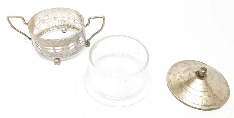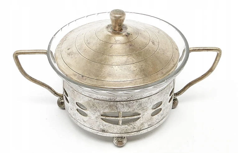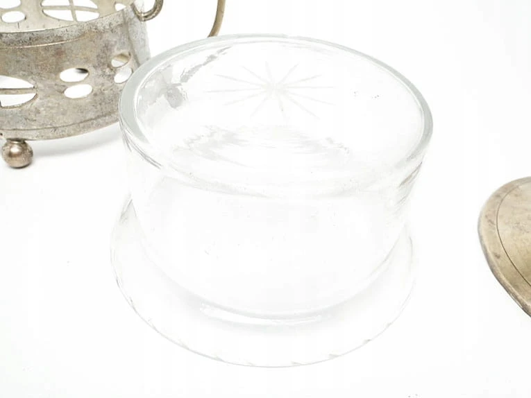 Wewnątrz cukiernicy znajduje się oryginalny szklany wkład .