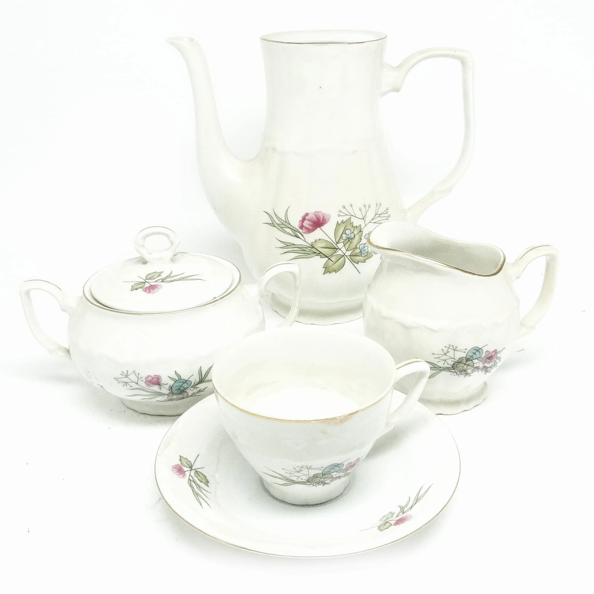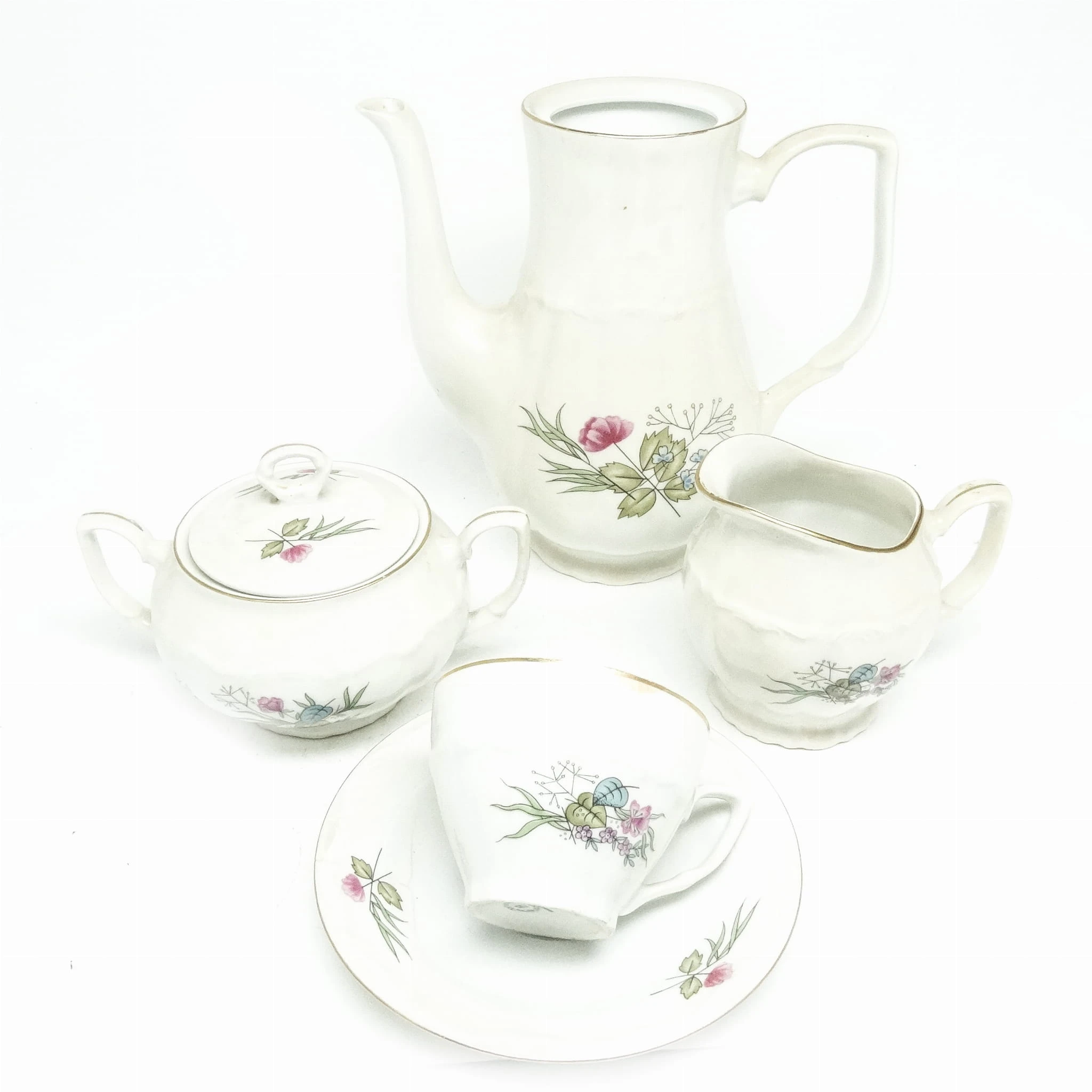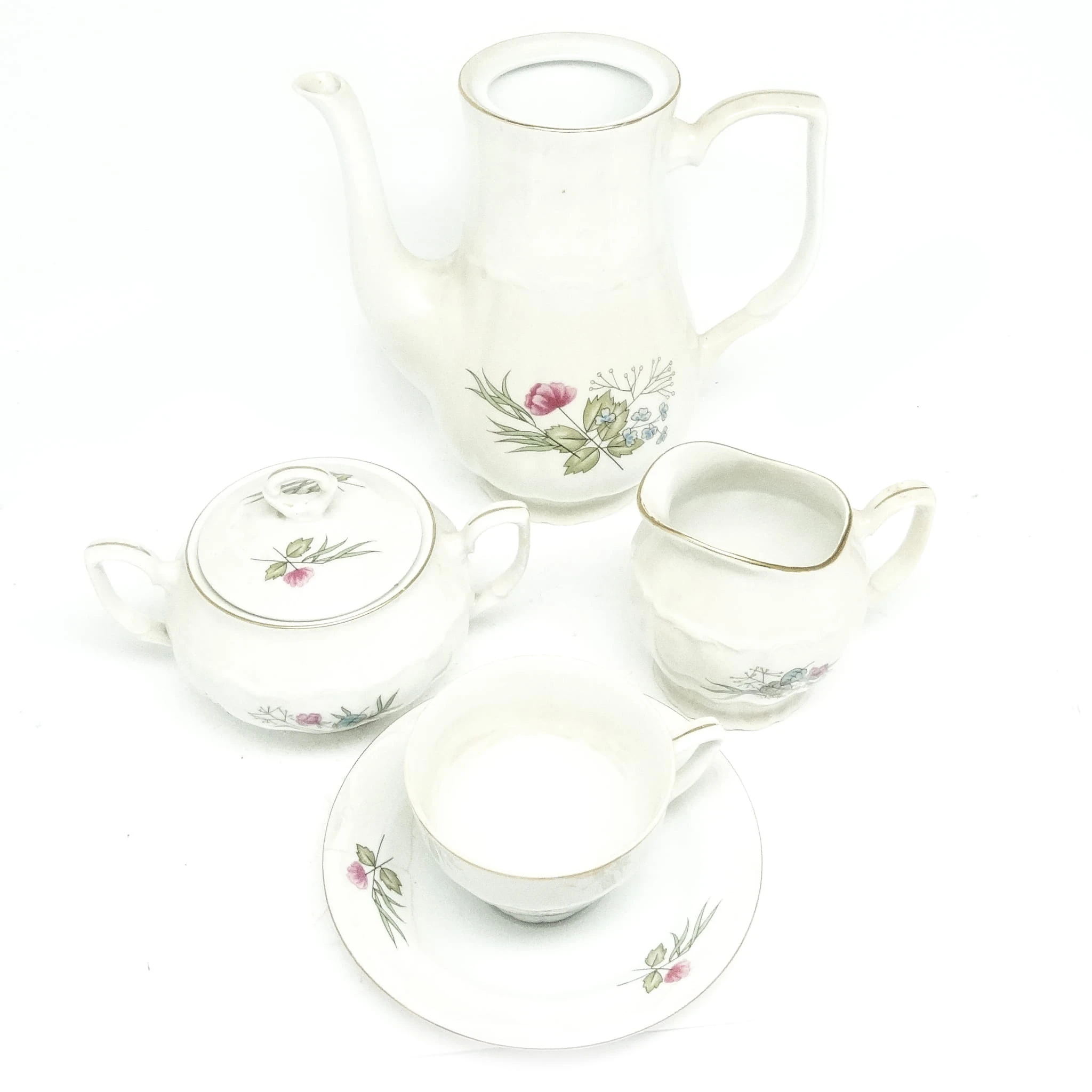 Zestaw składa się z cukiernicy mlecznika i filiżanka. Dzbanek jest dodany w gratisie.