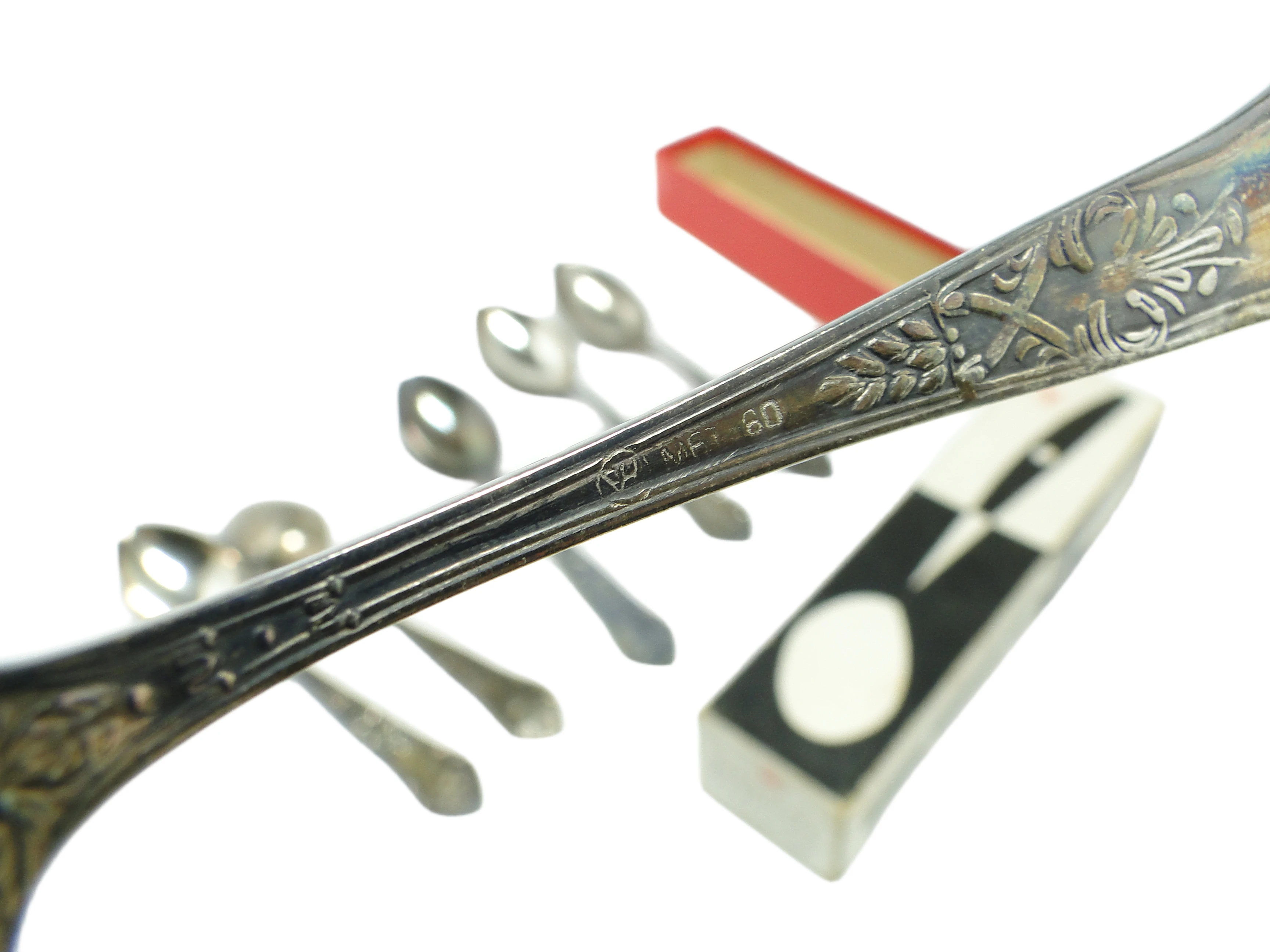 Zestaw łyżeczek do herbaty Aleksandria, mosiądz srebrzony, Polska, lata 70.