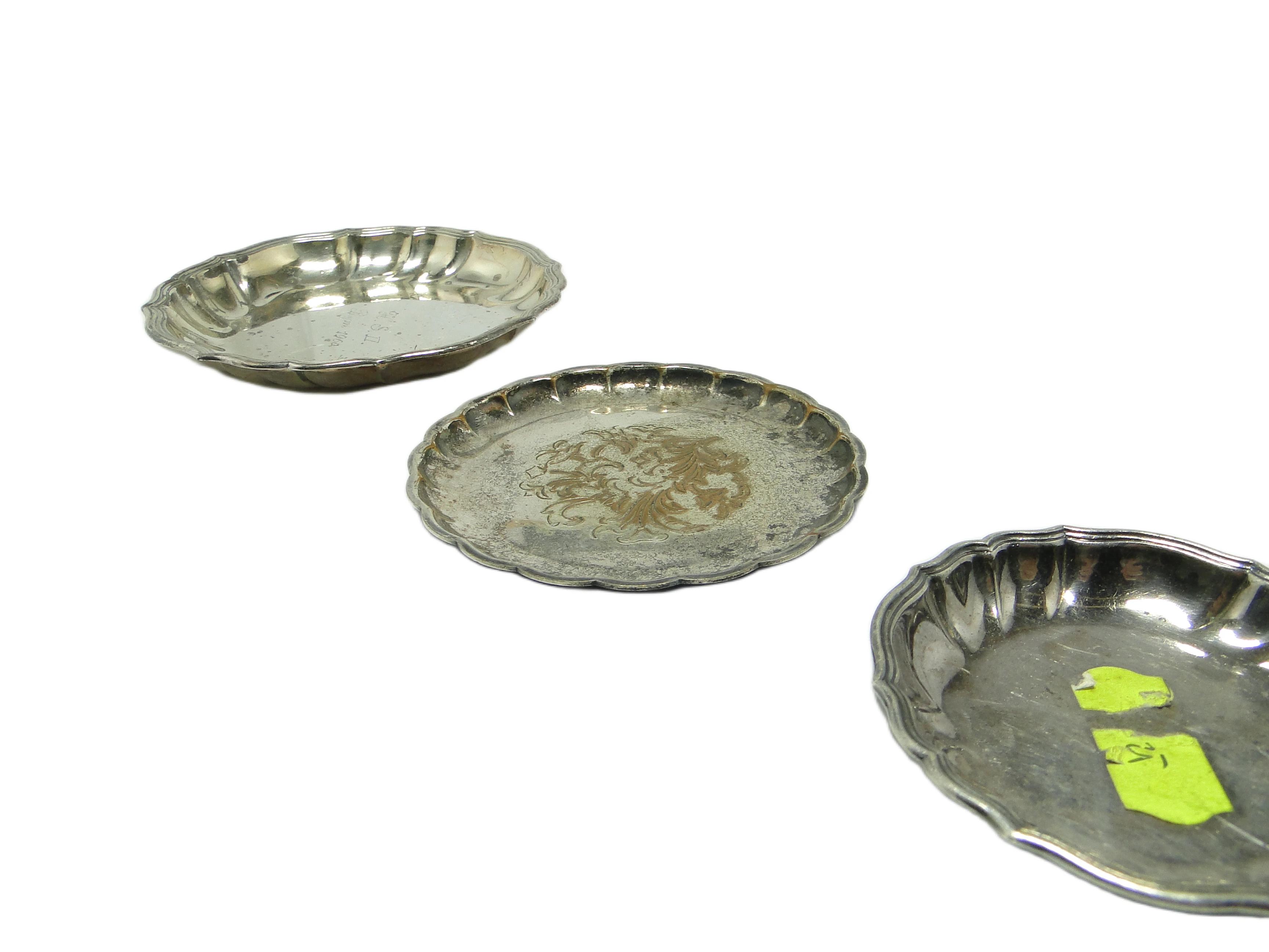 Zestaw trzech podstawek pod kieliszki z lat 50. powstał w Niemczech z mosiądzu pokrytego warstwą srebra. Każda z podstawek ma formę płytkiego, okrągłego talerzyka z dekoracyjnym, falowanym rantem nawiązującym do geometrycznego języka Art Deco. Powierzchnie przechodzą od matowej szarości do subtelnego półbłysku, miejscami pojawiają się naturalne przebarwienia i patyna. Jedna z podstawek zdobiona jest subtelnym grawerunkiem łączącym motywy roślinne z geometrycznymi. Dwie sztuki zachowały jaskrawozielone, niewielkie naklejki cenowe – dyskretne świadectwo ich wcześniejszej historii. Na całości widoczne są drobne, powierzchniowe rysy, lokalne ślady oksydacji oraz przebarwienia, typowe dla przedmiotów z połowy XX wieku. Zestaw zachowany w dobrym stanie, z autentycznymi oznakami upływu czasu, które nie naruszają integralności konstrukcji.W tych podstawkach wybrzmiewa głos niemieckiego wzornictwa lat 50., które codzienne przedmioty traktowało z szacunkiem dla rzemiosła i dyskretnej dekoracji. Falowany rant przywołuje rytm modernistycznych wnętrz, subtelny grawerunek opowiada o dbałości o detal, a srebrzyste powierzchnie – z miejscową patyną – zdają się pamiętać o wieczorach przy elegancko nakrytym stole. Każda z podstawek, niczym cichy gość dawnych przyjęć, nosi na sobie ślady spotkań i historii zapisanej w metalu.Zestaw można wykorzystać w salonie, eksponując go na niskim stoliku podczas serwowania trunków lub napojów. Podstawki dobrze współgrają z barowym szkłem vintage, porcelaną z połowy XX wieku albo prostymi naczyniami z przezroczystego szkła. W aranżacji warto połączyć je z innymi metalicznymi akcentami, jak mosiężne świeczniki, taca czy butelka w srebrnej oprawie, by podkreślić ich dekoracyjny rodowód. Sprawdzą się zarówno w klasycznych, kolekcjonerskich wnętrzach, jak i w eklektycznych przestrzeniach, gdzie autentyczność historii staje się atutem.