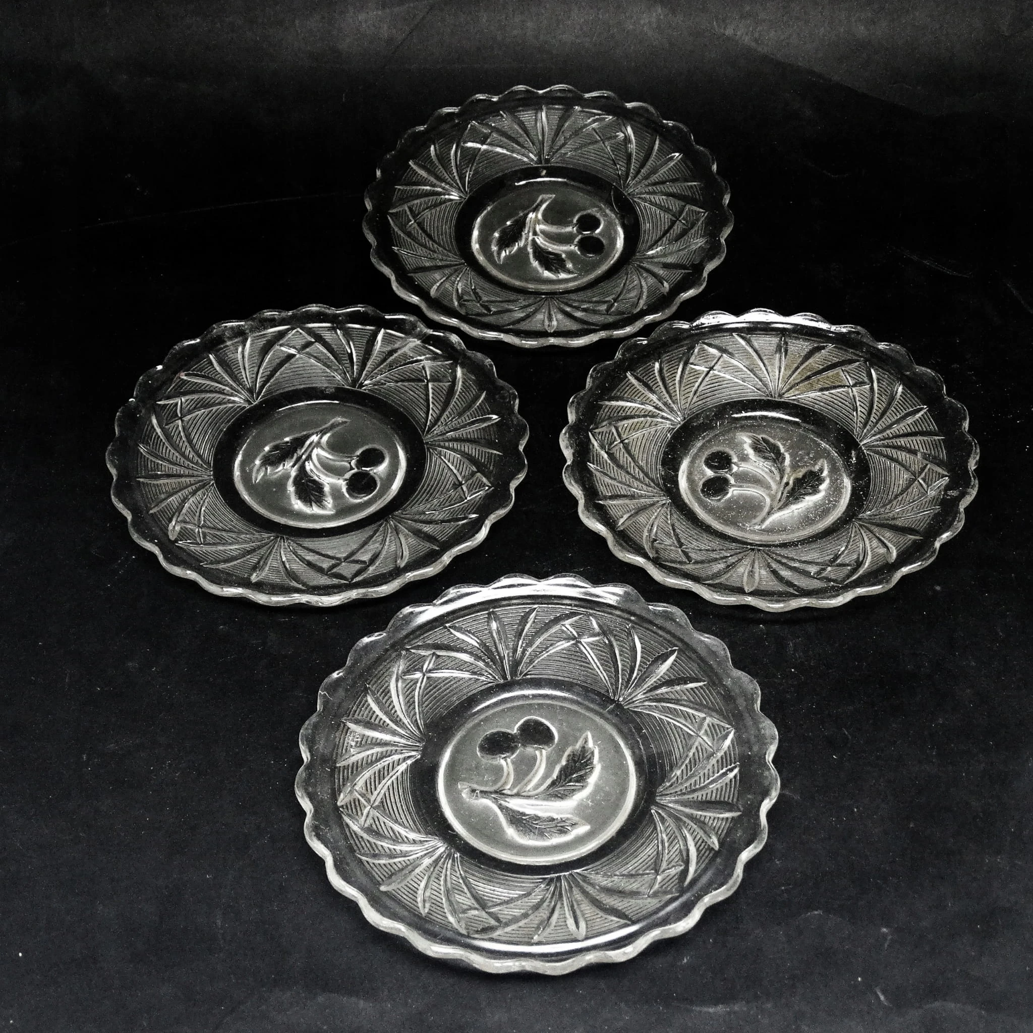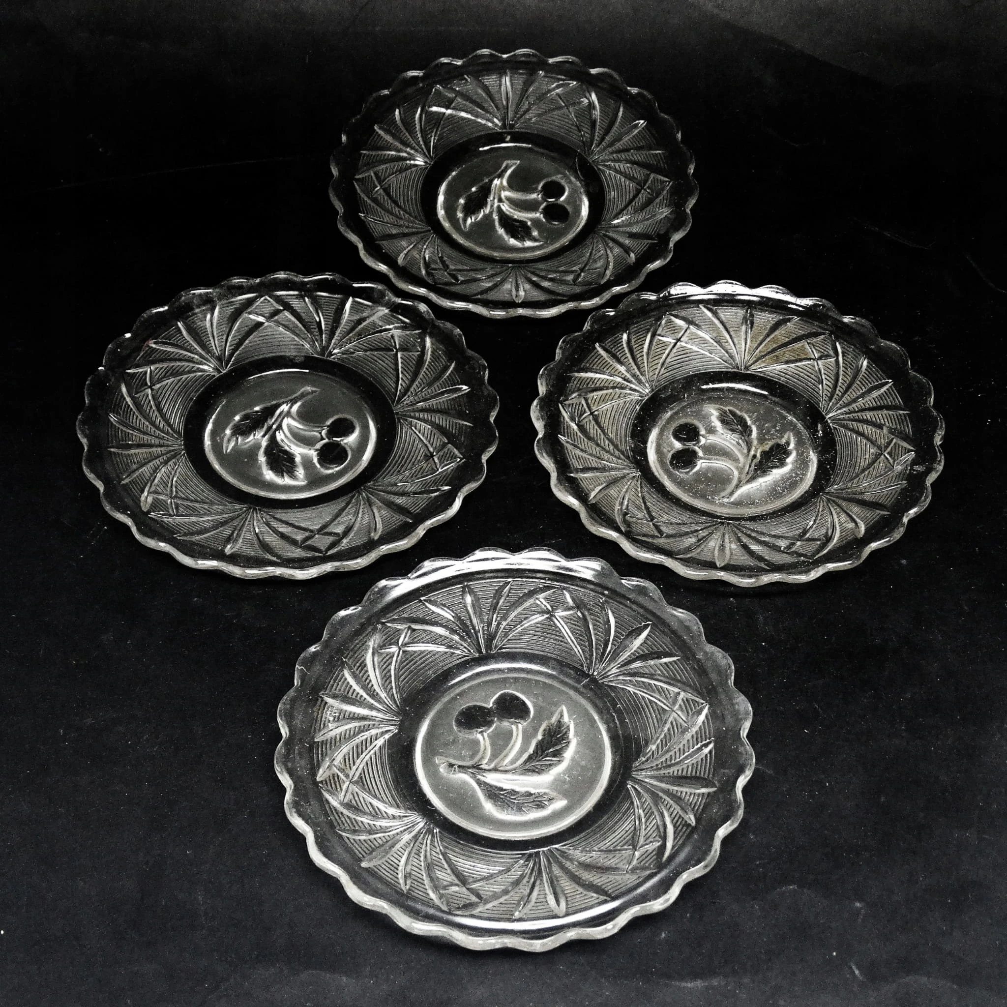 Zestaw czterech talerzy pochodzi z Huty Hortensja, został wykonany w latach 60. Stan dobry.