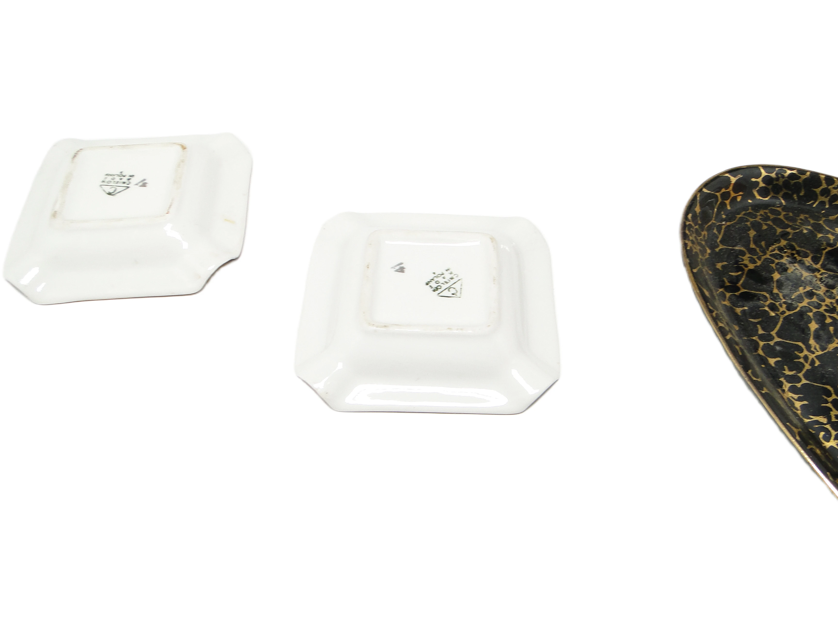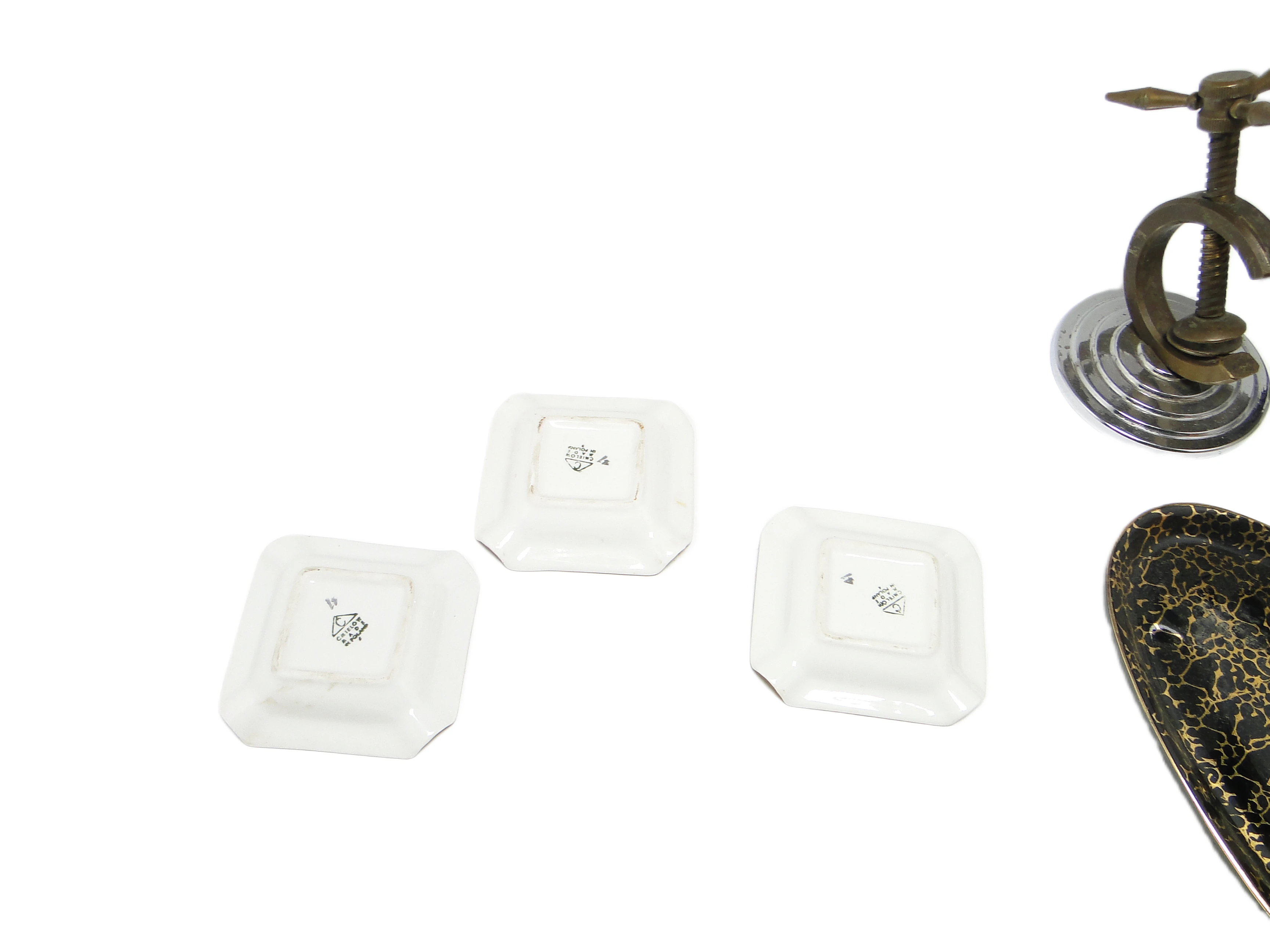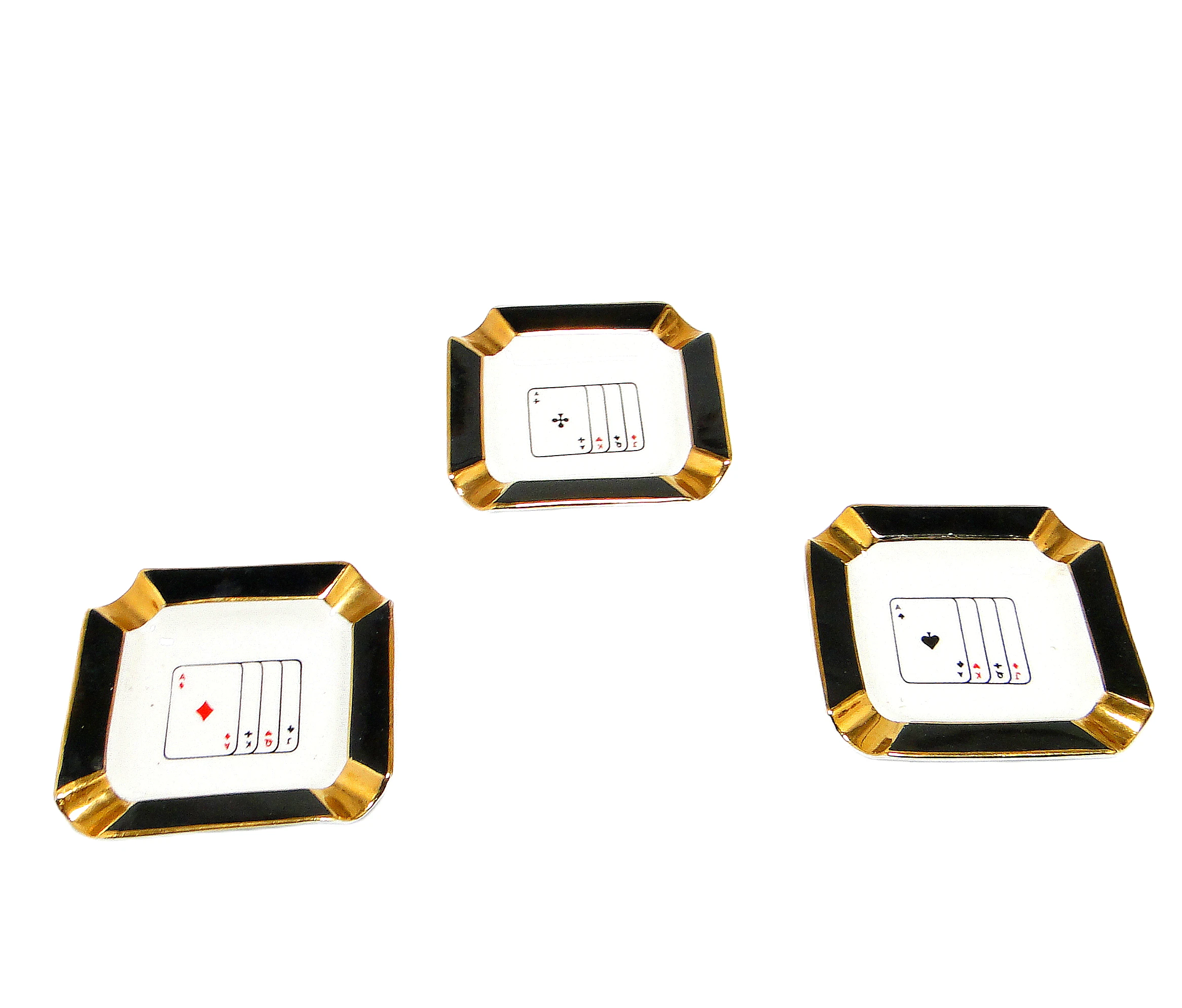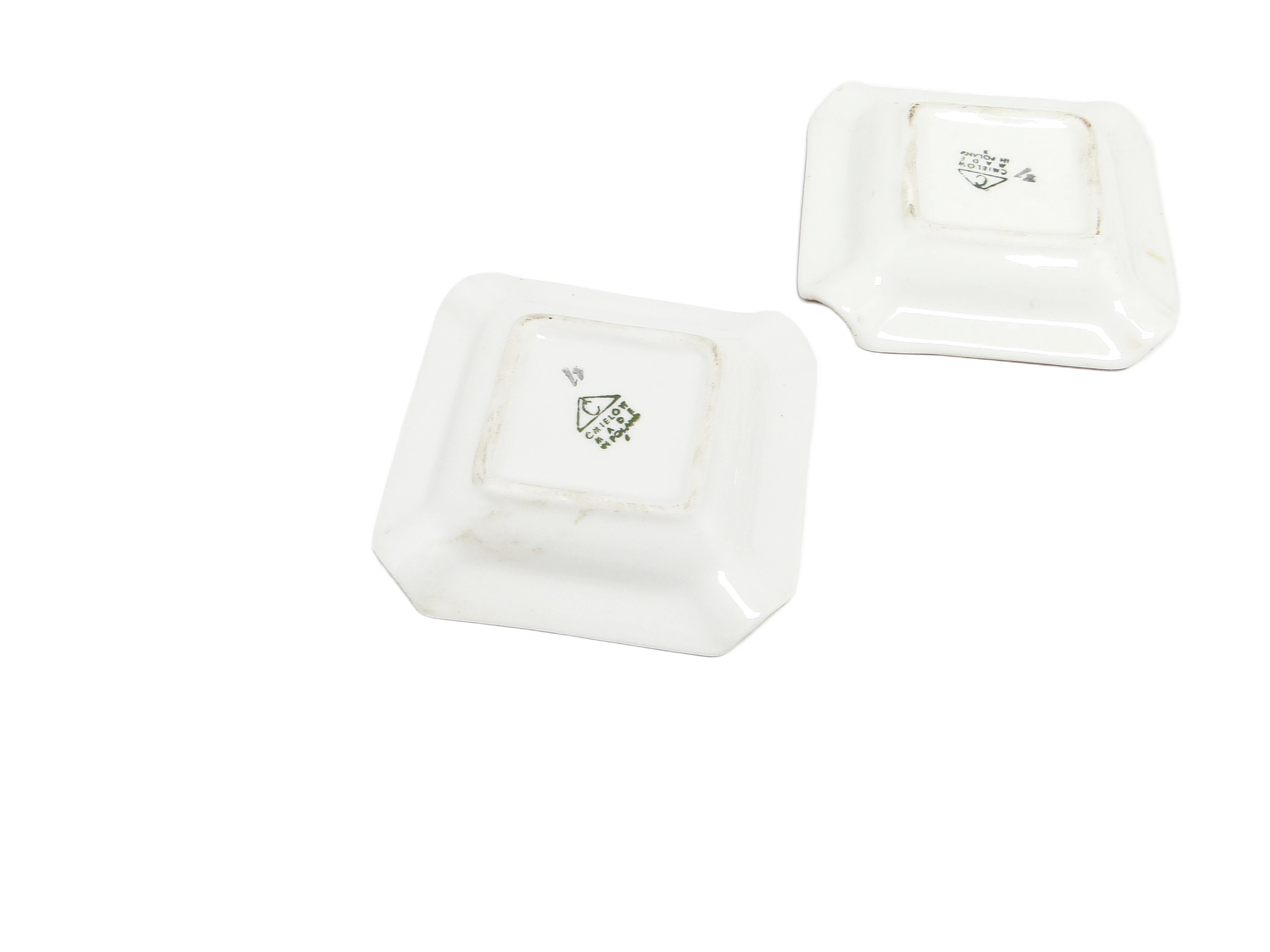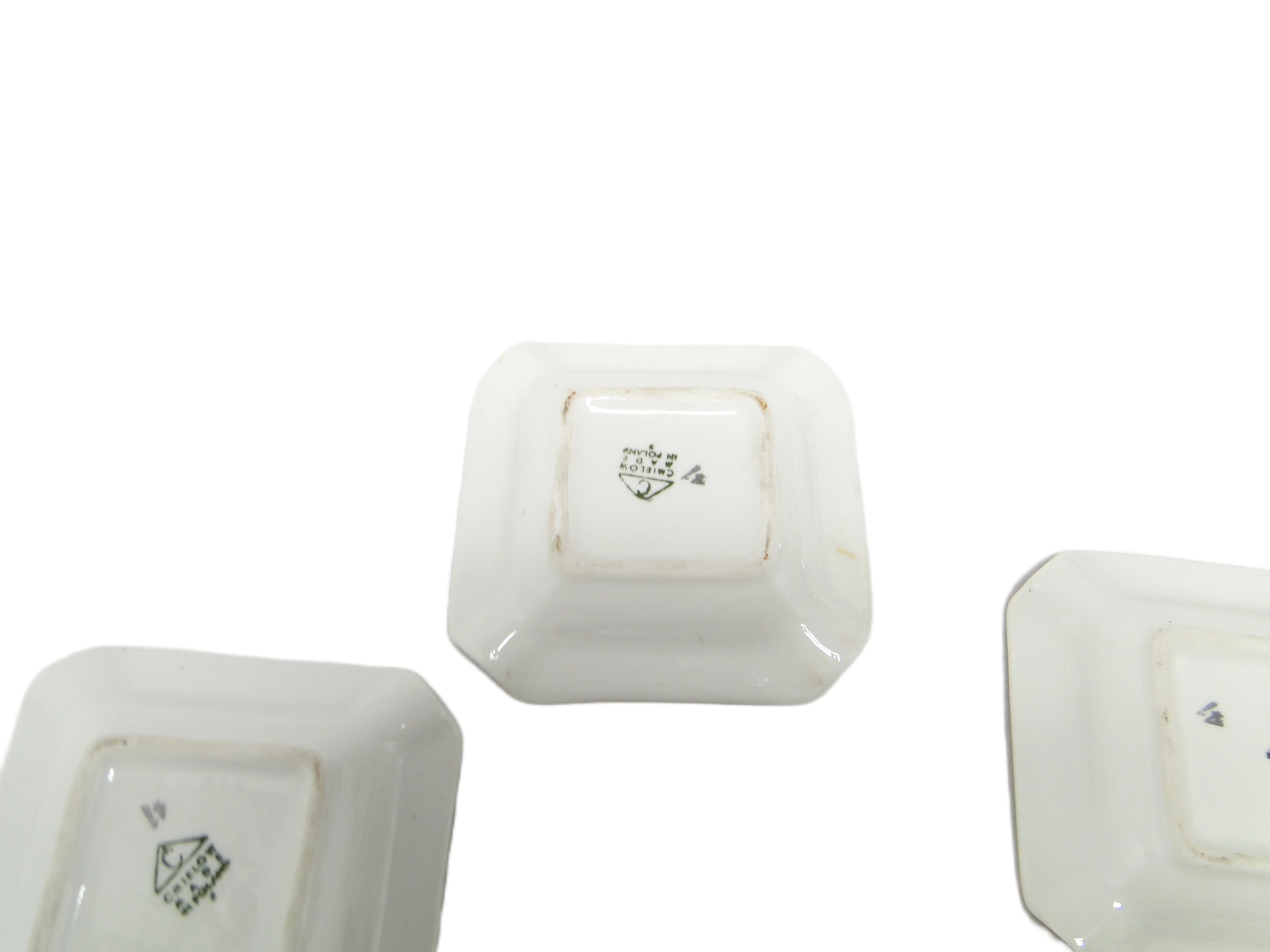 Zestaw trzech popielniczek brydżowych, mid-century modern, porcelana, Ćmielów, Polska, lata 60.