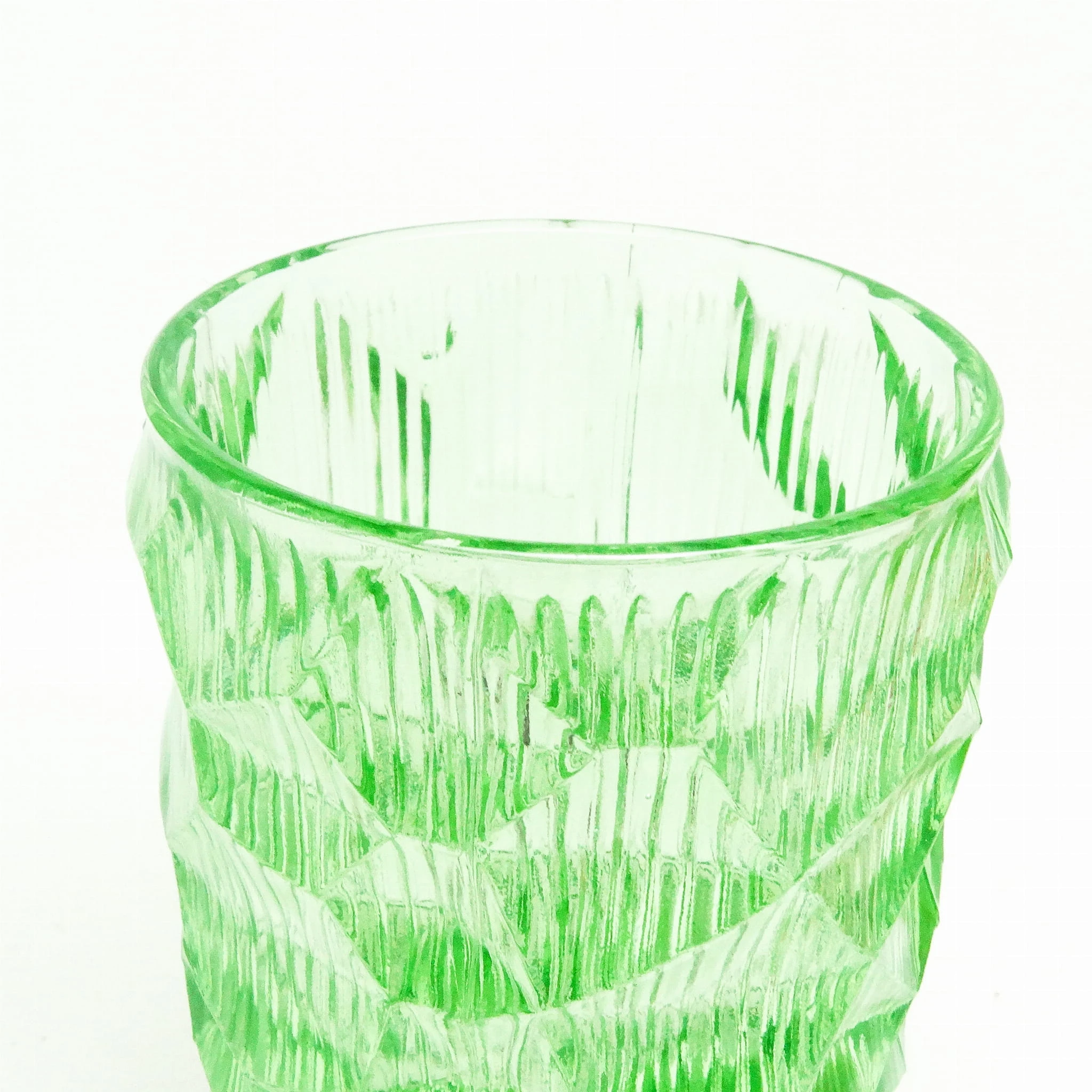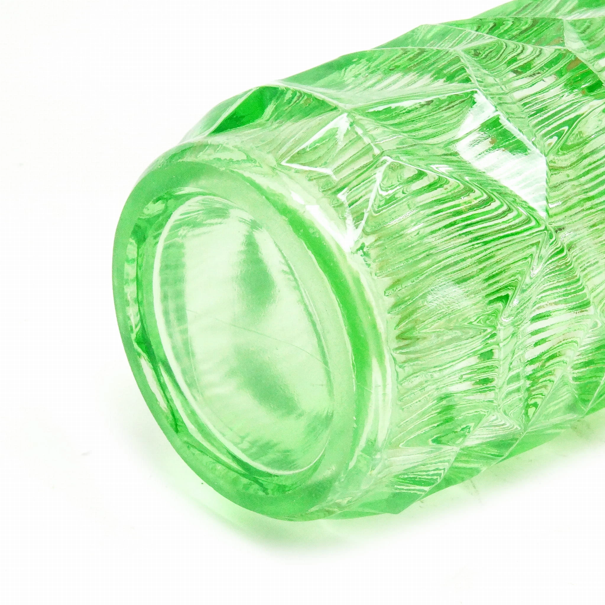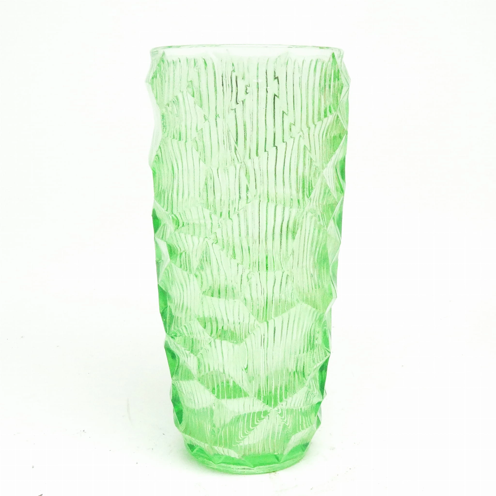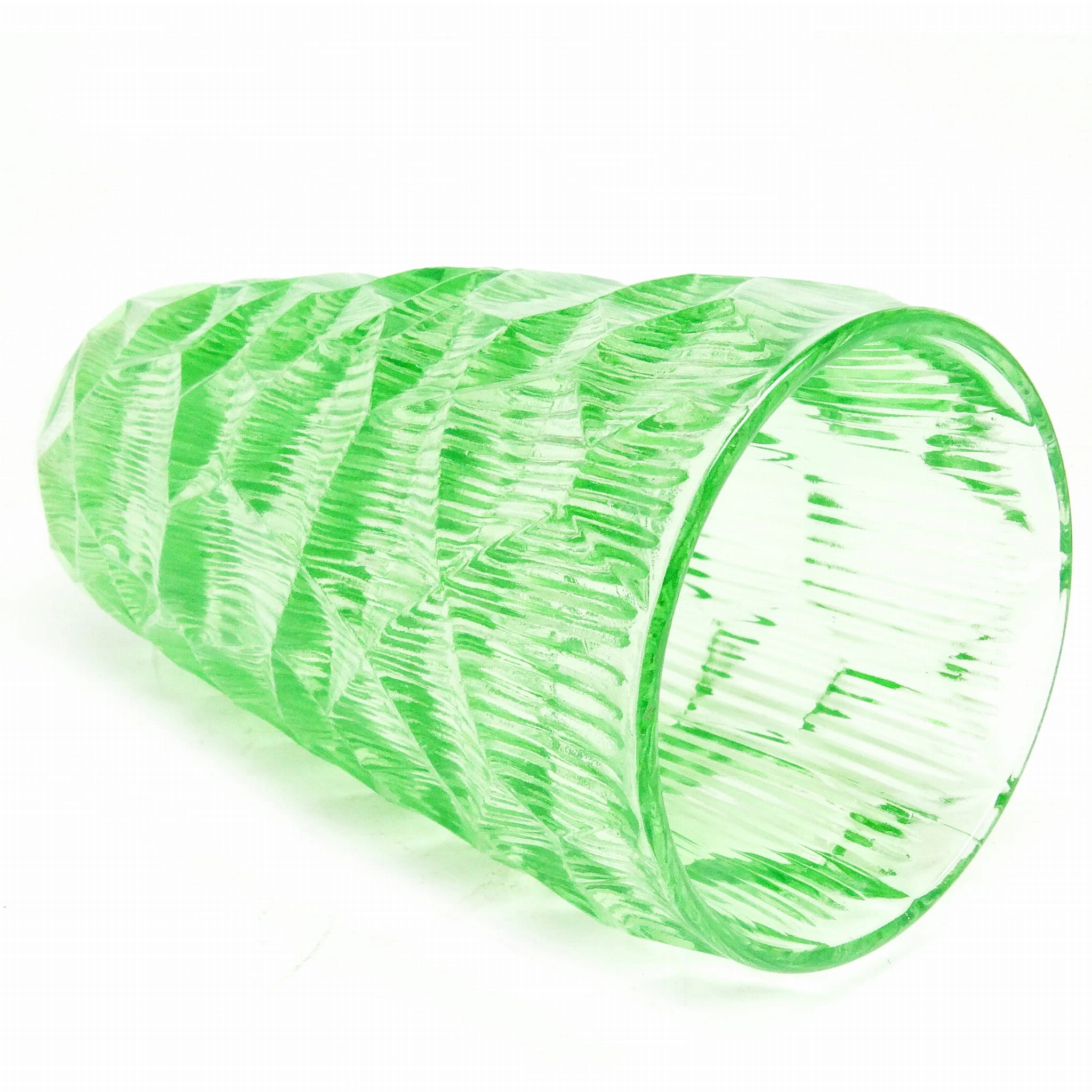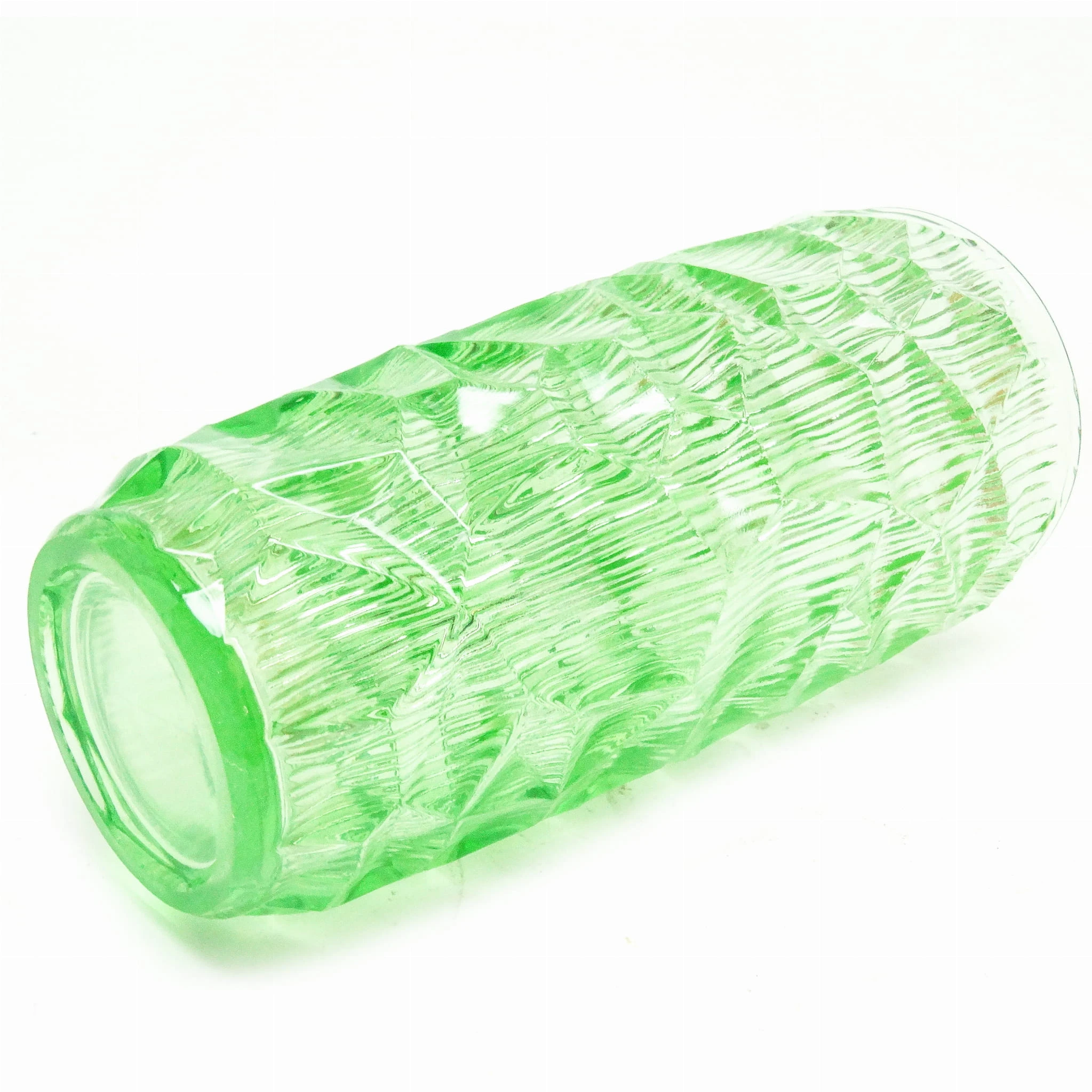 szkło sodowe, prasowane, barwione w masie, wys.: 22 cm, śr.: 10,5 cm