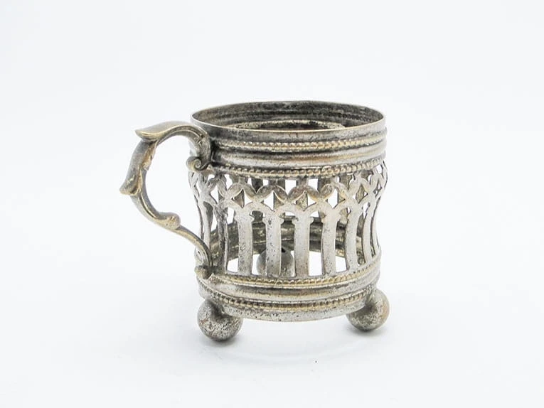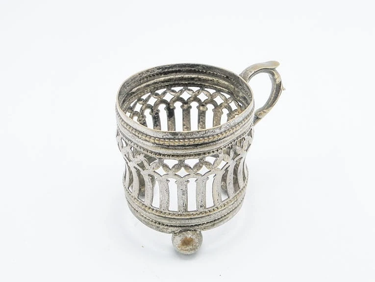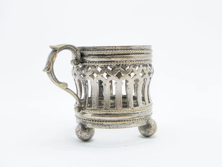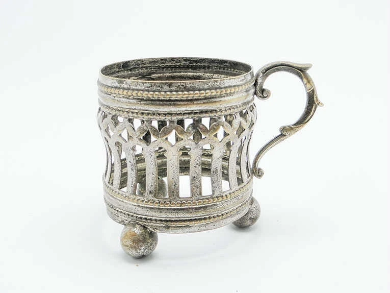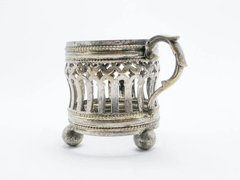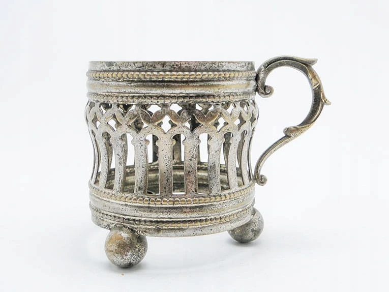 ażurowy podstakannik na kulistych nóżkach