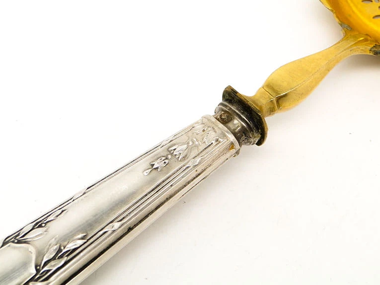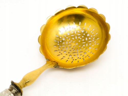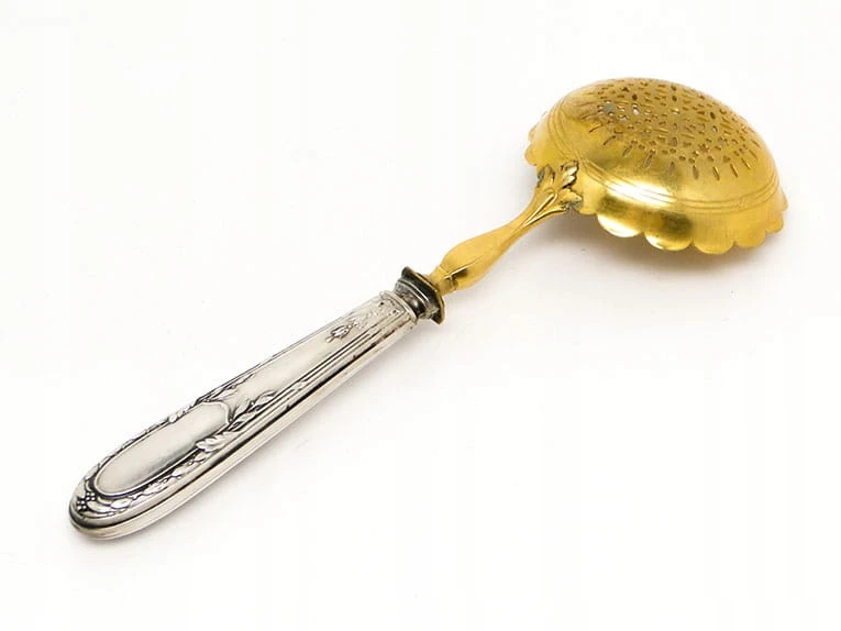 Srebrny cedzak do pomidorów.