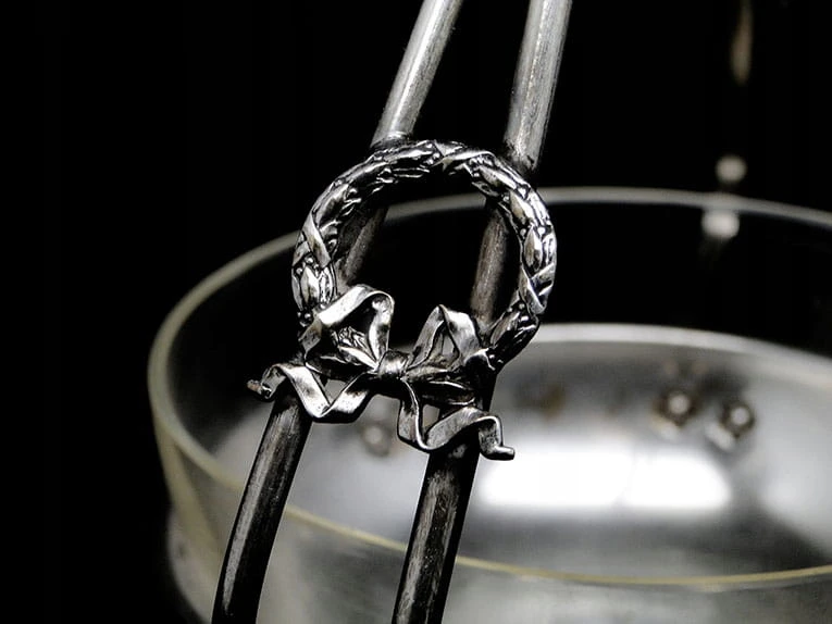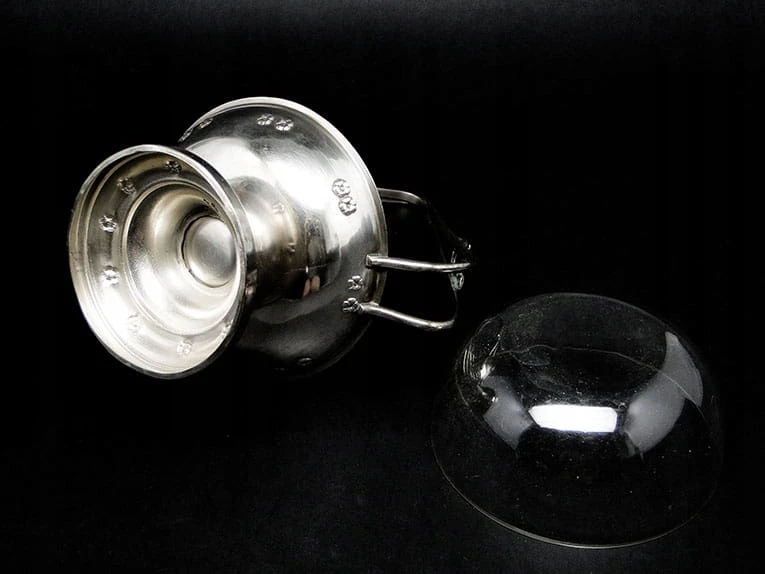 Wewnątrz cukiernicy znajduje się oryginalny szklany wkład .