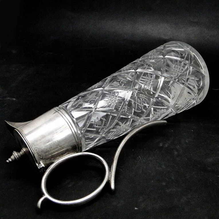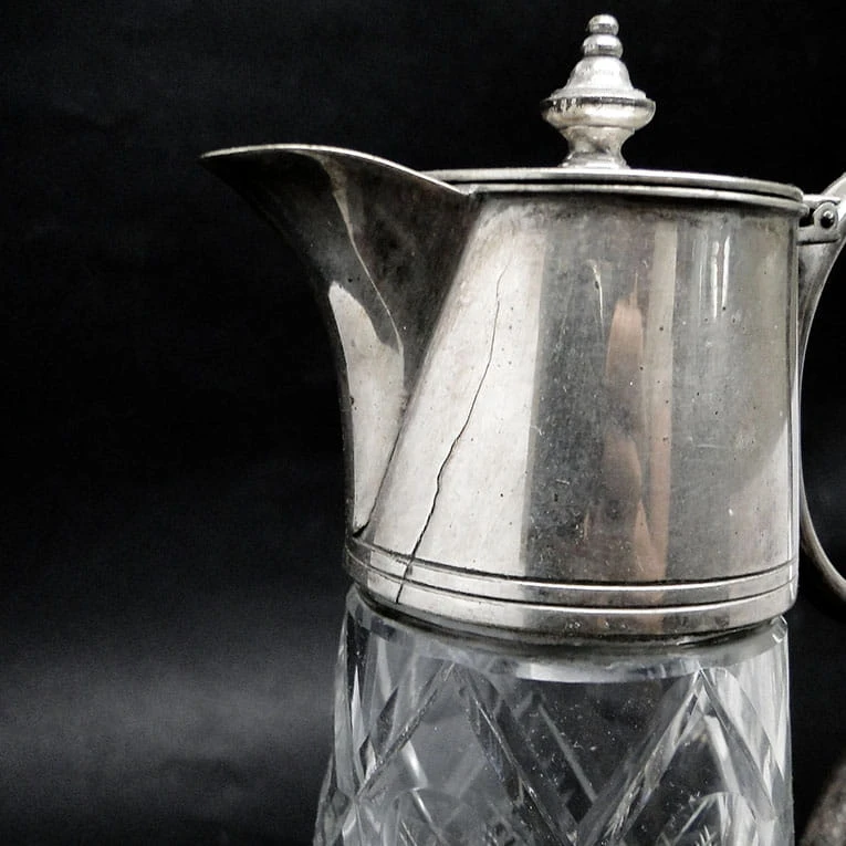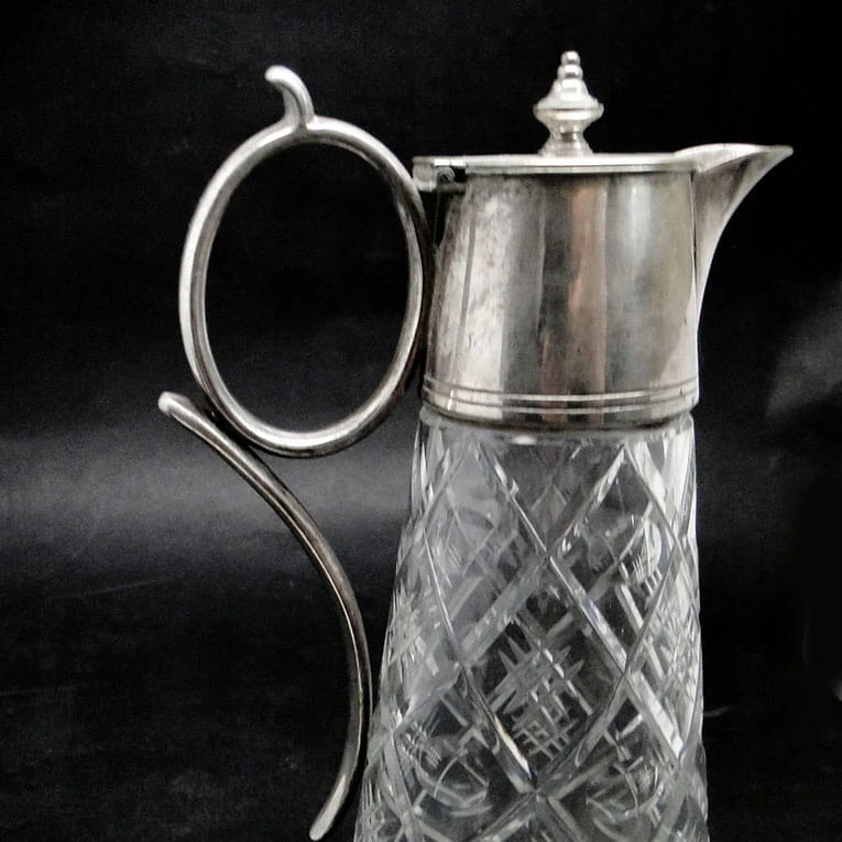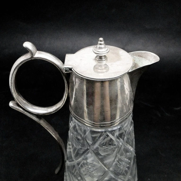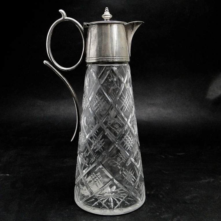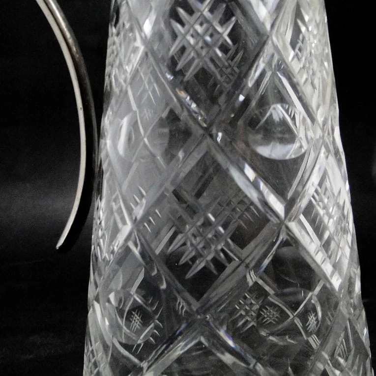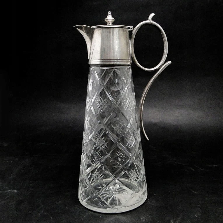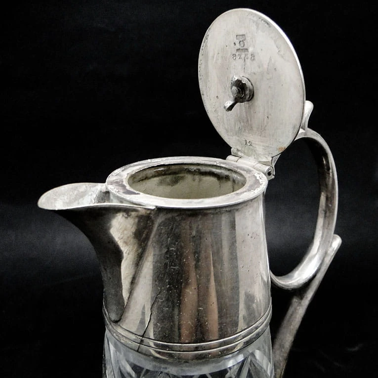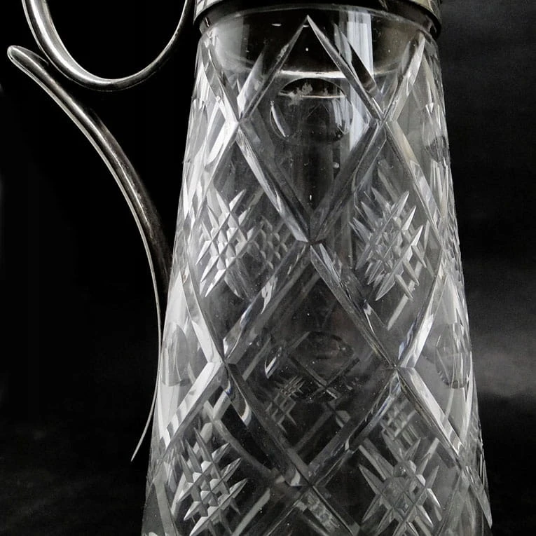 Dzban powstał około 1900-1910 roku. Jego stan jest dobry - szkło jest nienaruszone, jedynie lekkie pęknięcie na okuciu co widać bardzo dokładnie na zdjeciach. Nie ma ono żadnego wpływu na użytkowanie. Prezentowany dzban jest przykładem wysokiej klasy rzemiosła artystycznego. Wykonany jest w stylu art deco.