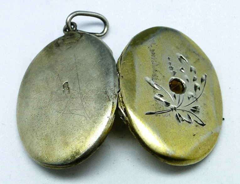 Przedmiotem aukcji jest sekretnik wykonany ze srebra - pozłacany.