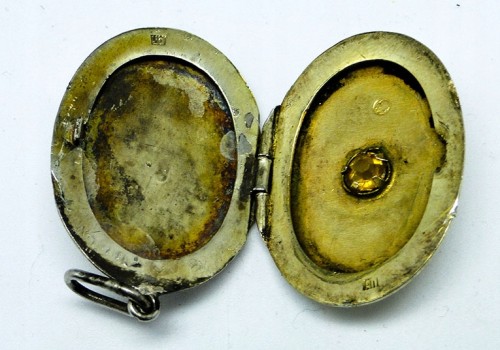 Przedmiotem aukcji jest sekretnik wykonany ze srebra - pozłacany.