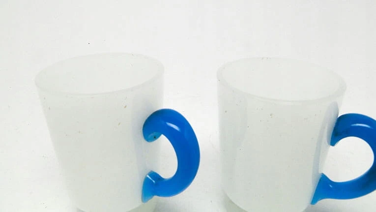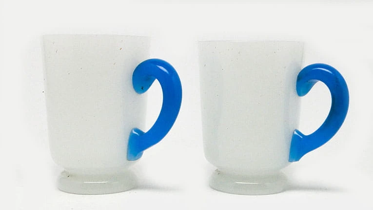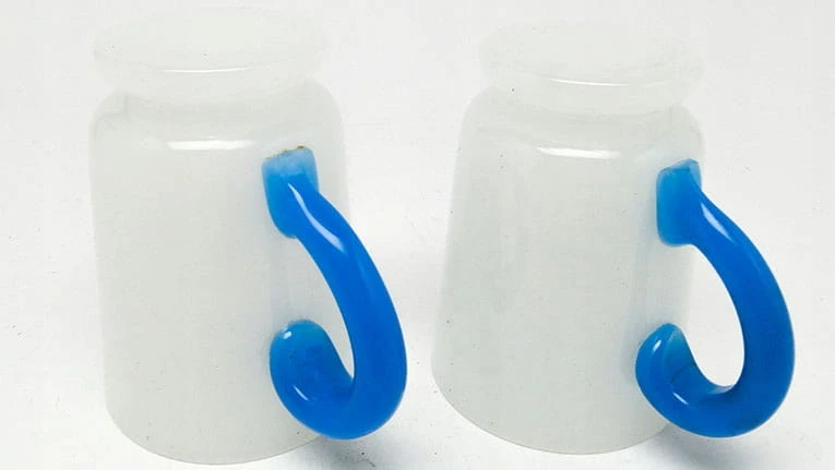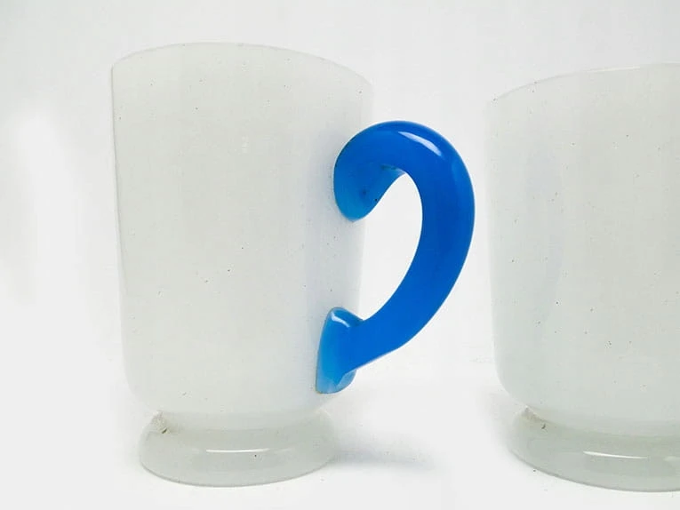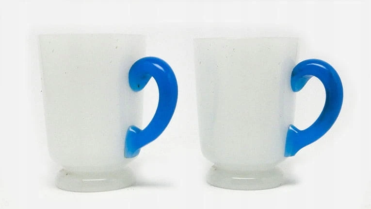 Secesja kubeczki latticimo z niebieskim uchem 1900