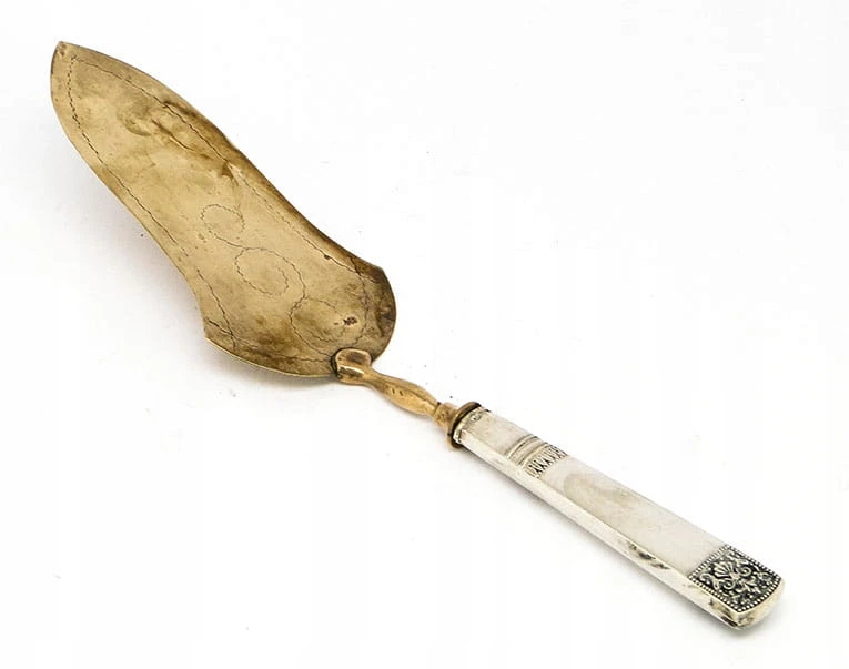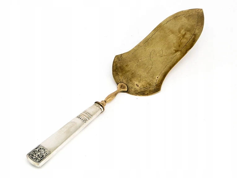 Przedmiotem aukcji jest srebrna łopatka do tortu wykonana na terenie Polski.