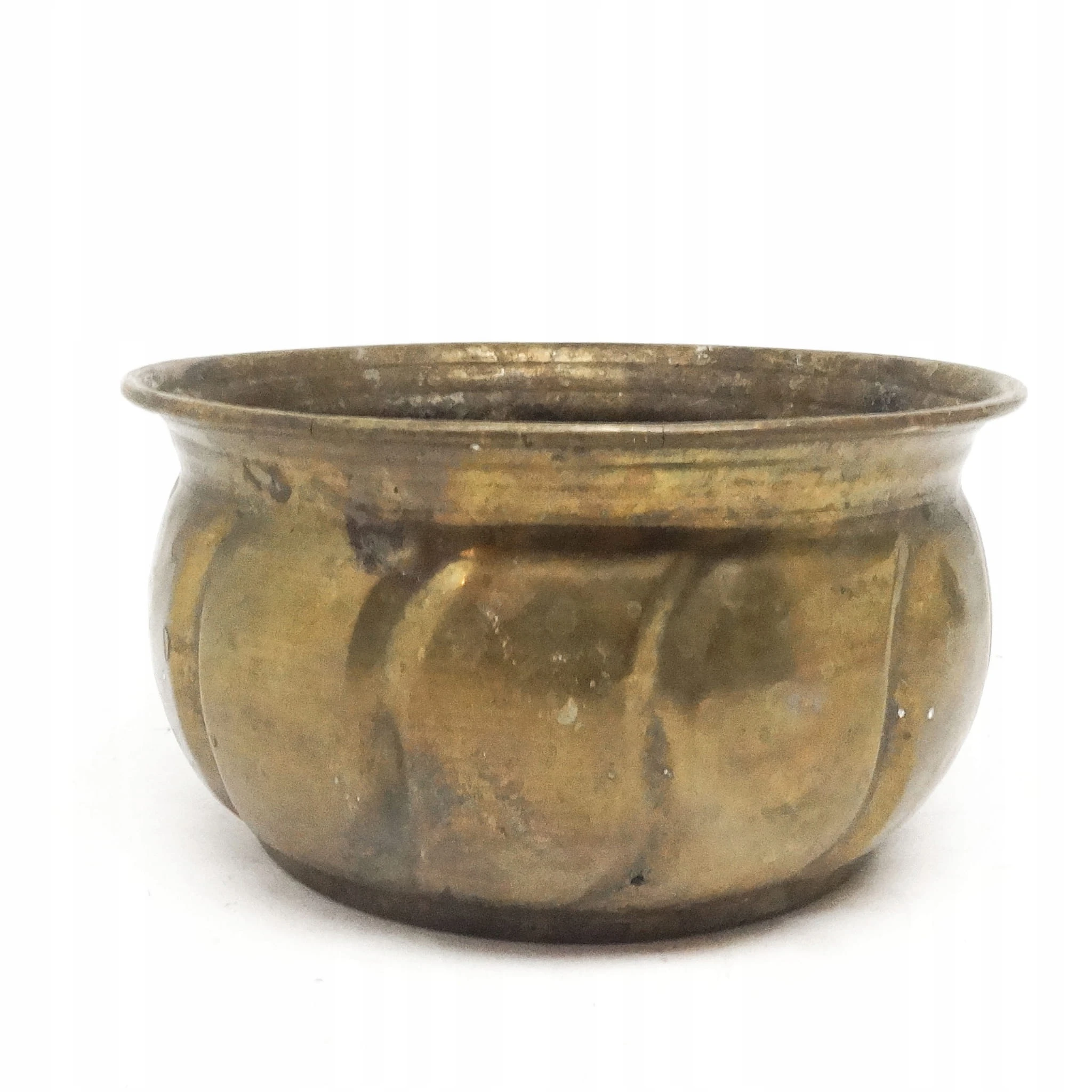 Osłona na doniczkę wyprodukowany w latach 60. w Polsce. Wykonana została z mosiądzu. Stan dobry.