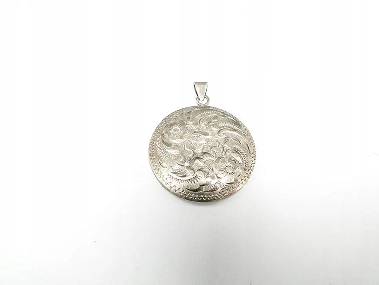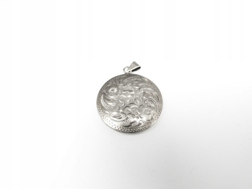 Przedmiotem aukcji jest srebrna ozdoba do łańcuszka. Bardzo zdobny przedmiot.