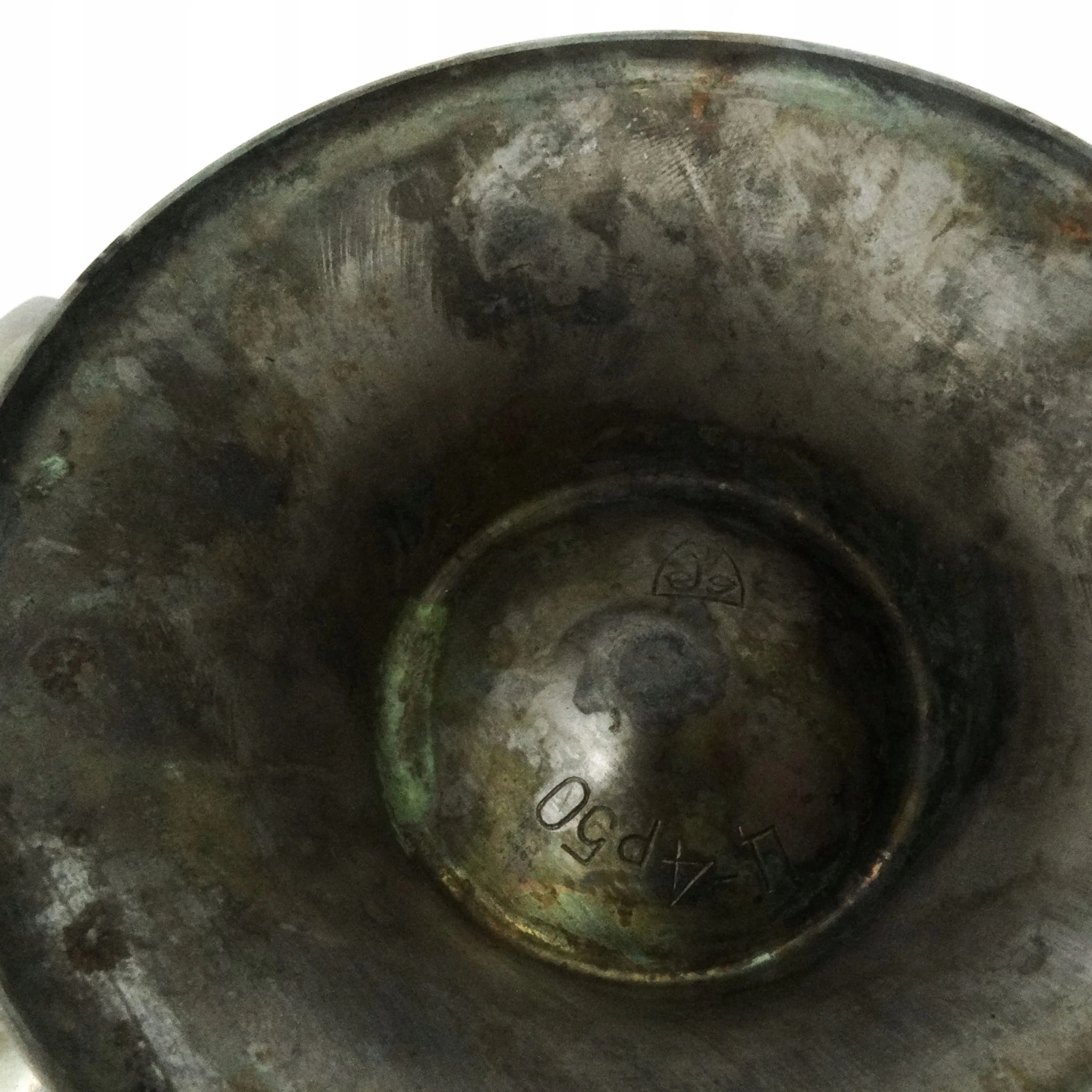 Patera wyprodukowana została w ZSRR w latach 50. Wykonana jest z w stylu art deco. Sygnowana. Nosi ślady użytkowania.