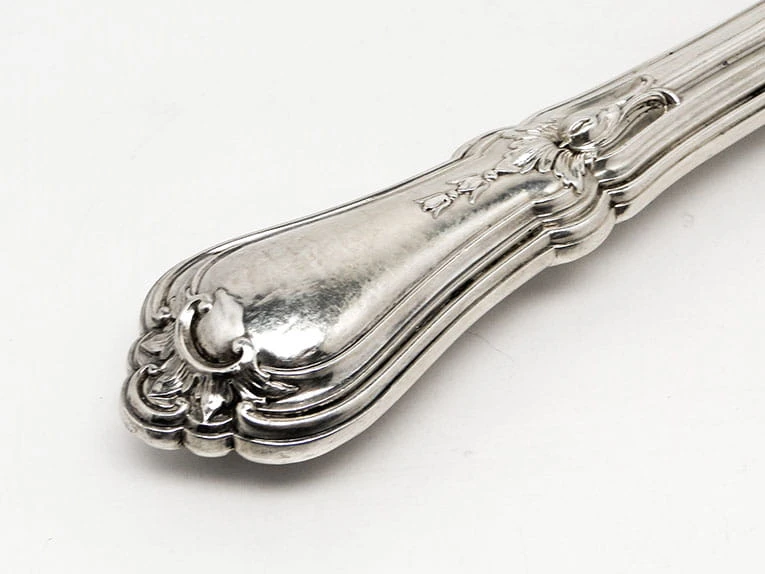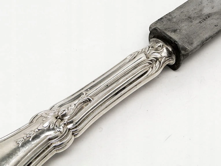 Przedmiotem aukcji jest srebrny nóż środka stołu wykonany na terenie Francji.