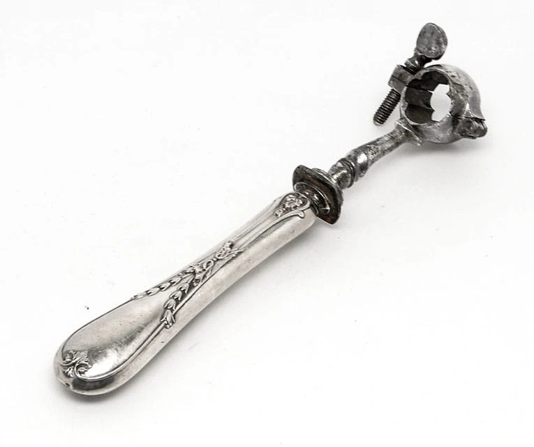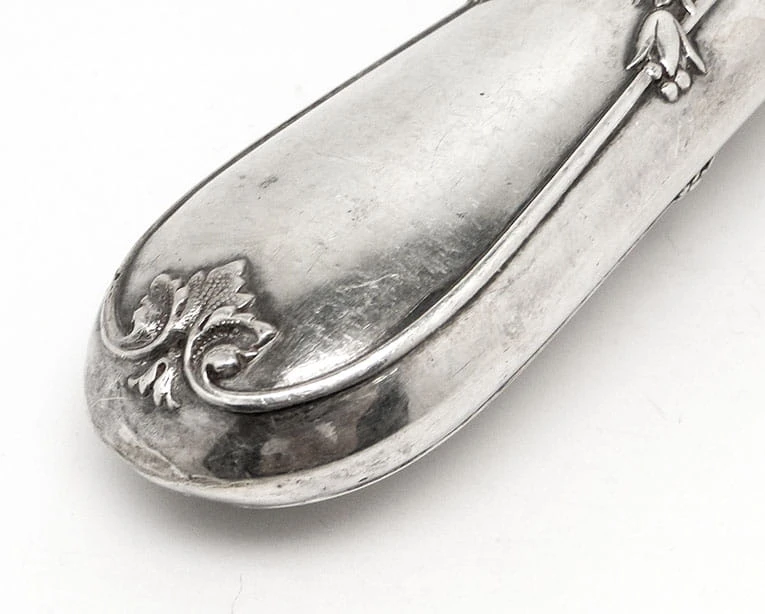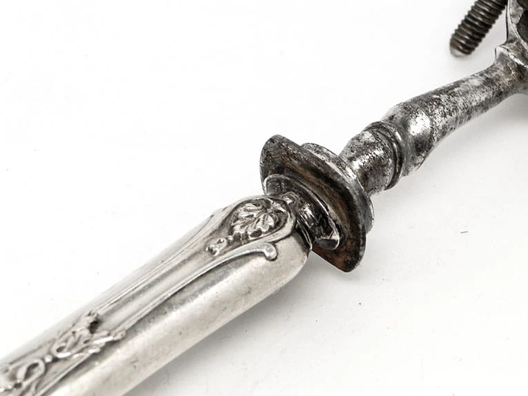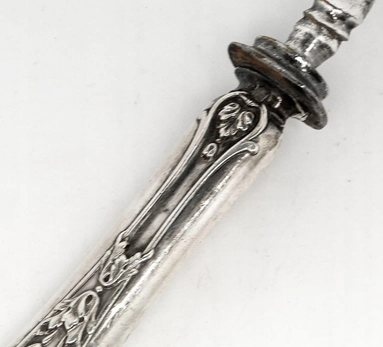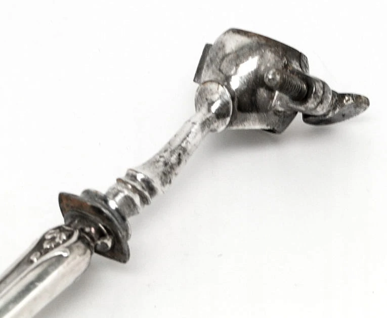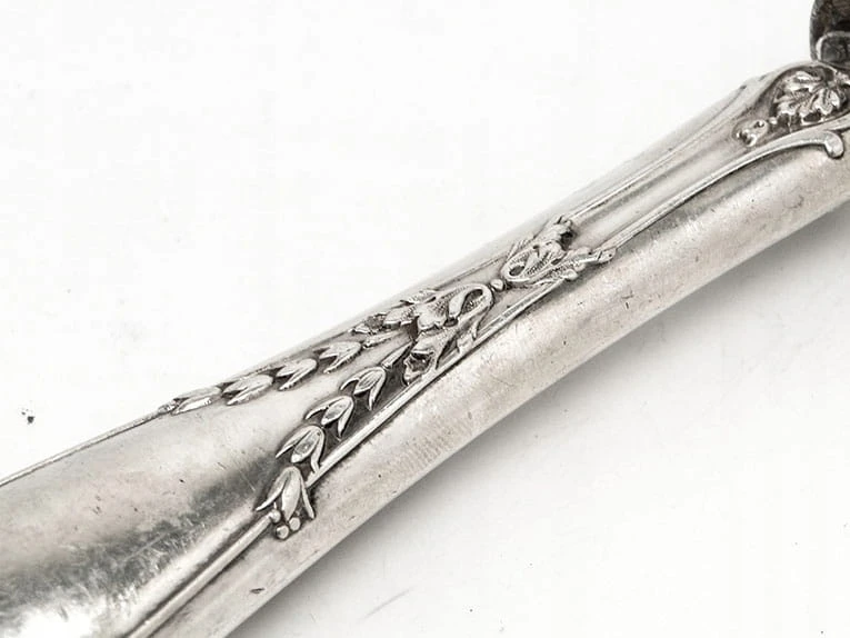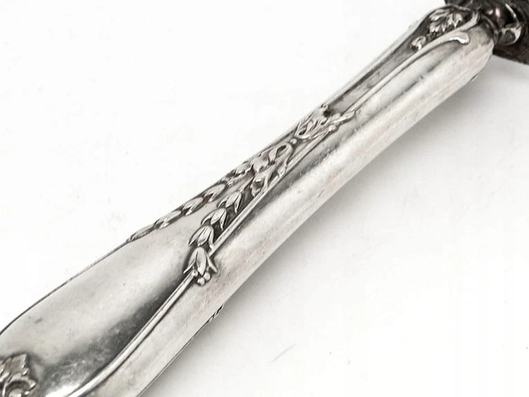 Przedmiotem aukcji jest niezwykle interesujący secesyjny chwytak do pieczeni .