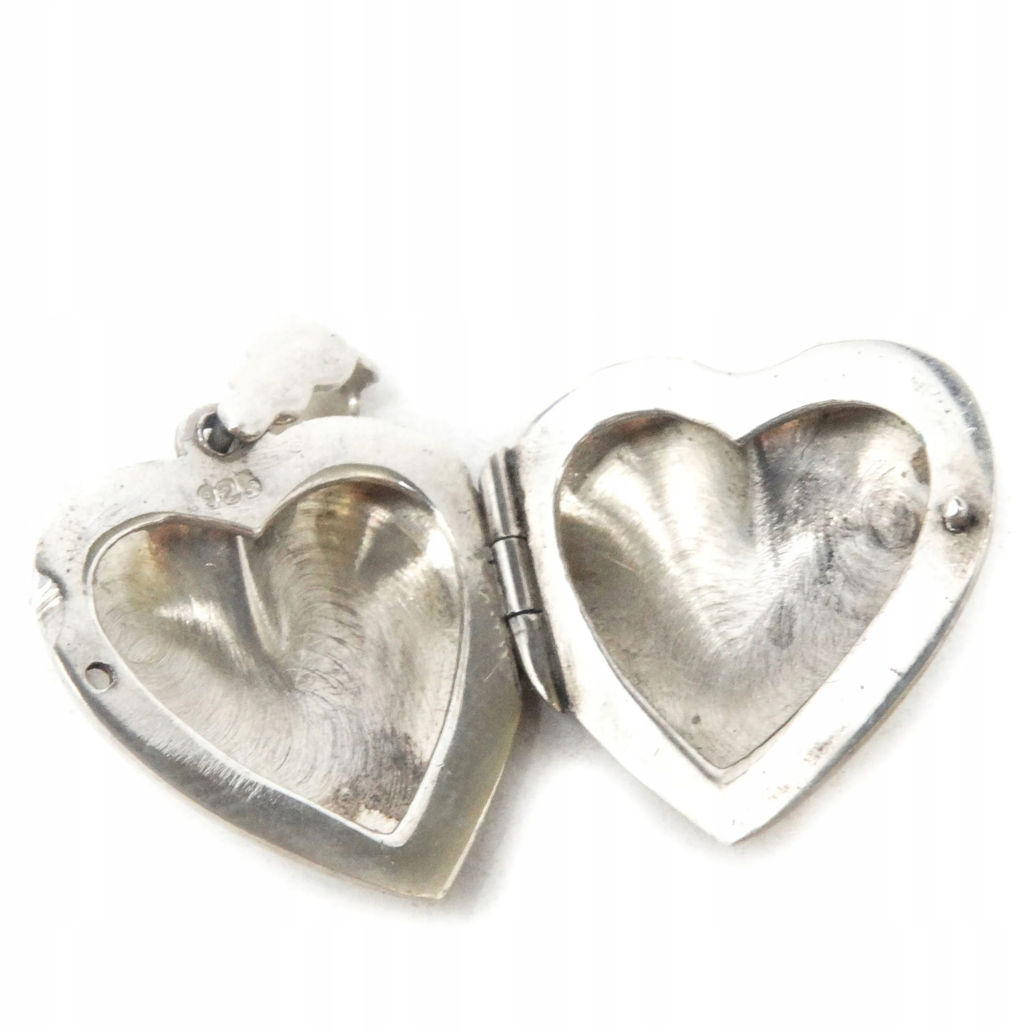 Ma kształt serca, w środku, zdobiony jest koralem.