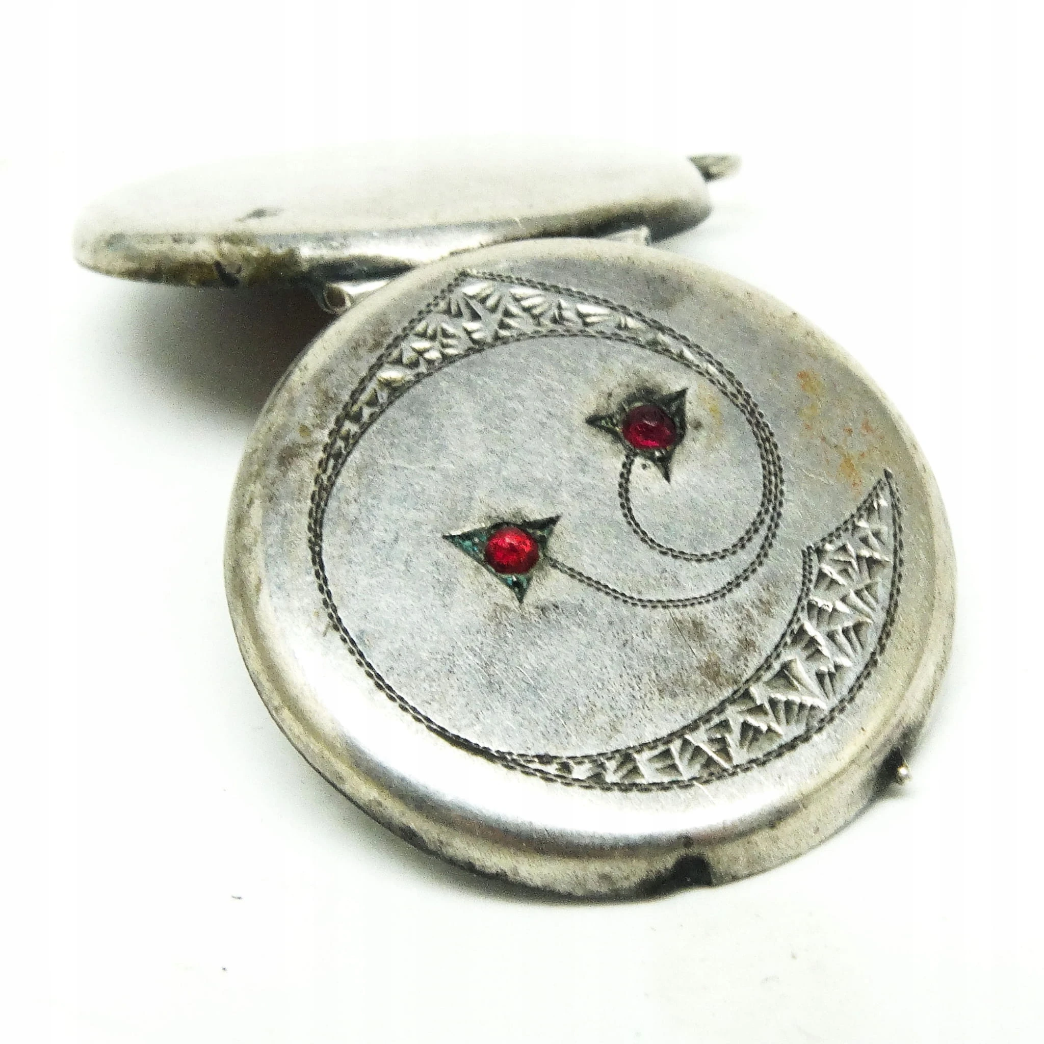 Wykonany jest w stylu secesyjnym. Zewnętrzną powierzchnię przedmiotu zdobią dwa rubiny. Przedmiot jest unikatowy i piękny.