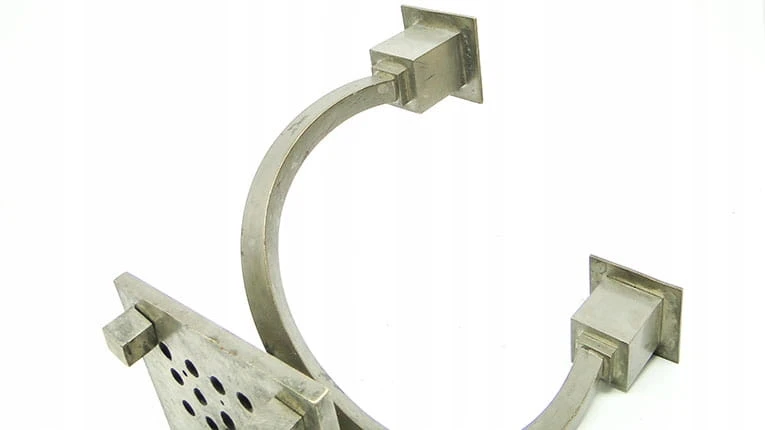 Świecznik dwuramienny wyprodukowany został w Niemczech w latach 30. Powierzchnia jest wykonana ze stali. Zachowany jest w bardzo dobrym stanie.