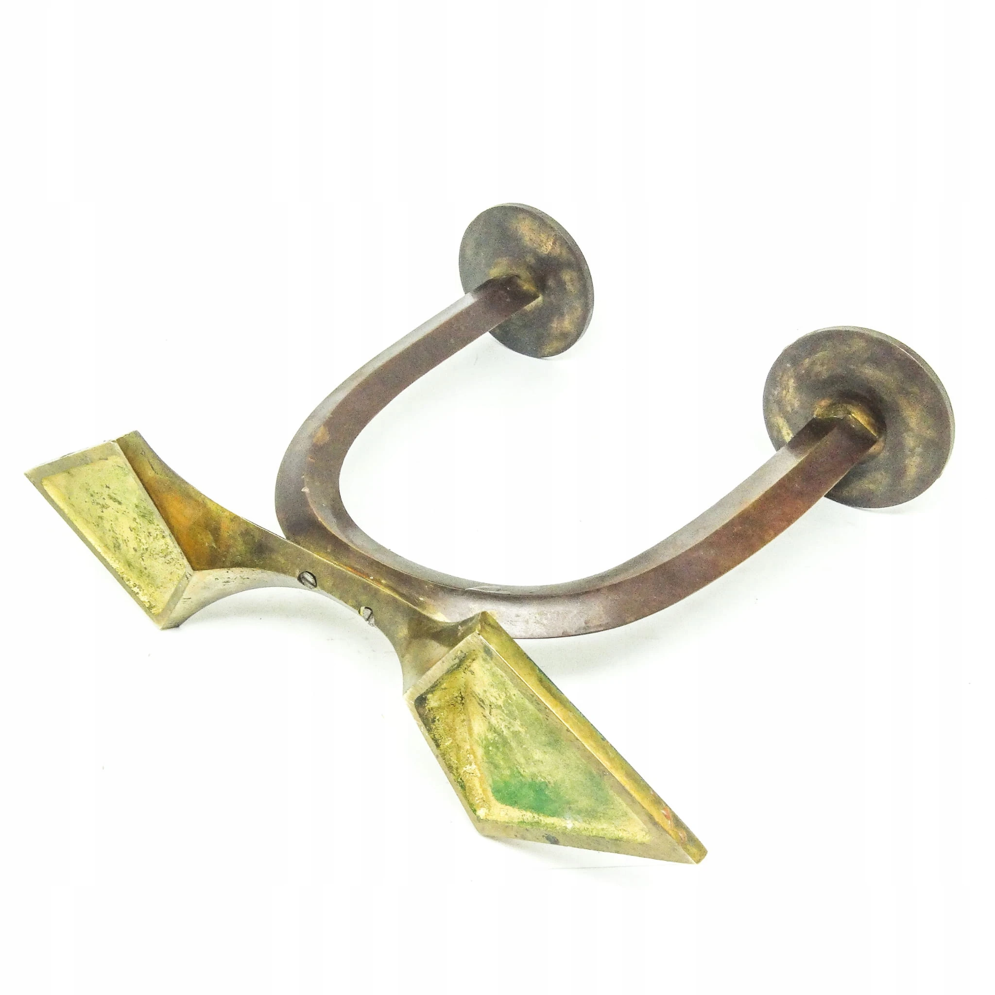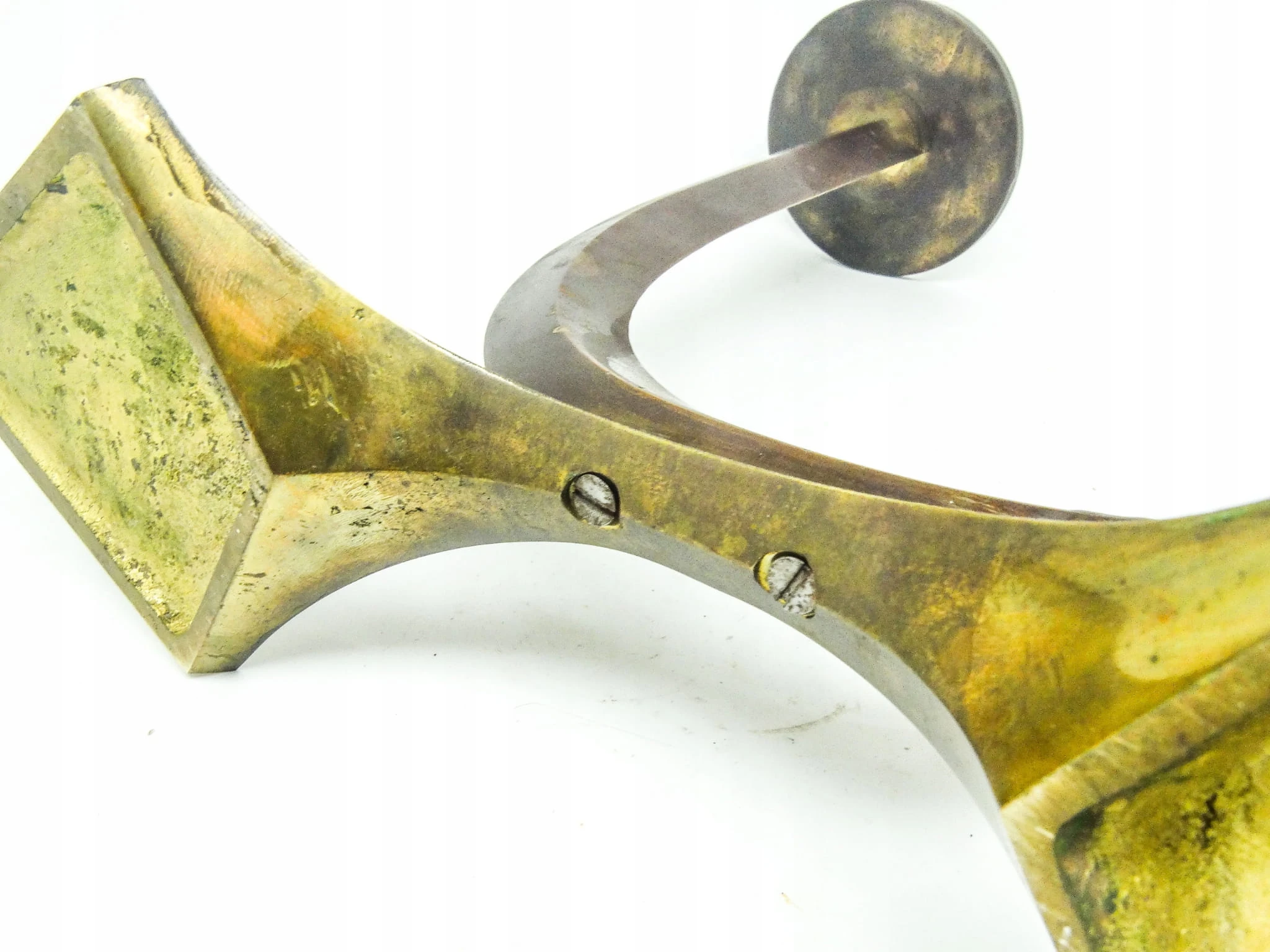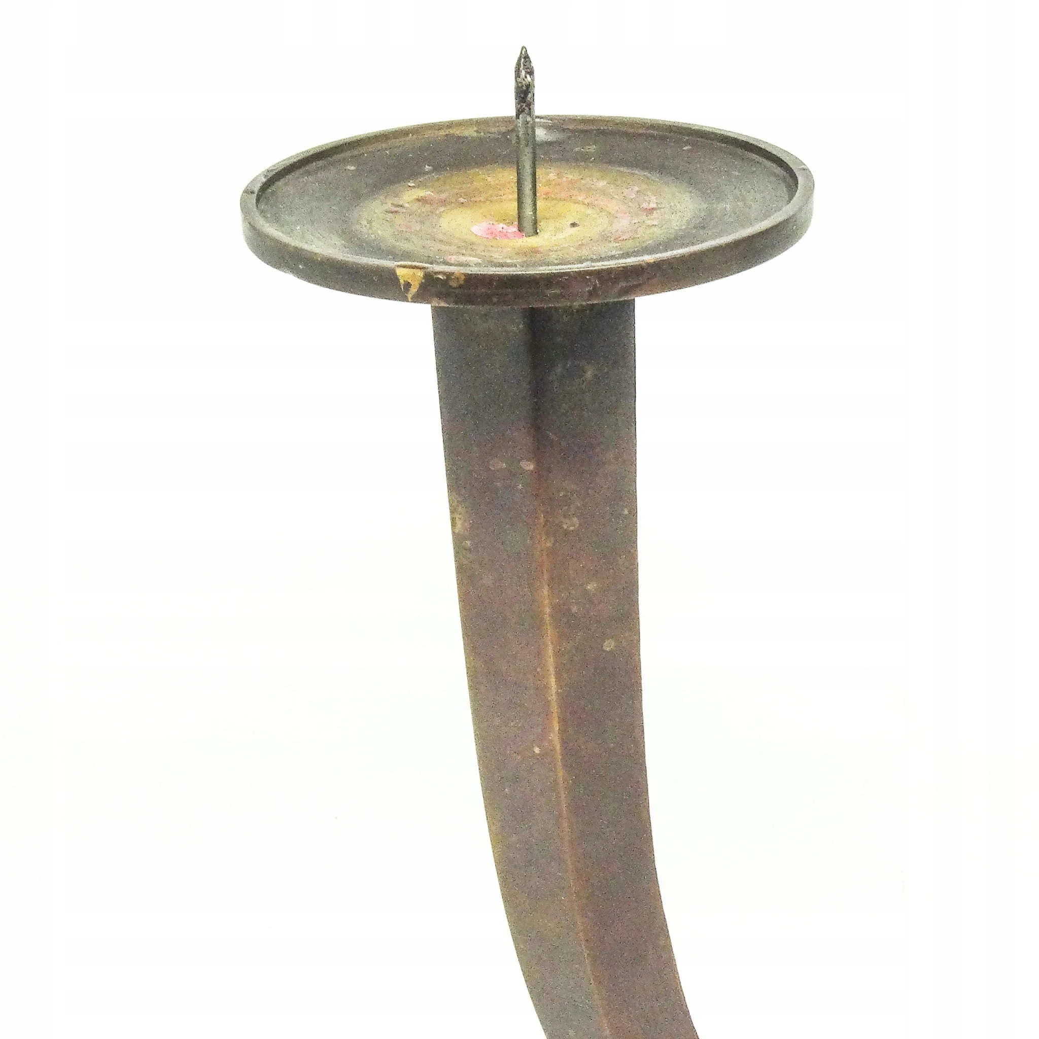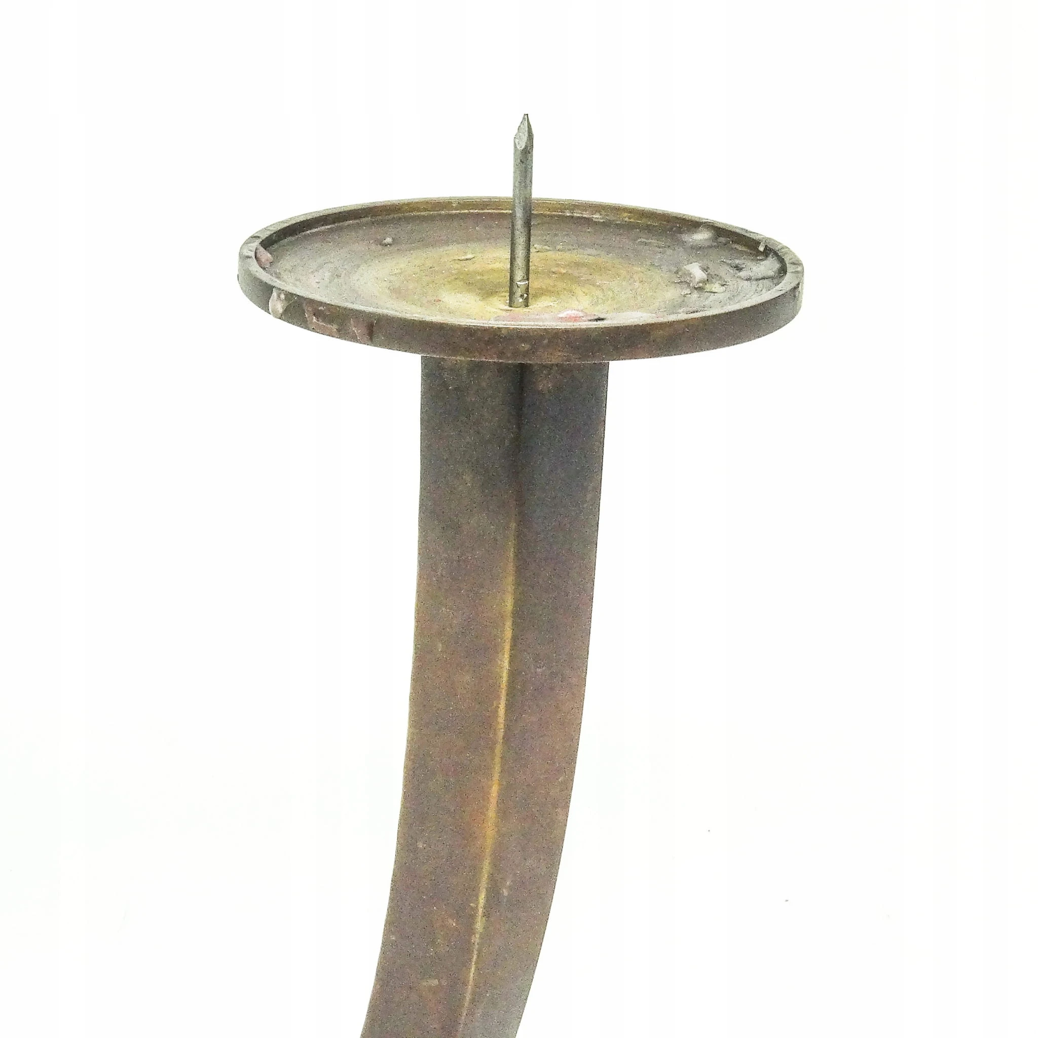 Wspiera się na szerokiej podstawie, ramiona wyprofilowane na kształt litery U, zakończone uchwytami na świecę.