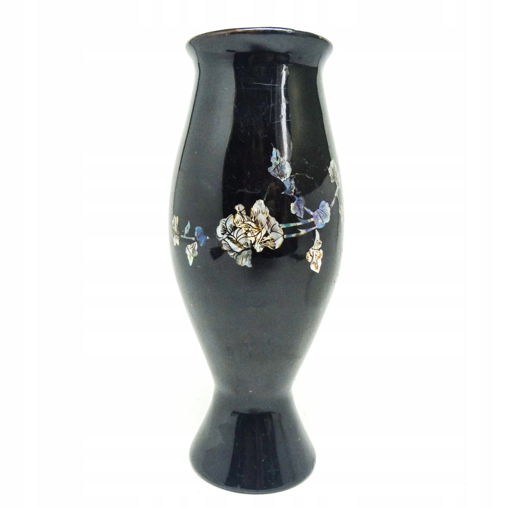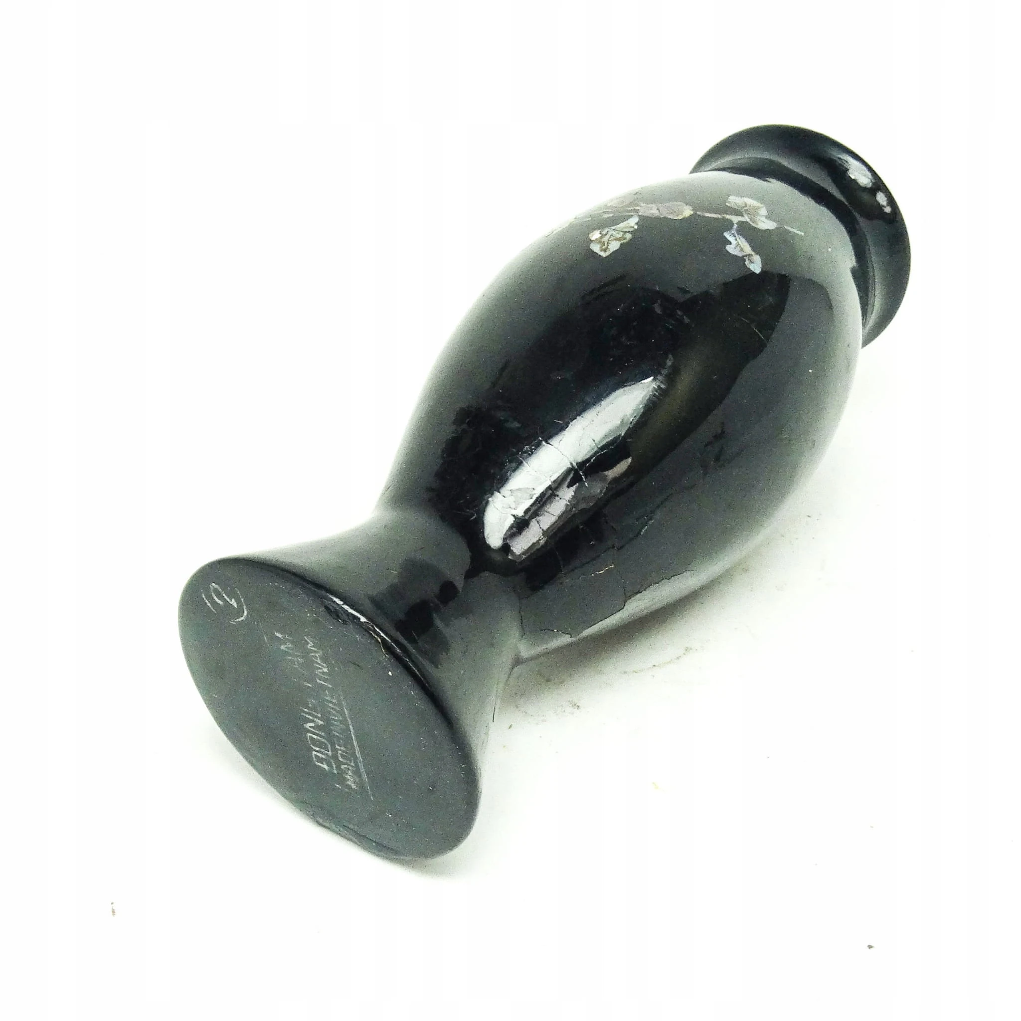 Wazon wyprodukowany został w Wietnamie w latach 60. Nosi ślady użytkowania pokazane na zdjęciu. Wykonany jest z laki.