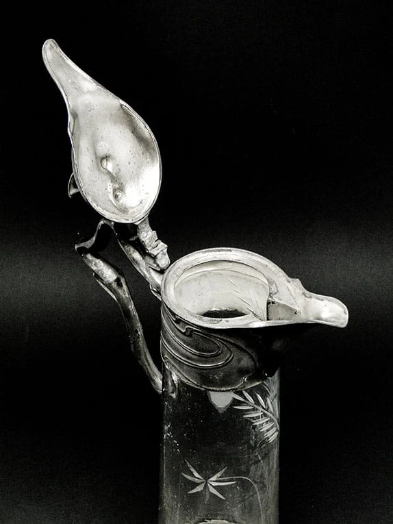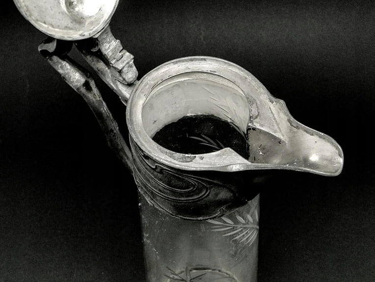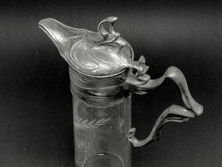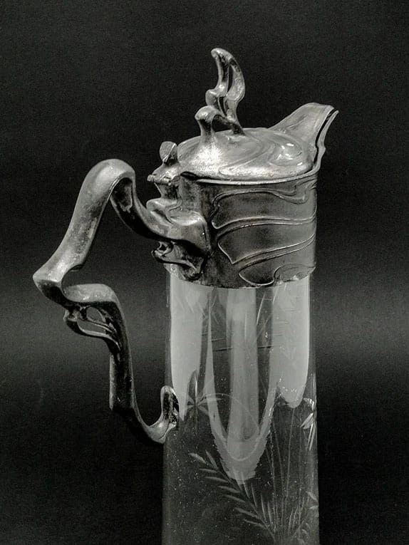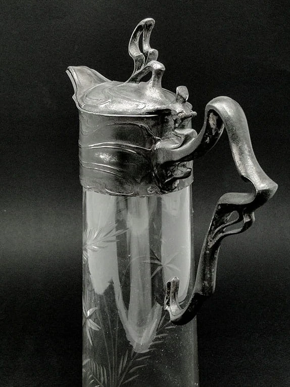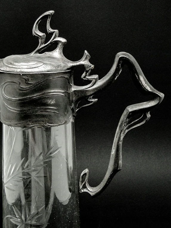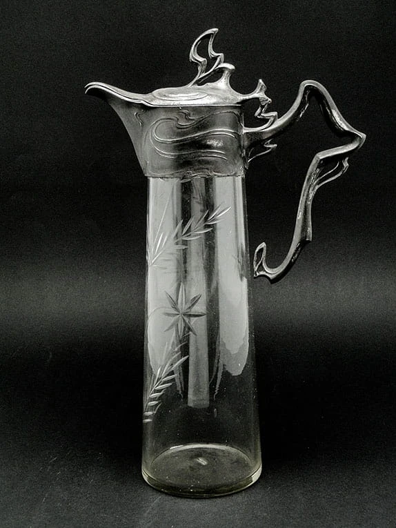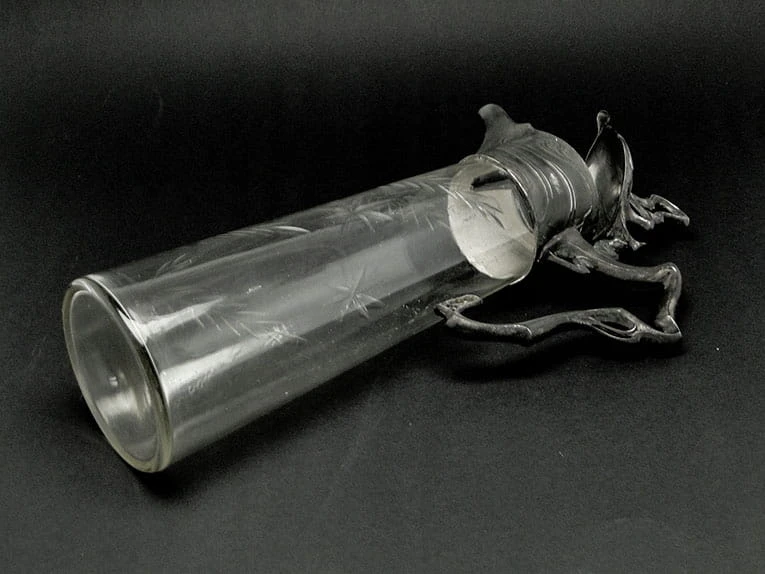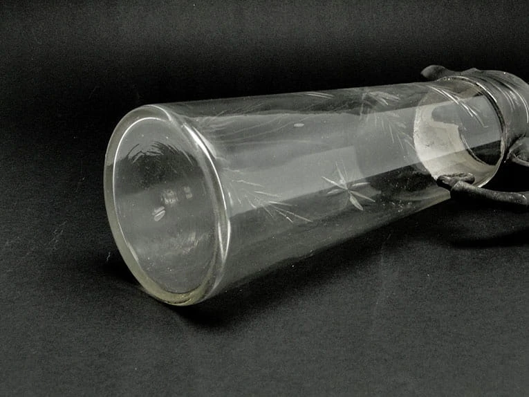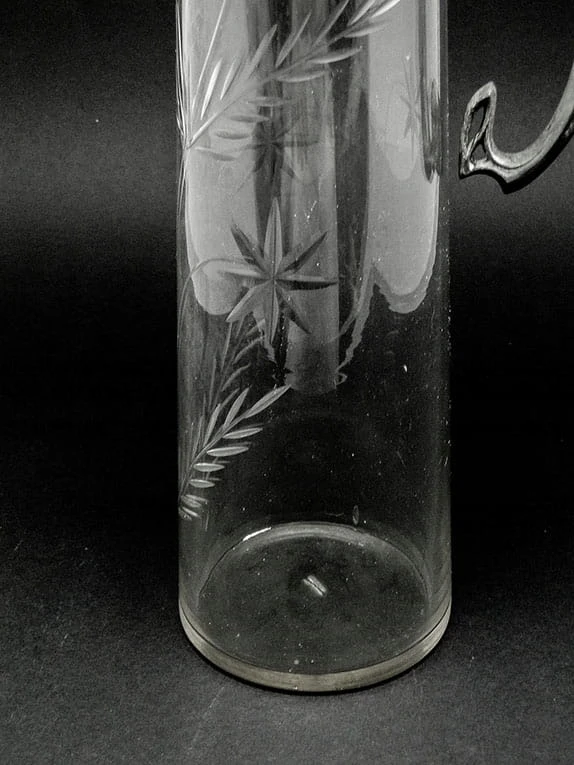 Brzusiec ze szkła na którym wyszlifowane i wygrawerowane są motywy florystyczne.